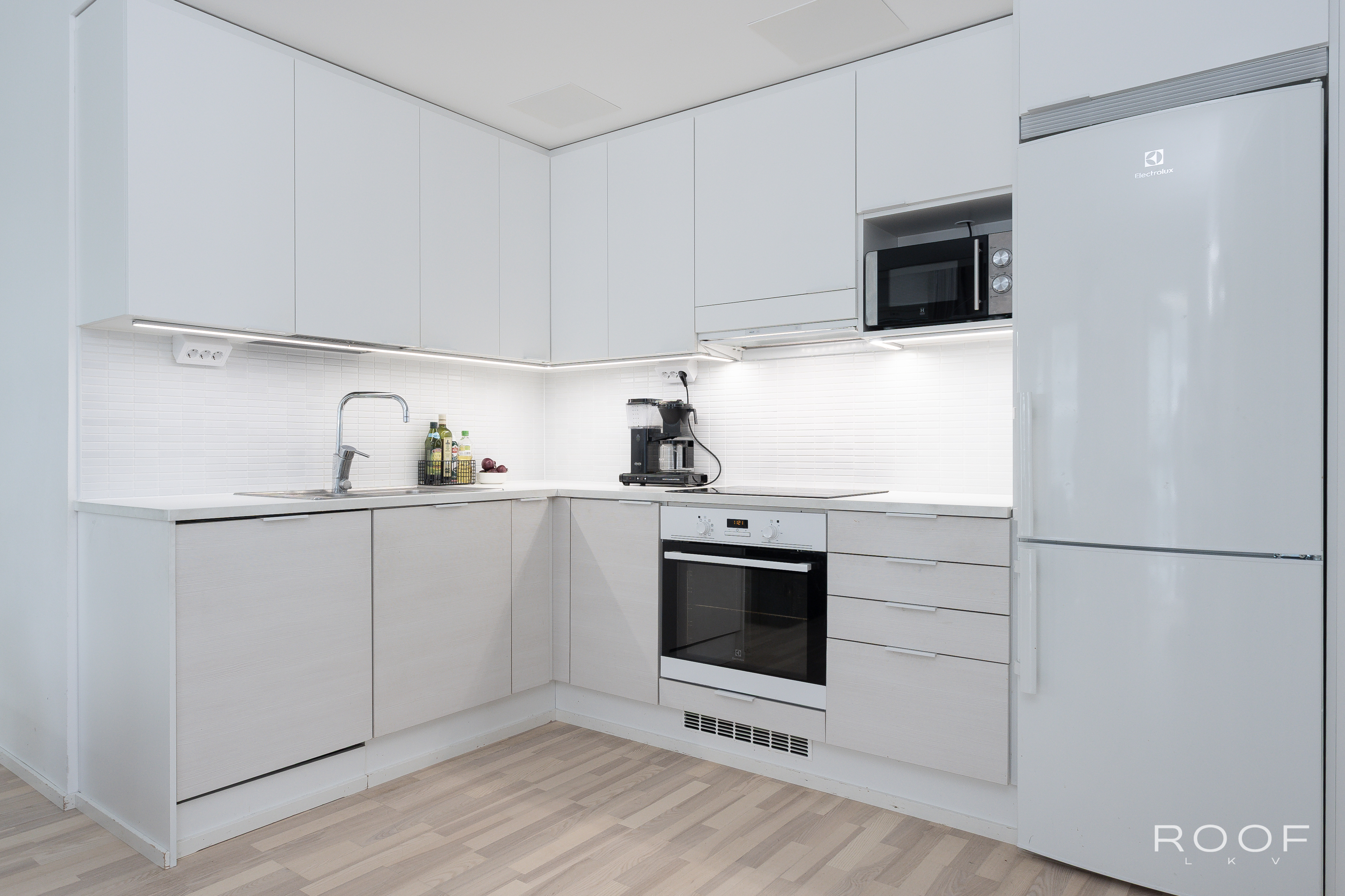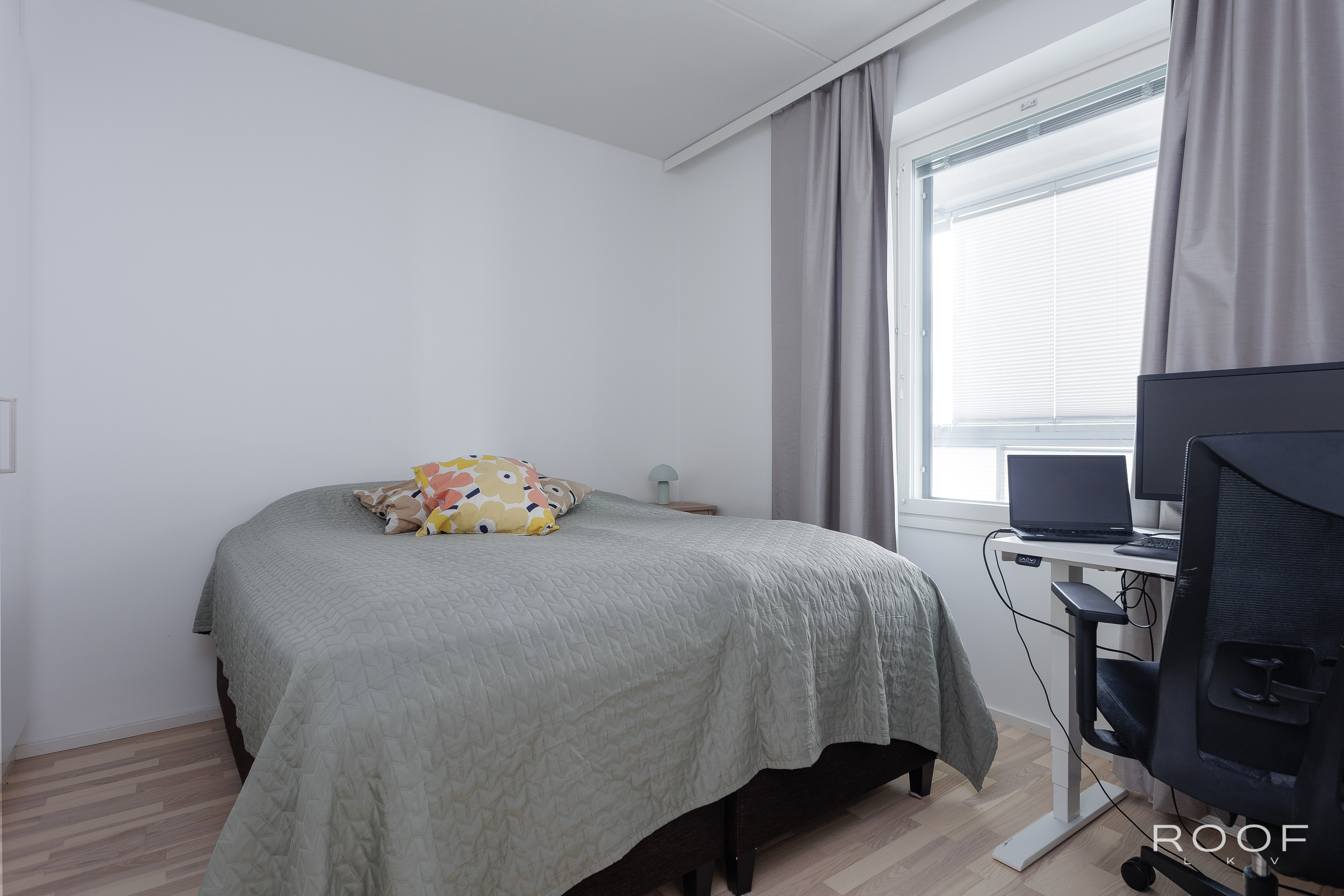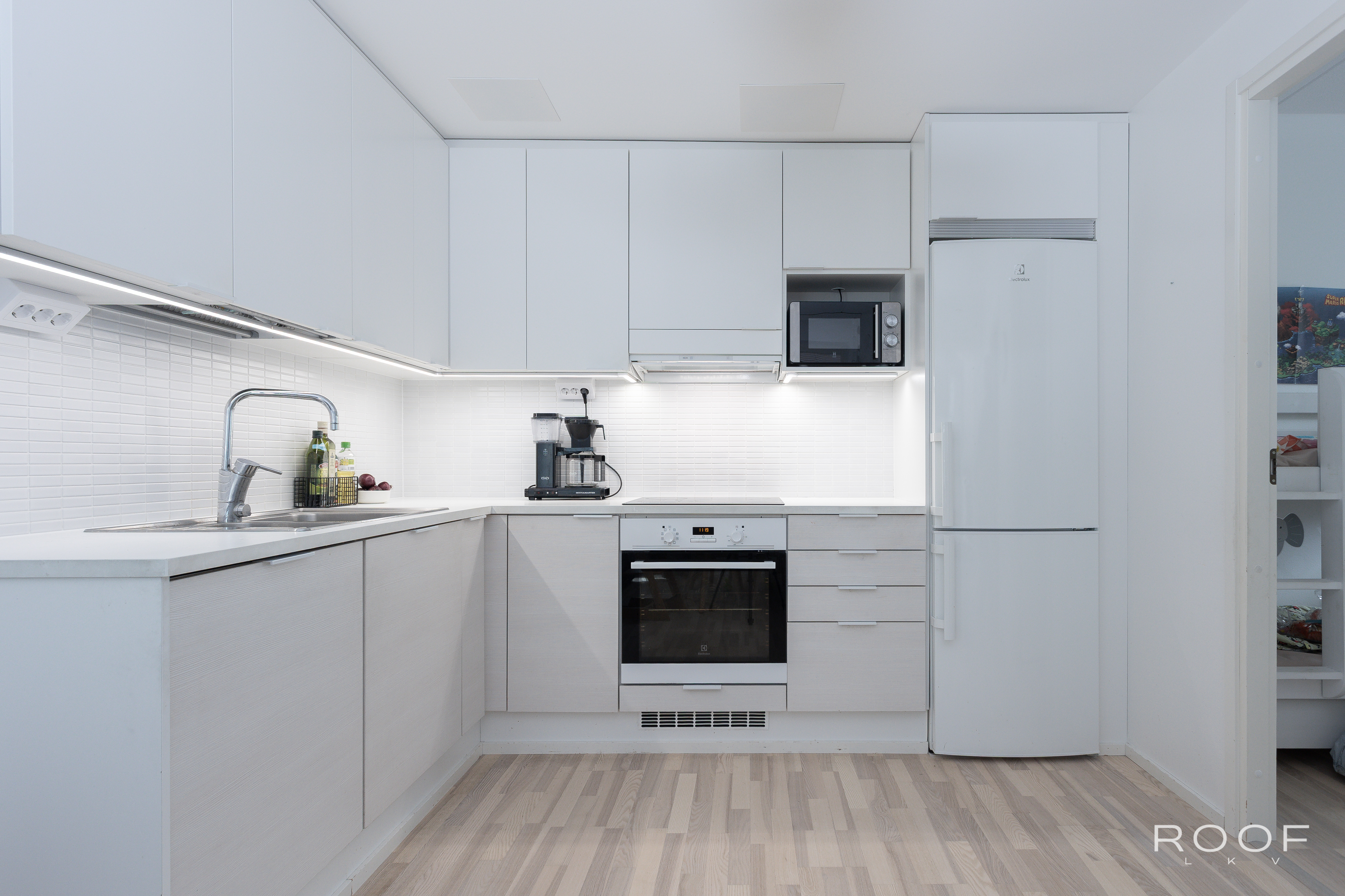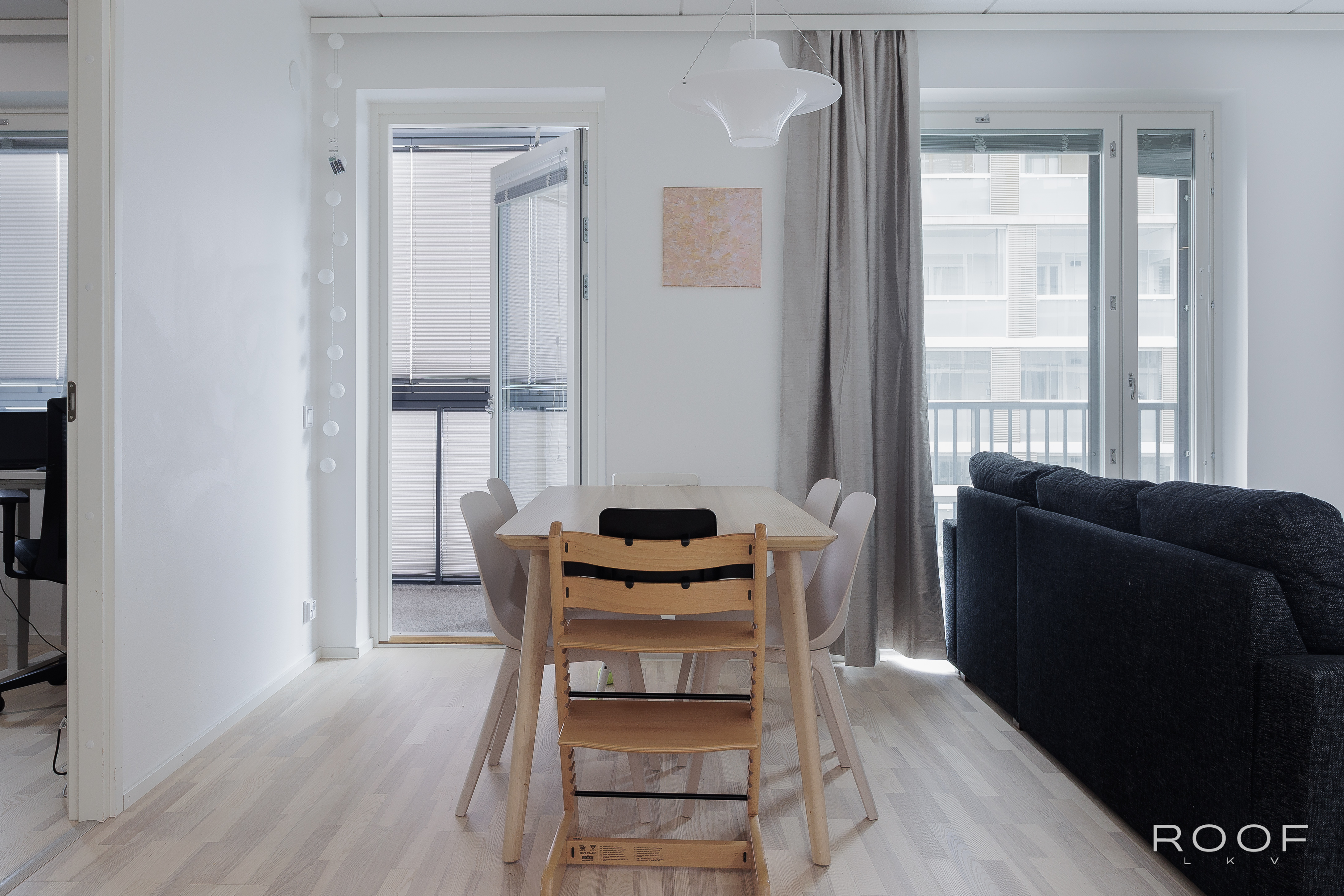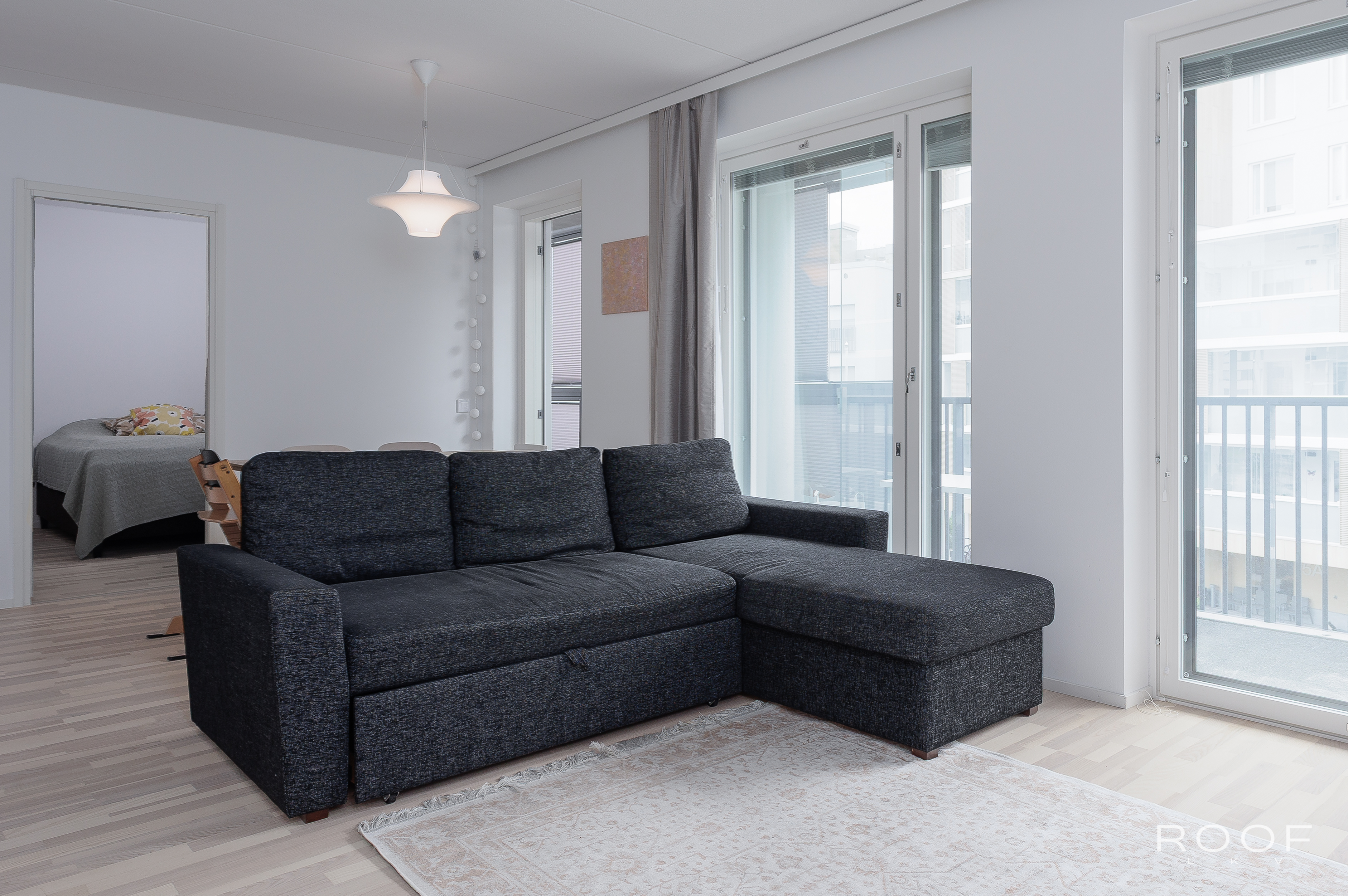 Kolmannen kerroksen kaunis ja valoisa koti odottaa uusia asukkaitaan. Kompakti kolmio tarjoaa hyvin suunnitellut neliöt sekä viihtyisät puitteet arkeen. Avara olohuone yhdistyy ruokailutilan kautta avokeittiöön. Asunnon suuret ikkunat tuovat runsaasti luonnonvaloa. Koko asunnossa on lattialämmitys, ja lämpötilaa voi säätää huonekohtaisesti.