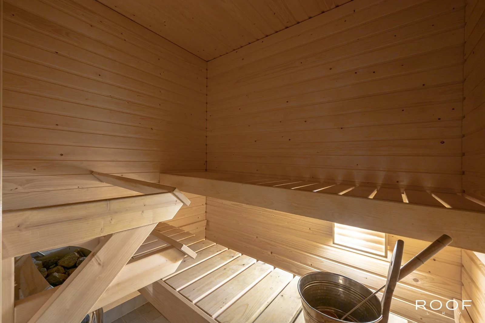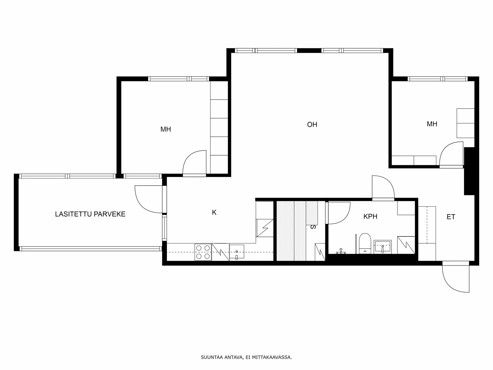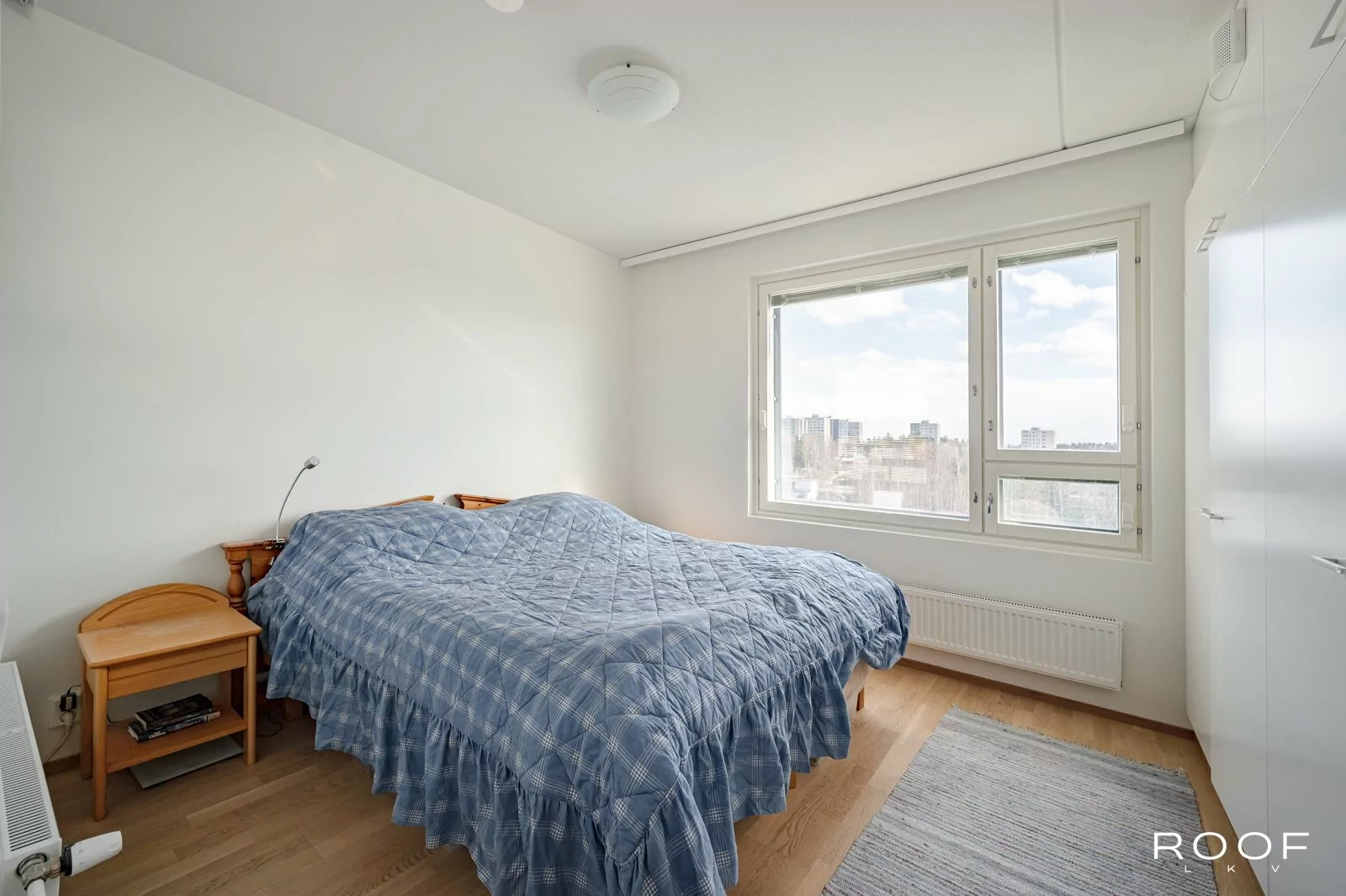 Ylimmmän kerroksen rauha ja avaruus tuntuvat heti kotiin astuessa. Lasitettu parveke avautuu sisäpihan puolelle ja suuret lasipinnat päästävät valon virtaamaan. Pohjaratkaisu on suunniteltu palvelemaan monenlaisia elämäntilanteita. Kaksi makuuhuonetta sijoittuvat omiin rauhallisii...