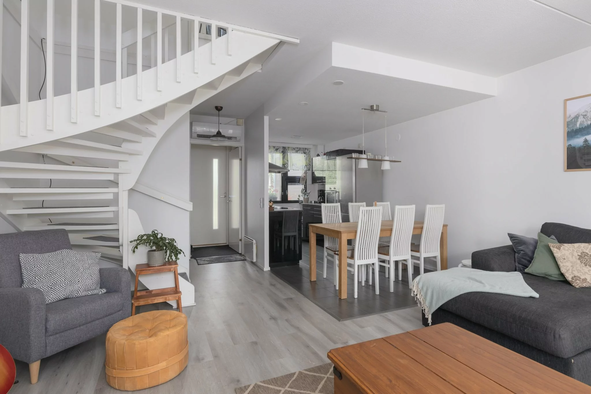 Tämä kahteen kerrokseen rakentuva koti yhdistää selkeän pohjaratkaisun ja viihtyisät oleskelutilat.