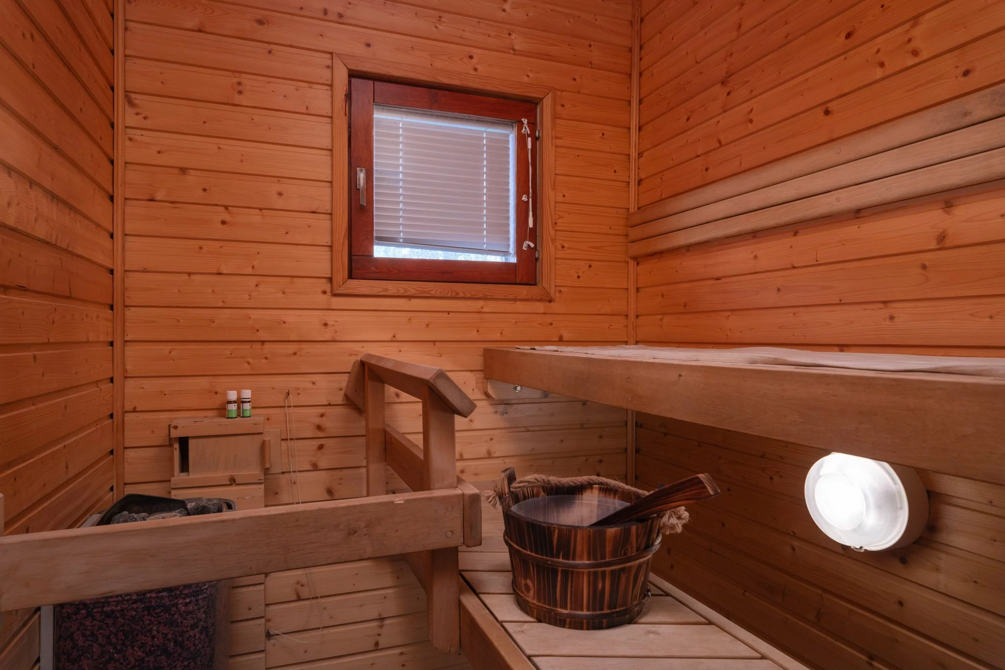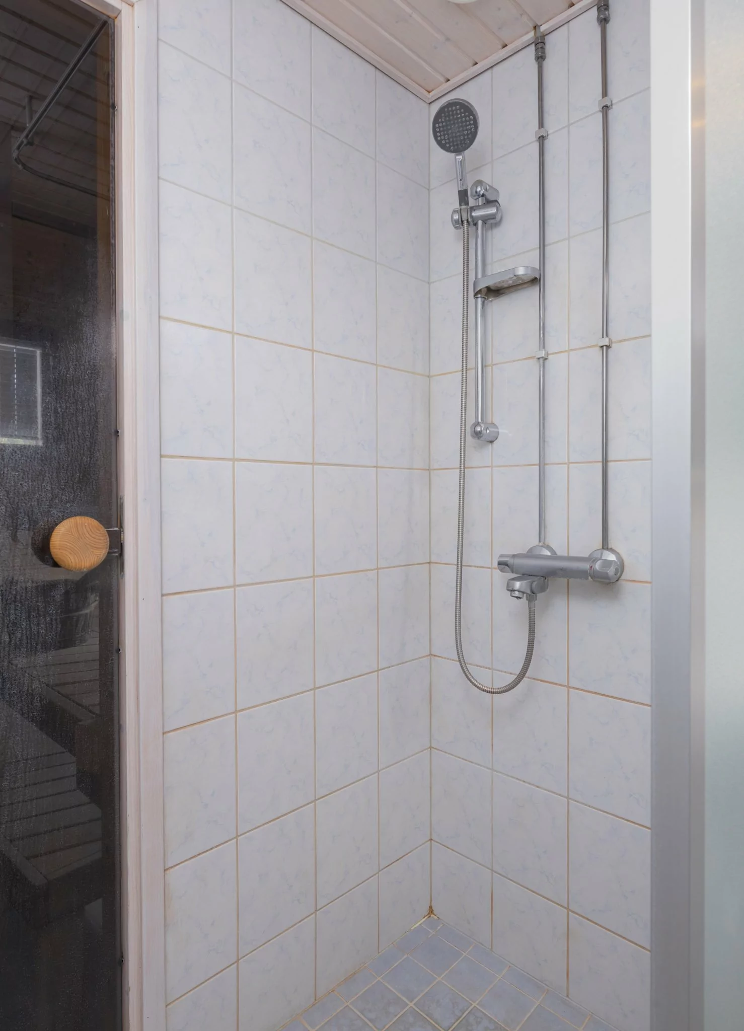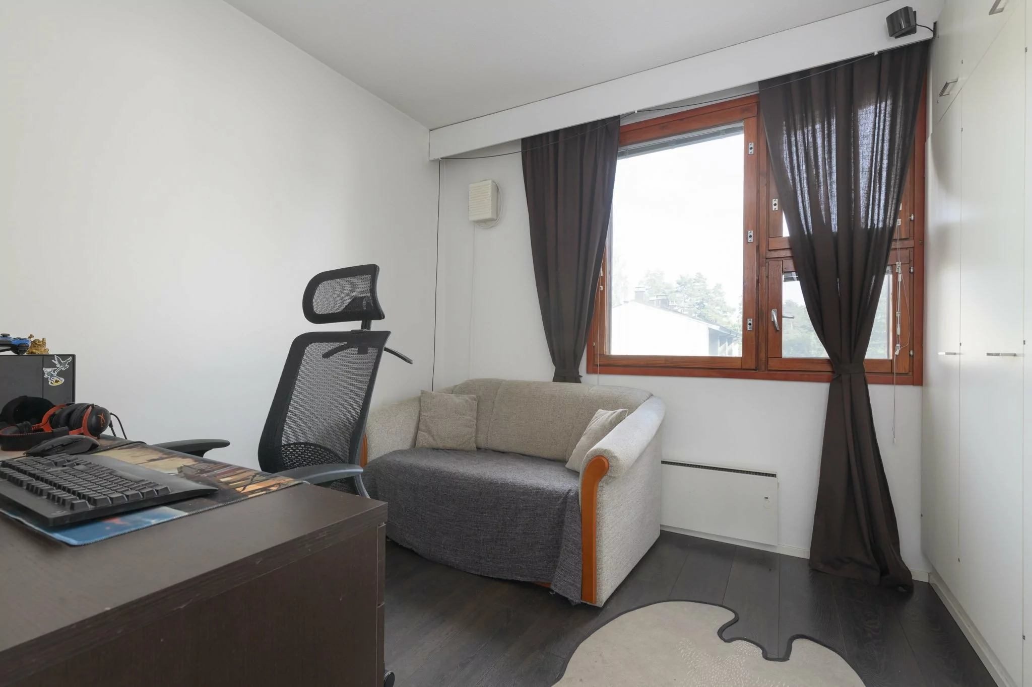 Yläkerrassa on kaksi makuuhuonetta, joista toisen yhteydessä on parveke. Tilava kylpyhuone ja sauna on uusittu vuonna 2003, ja käytännöllisyyttä lisää erillinen vaatehuone.