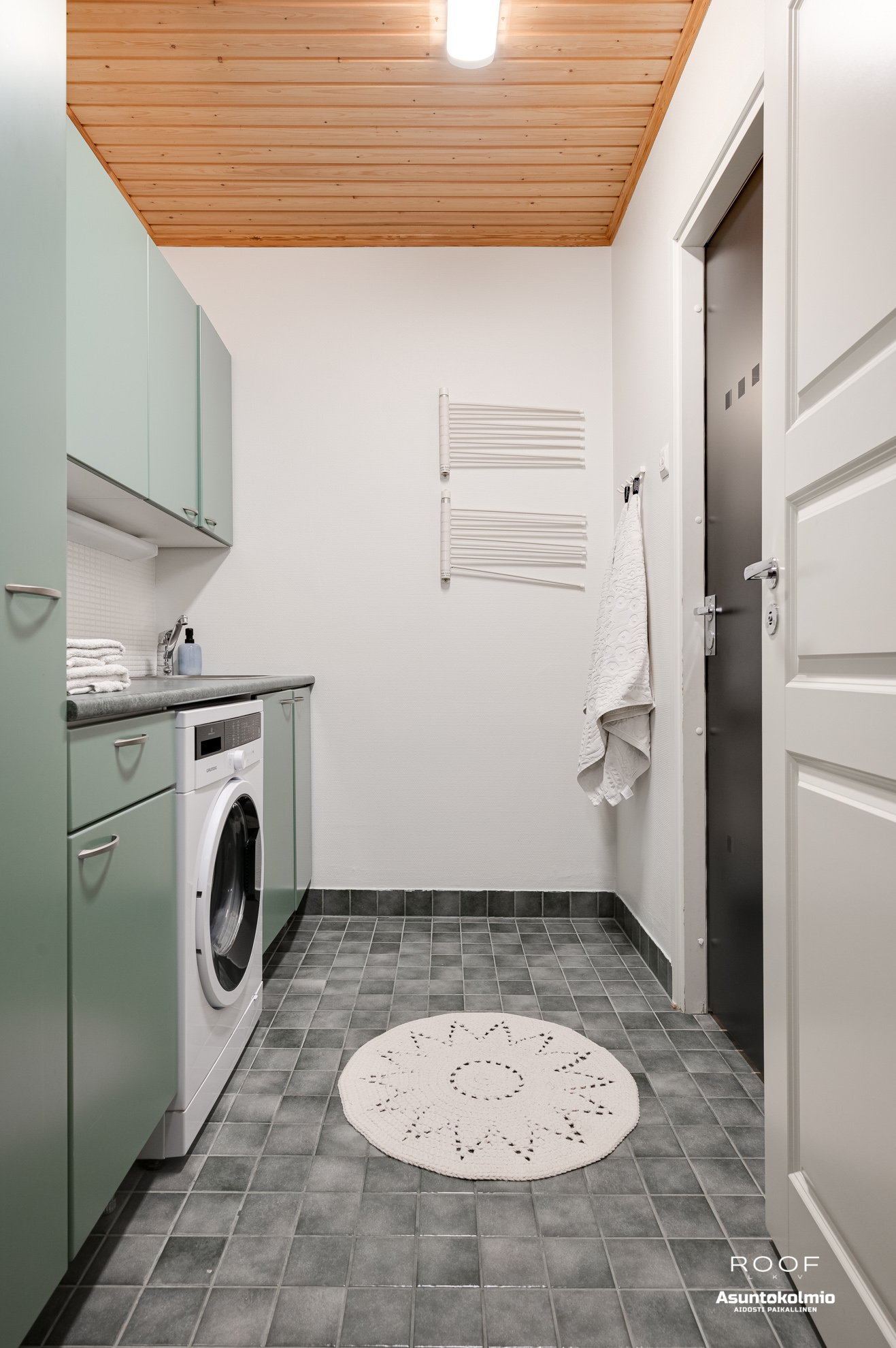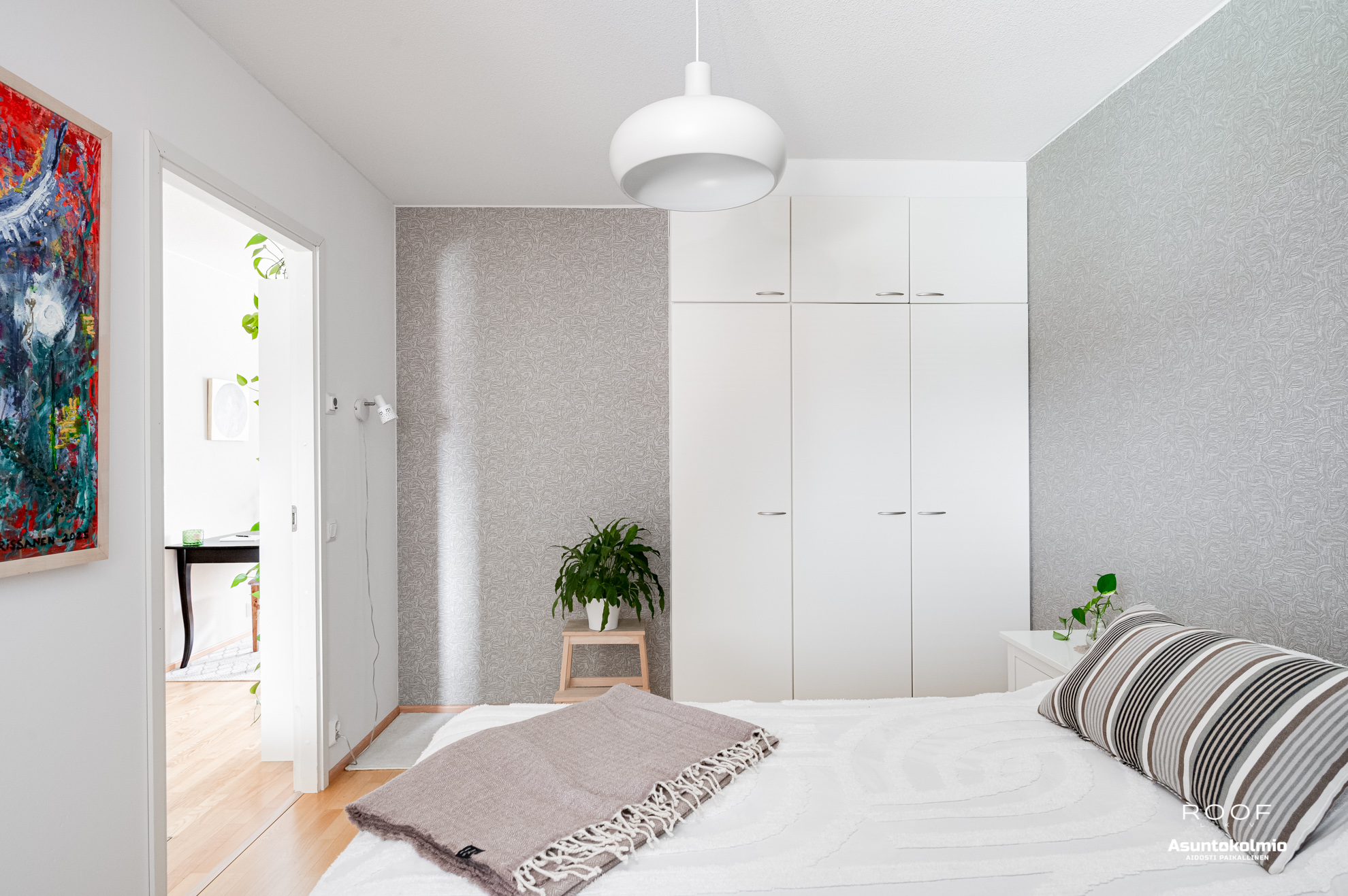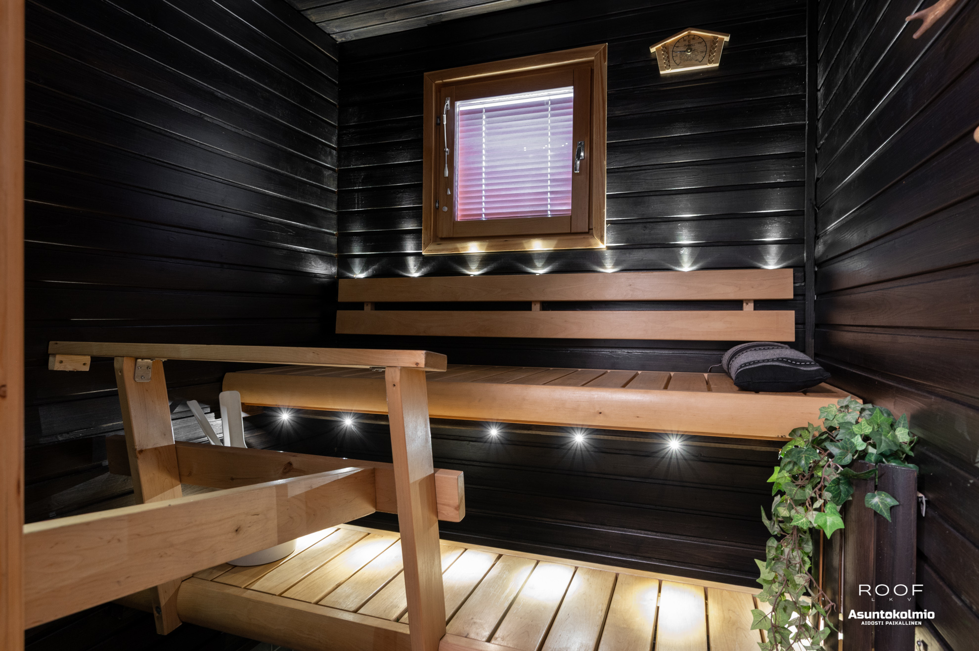 Asunnossa on kookkaat huoneet, säilytystilaa löytyy runsaasti kahden vaatehuoneen sekä huoneiston yhteydessä sijaitsevan ulkovaraston ansiosta. Arkea helpottaa erillinen kodinhoitotila, joka toimii myös saunaosastolle mennessä pukeutumistilana.