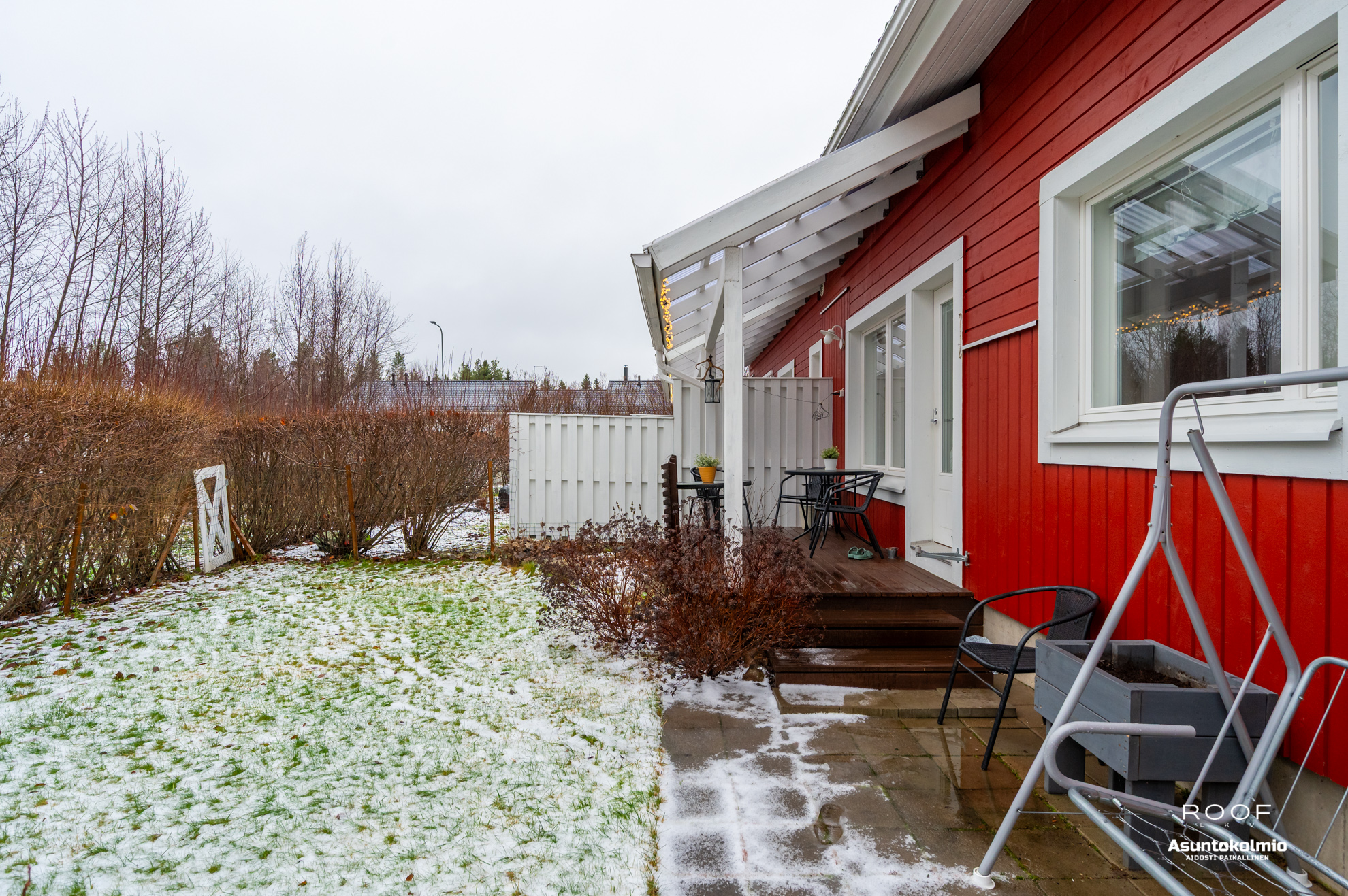 Sijainti on ihanteellinen – rauhallinen, mutta silti palvelujen läheisyydessä. Länsituulen koulu ja päiväkoti ovat noin kilometrin päässä, ja Haukiputaan keskustan kattavat palvelut löytyvät kaikki noin 1,6 kilometrin etäisyydeltä, sieltä kulkee myös linja-autoliikenne Oulun keskustaan puolen tunnin välein. Omalla autolla kaupungin keskustaan ajat vain vajaassa puolessa tunnissa.