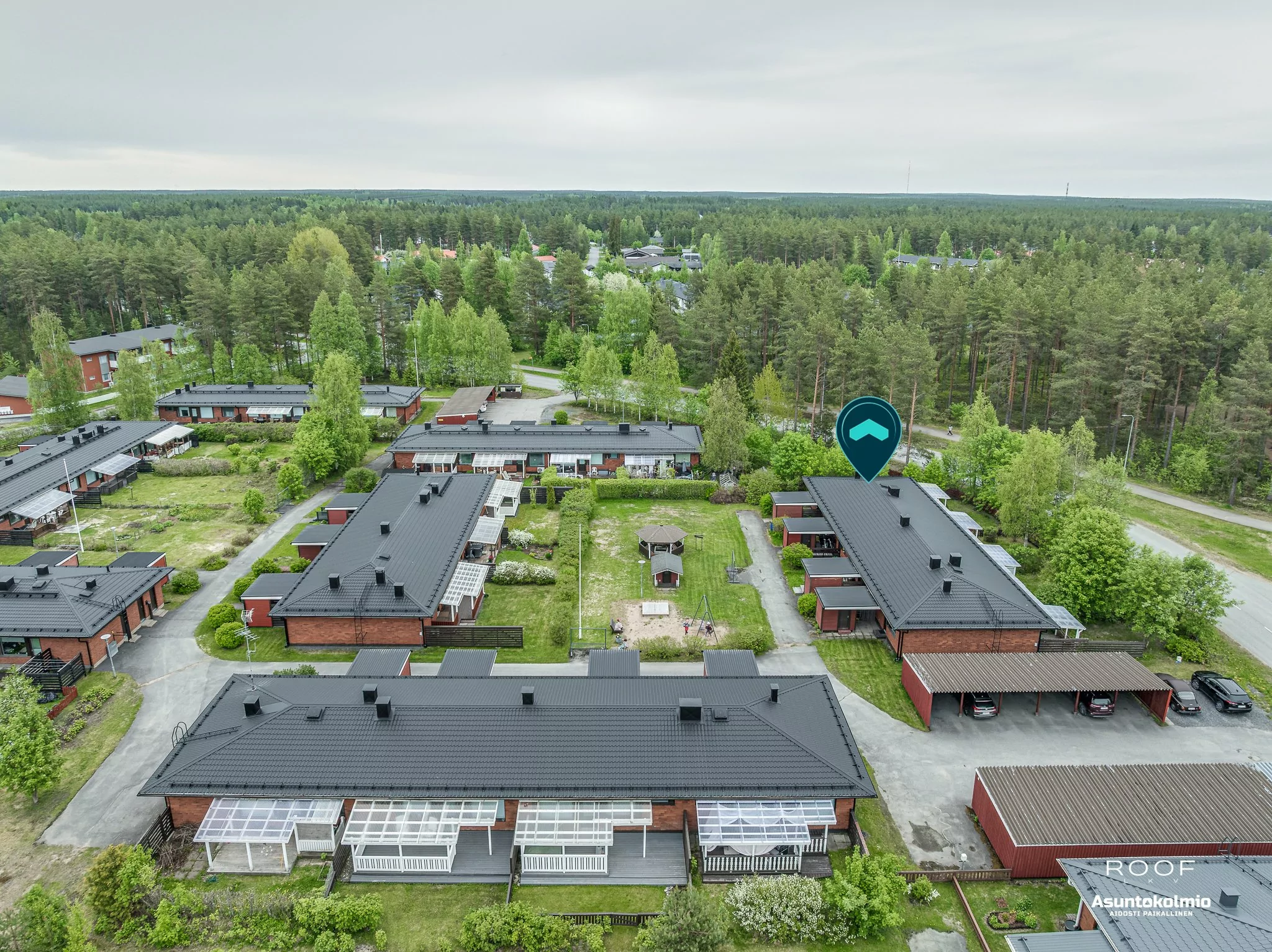 Jäälinjärven läheisyydestä rivitalo kolmio. Taloyhtiöllä on OMA TONTTI ja lämmitysmuotona on KAUKOLÄMPÖ.