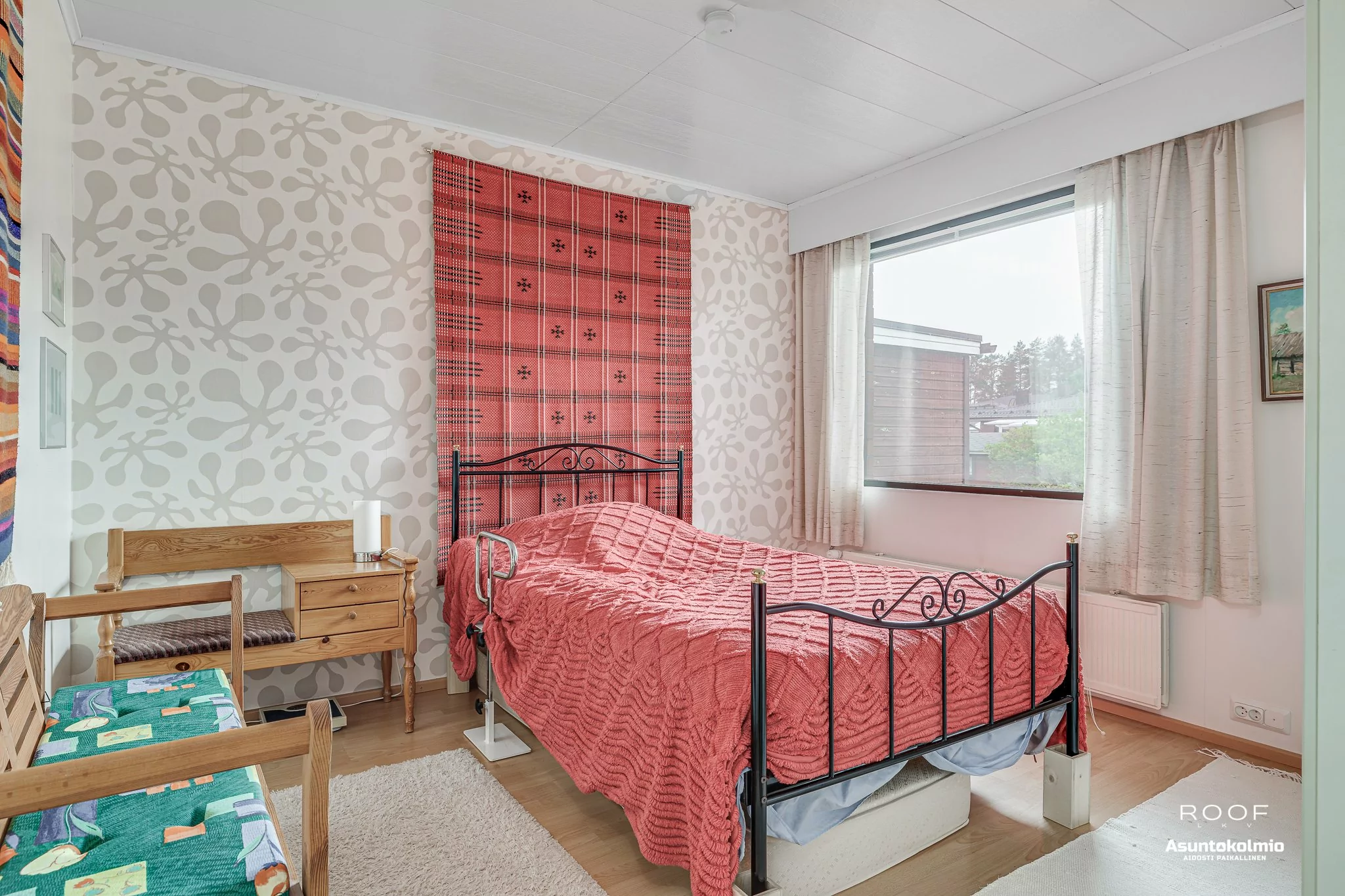 Asunnossa on kaksi tilavaa makuuhuonetta ja toisen makuuhuoneen yhteyteen sijoittuu vaatehuone. Makuuhuoneeseen sijoitat tarvittaessa myös työpisteen. Hyvät nettiyhteydet takaavat etätyömahdollisuuden. Olohuoneesta on kulku tilavalle etelänsuuntaiselle katetulle terassille ja omalle piha-alueelle. Keittiössä on hyvin kaappi- ja laskutilaa ja sinne sijoitat hyvin ruokapöydän. Kylpyhuone, sauna ja kodinhoitotila on remontoitu 2000-luvulla eivät siis ole ihan alkuperäisessä kunn...