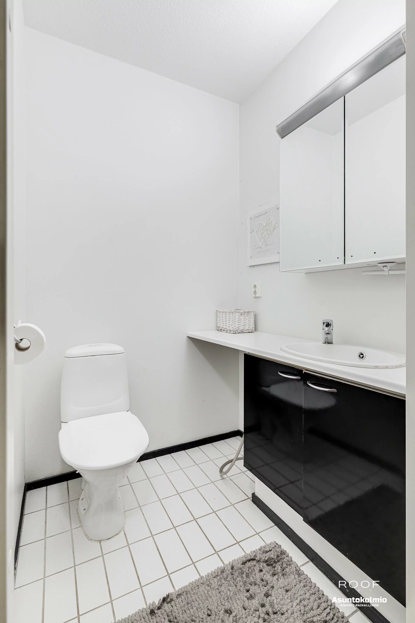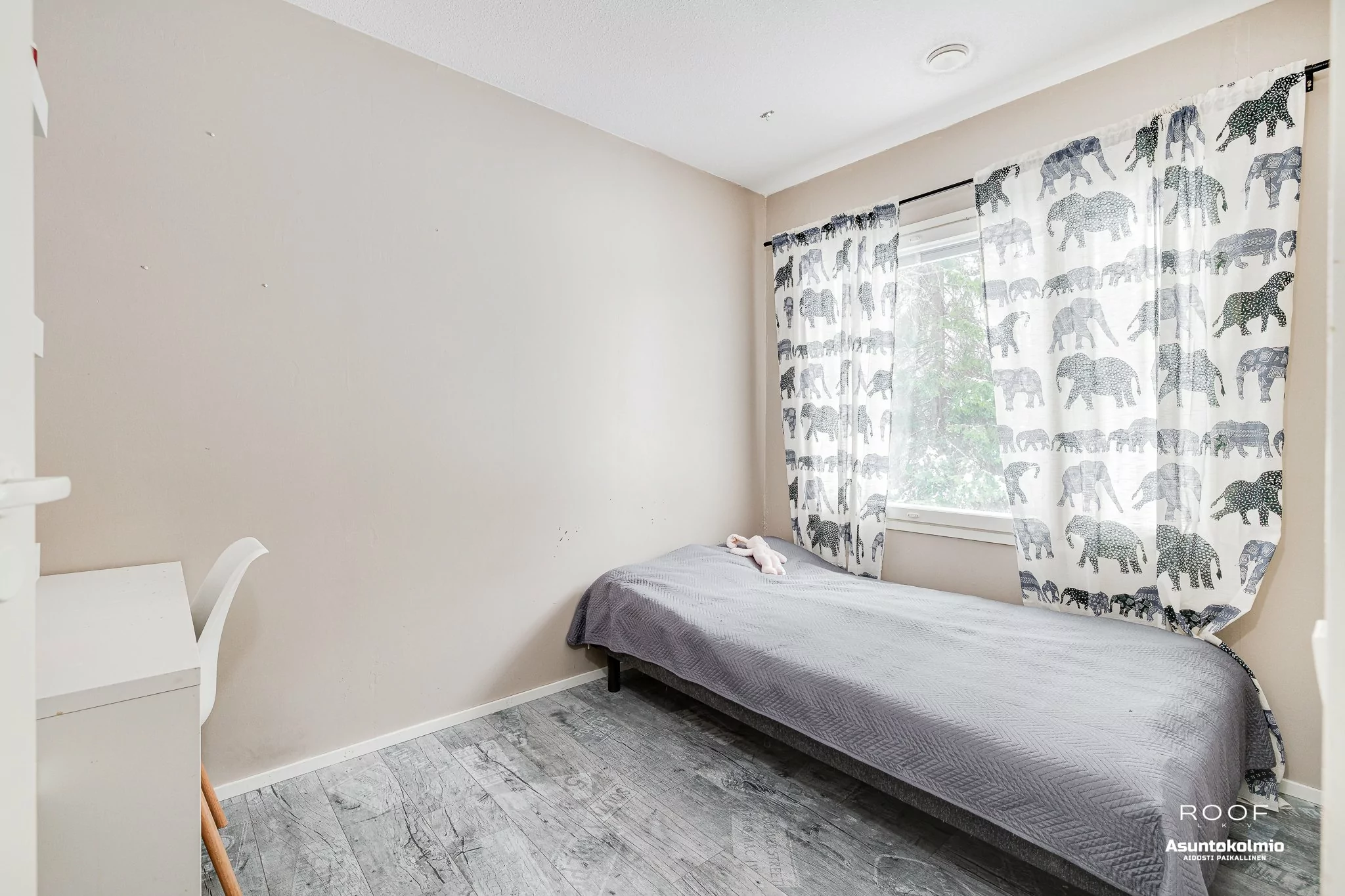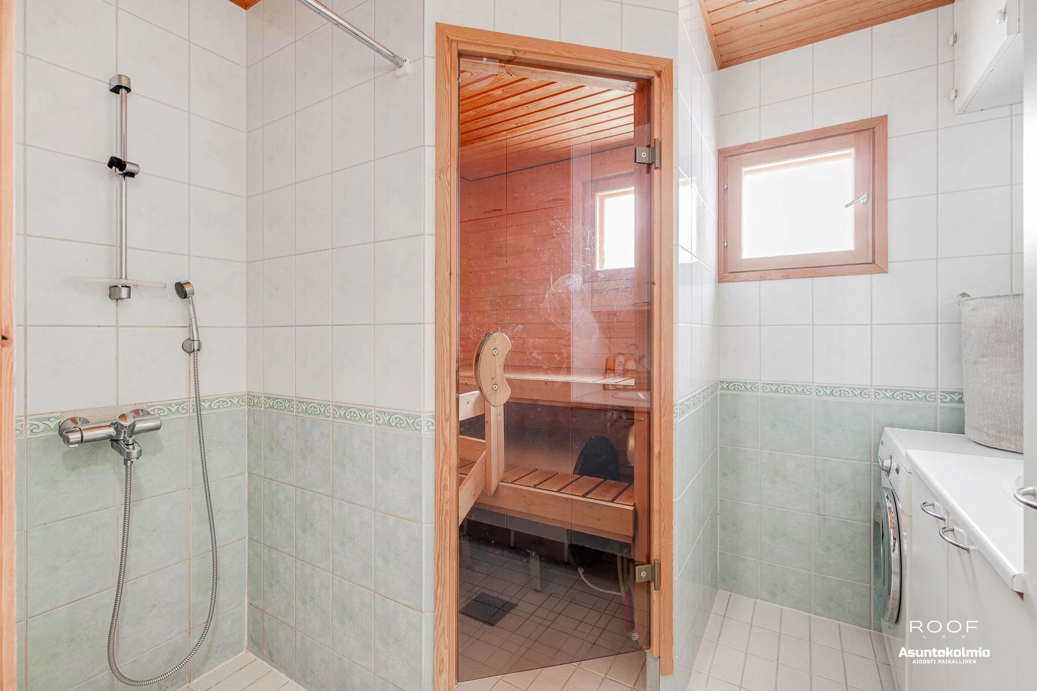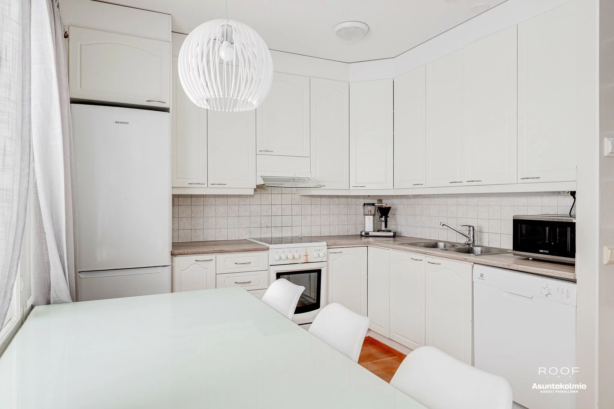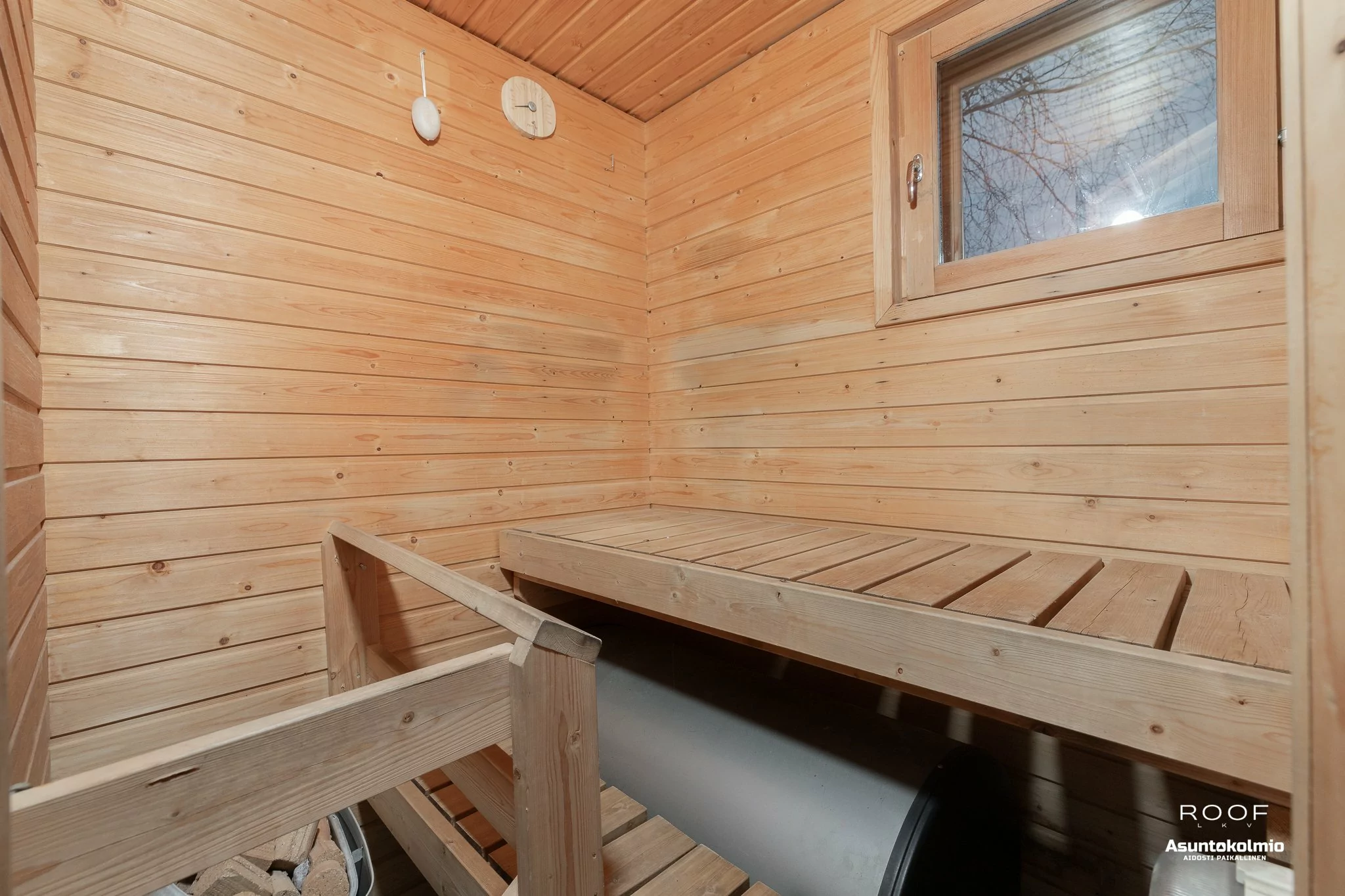 Olohuone on tilava ja valoisa. Olohuoneen yhteyteen sijoittuu keittiö, jossa hyvin kaappi- ja laskutilaa. Olohuoneesta on kulku omalle hyvän kokoiselle takapihalle. Takapihalle on mahdollista tehdä isompikin terassi. Makuuhuoneita on kaksi ja toisen huoneen yhteyteen sijoituu vaatehuone. Kylpyhuoneen yhteydessä on kodinhoitotila, jossa on kaapistot ja pöytätaso, tilaan on myös pyykkitornille. Sisäänkäynnin yhteydessä on huoneistolle kuuluva kylmä ulkovarasto. Autolle on autokatosp...