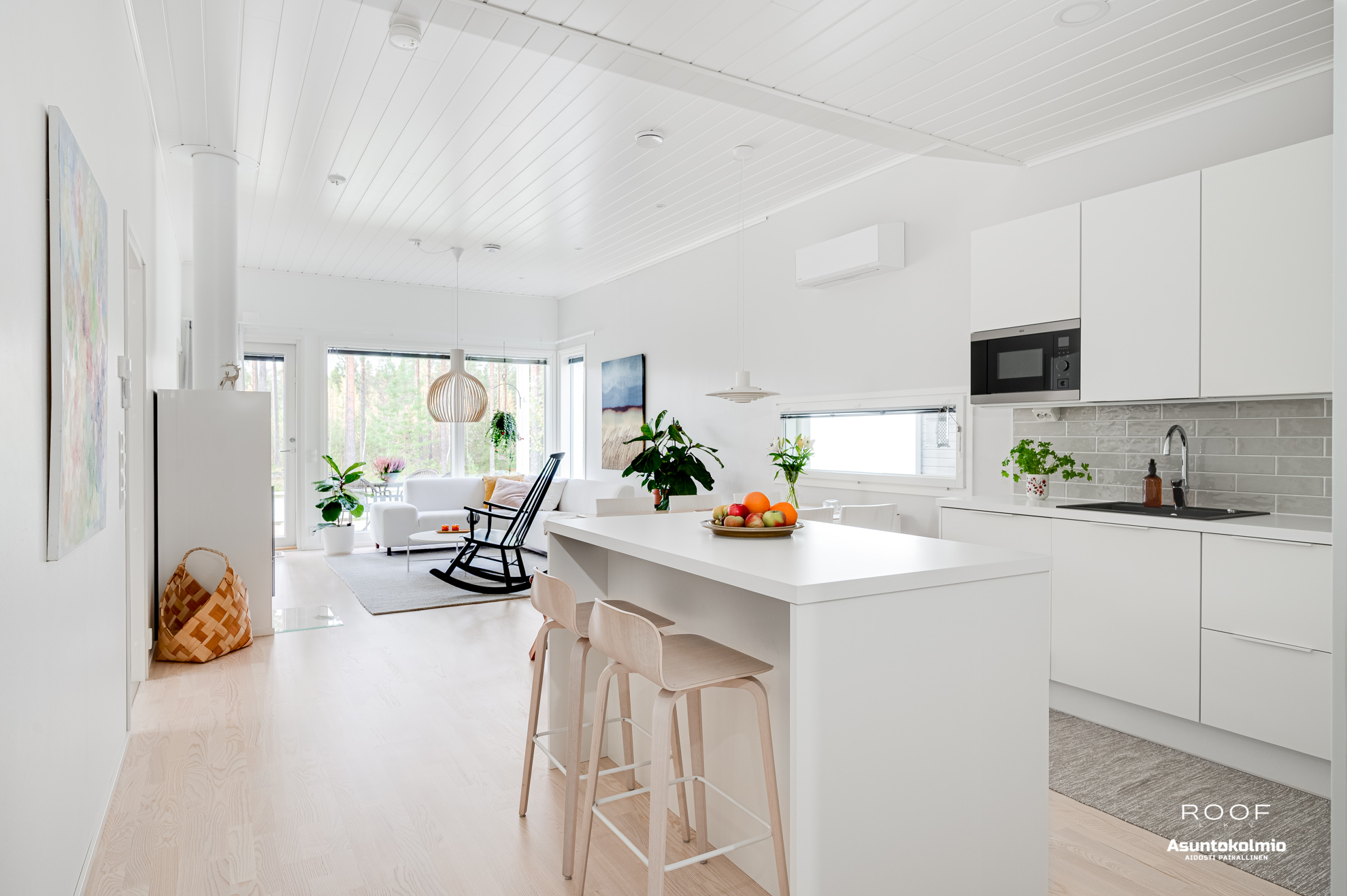 Talon suurelle lounaaseen suuntautuvalle terassille paistaa aurinko pitkälle iltaan, mikä tekee siitä täydellisen paikan nauttia kesäpäivistä. Kesähelteillä kodin viilennyksestä huolehtii ilmalämpöpumppu. Autokatospaikka ja pihavarasto tuovat lisää käytännöllisyyttä arkeen.
