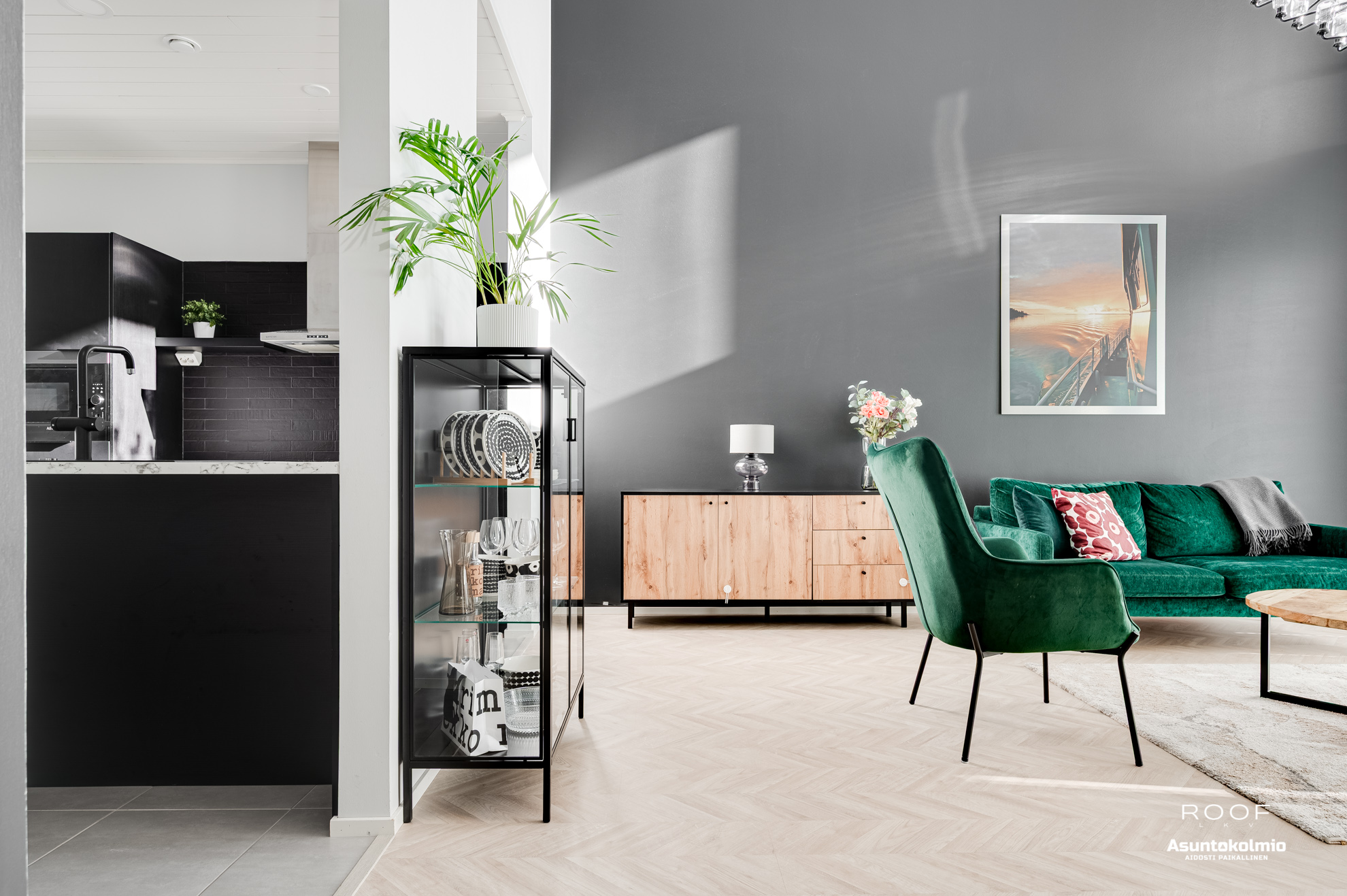 Talossa on kaksi makuuhuonetta, toisessa makuuhuoneessa on parvi, joka tuo lisätilaa esimerkiksi työ- tai vierashuoneeksi. Avara olohuone, jossa isot ikkunat tuovat valoisuutta huoneeseen, yhdistyy saumattomasti keittiöön, mistä löytyy laadukkaat Alacarte-kaapistot ja nykyaikaiset rosteriset kodinkoneet ja keittiön välitila. Tyylikäs käsin veistetty tammiparketti kodin lattiapintana tuo lisää ylellisyyttä asumiseen. Kylpyhuoneessa, josta löytyy hyvin tilaa myös perheen pyykkihuollolle, on lattialämmitys ja oma sauna tarjoaa rentouttavia hetkiä arjen keskellä.