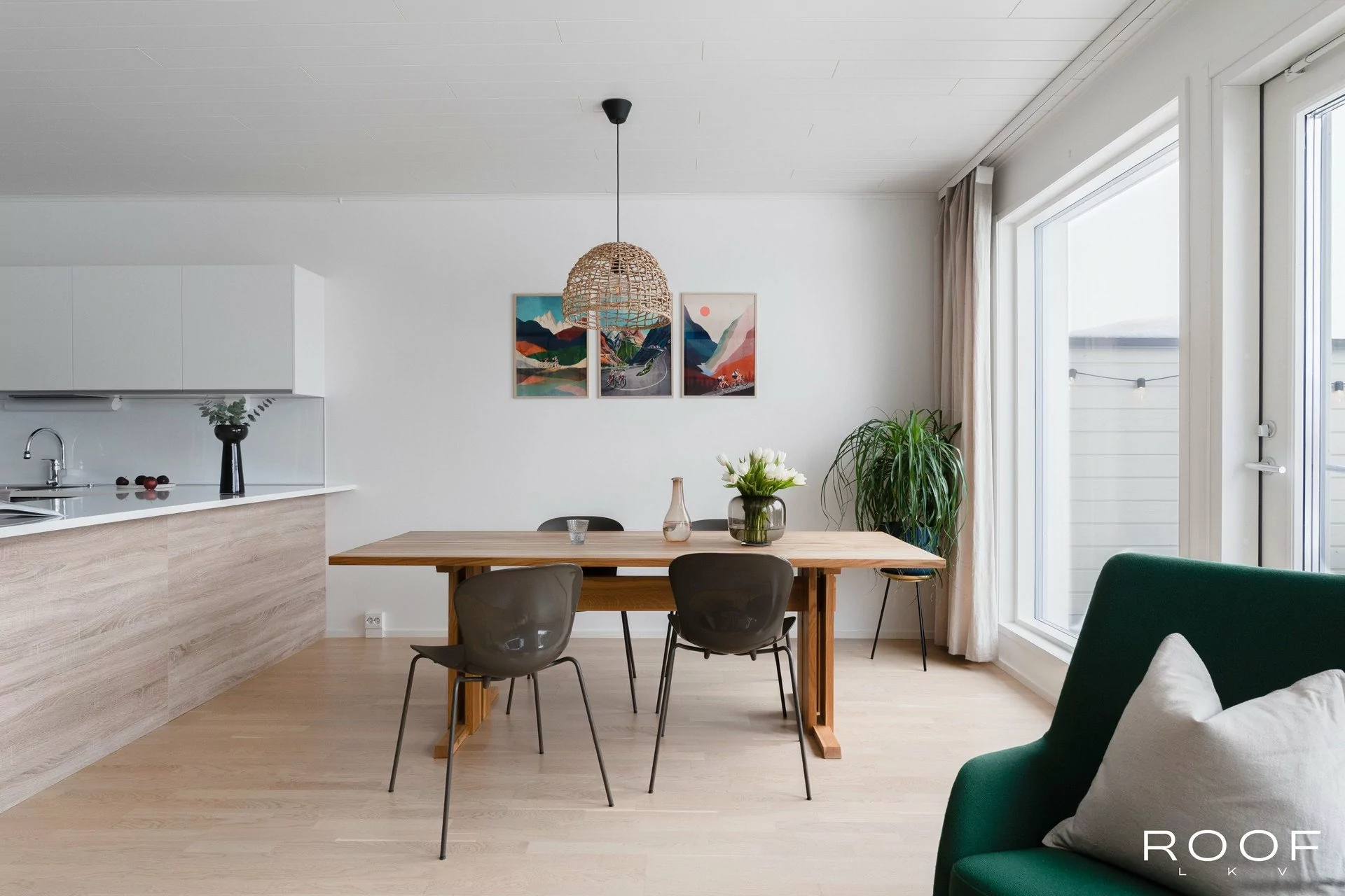 Tässä paritalokodissa yhdistyvät toimiva arki, harkittu tyyli ja poikkeuksellinen tilantuntu parhaalla mahdollisella tavalla. Yhteen tasoon sijoittuvat 125 neliötä on suunniteltu aidosti asumista varten – kokonaisuus on avara, selkeä ja täydellinen lapsiperheen tarpeisiin.