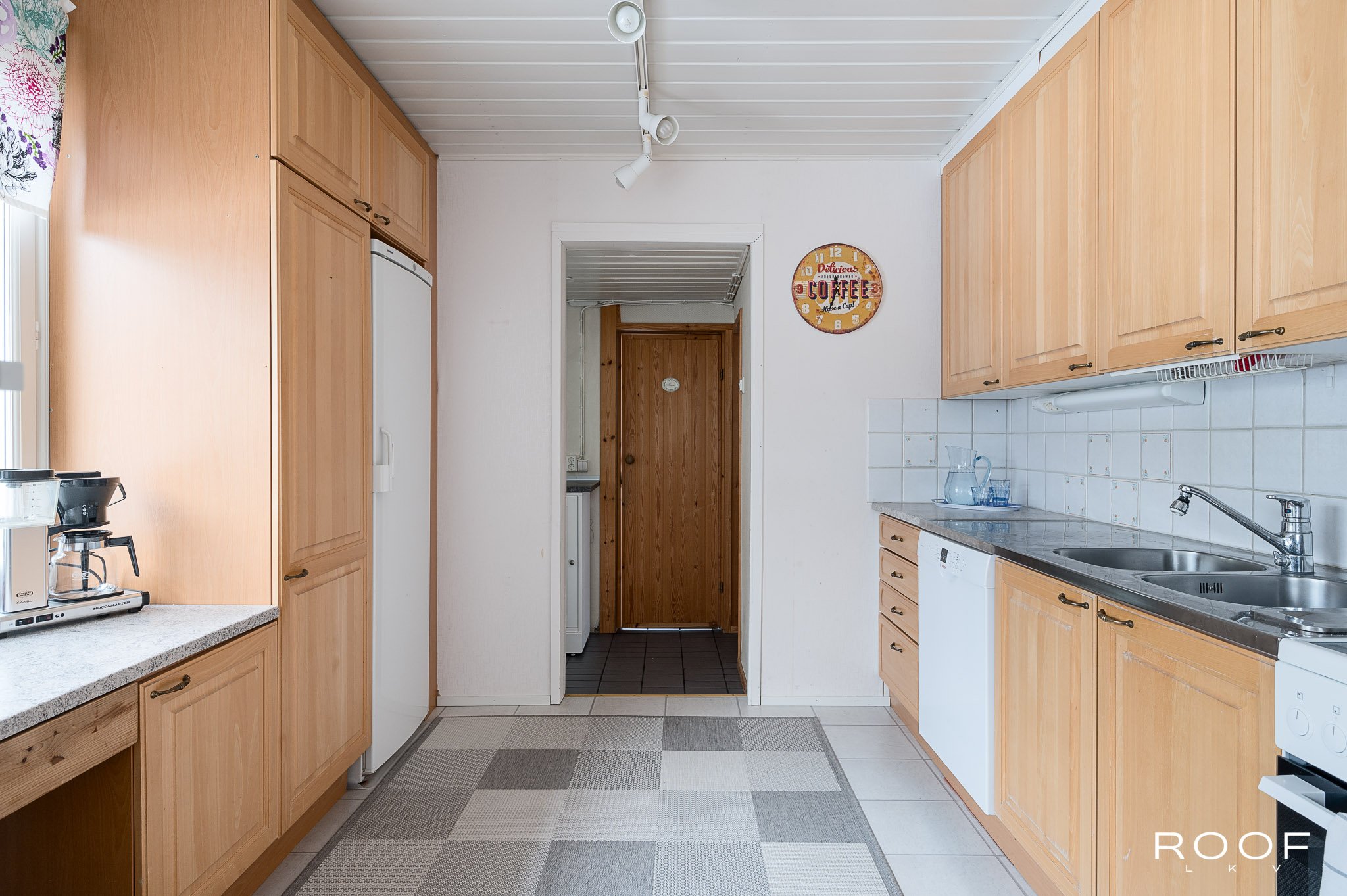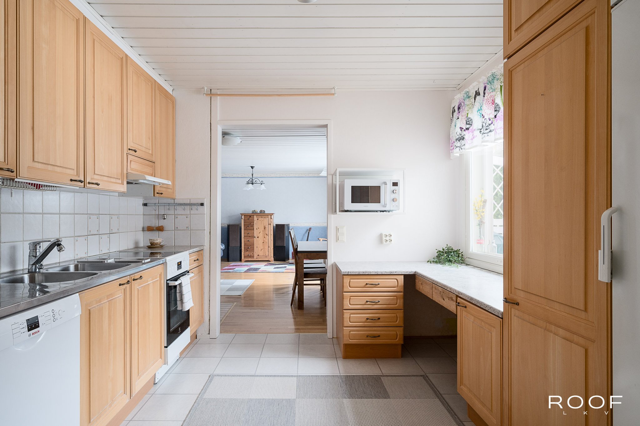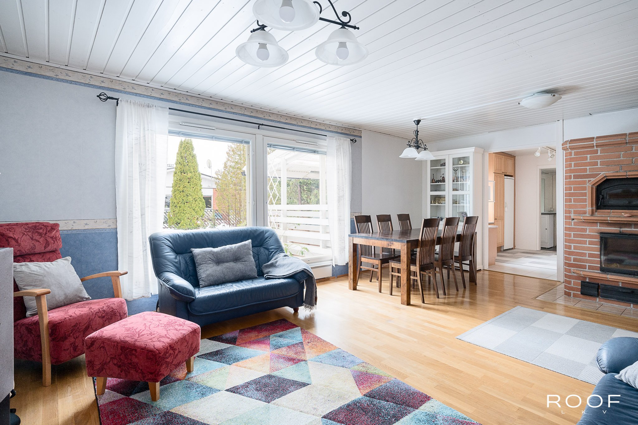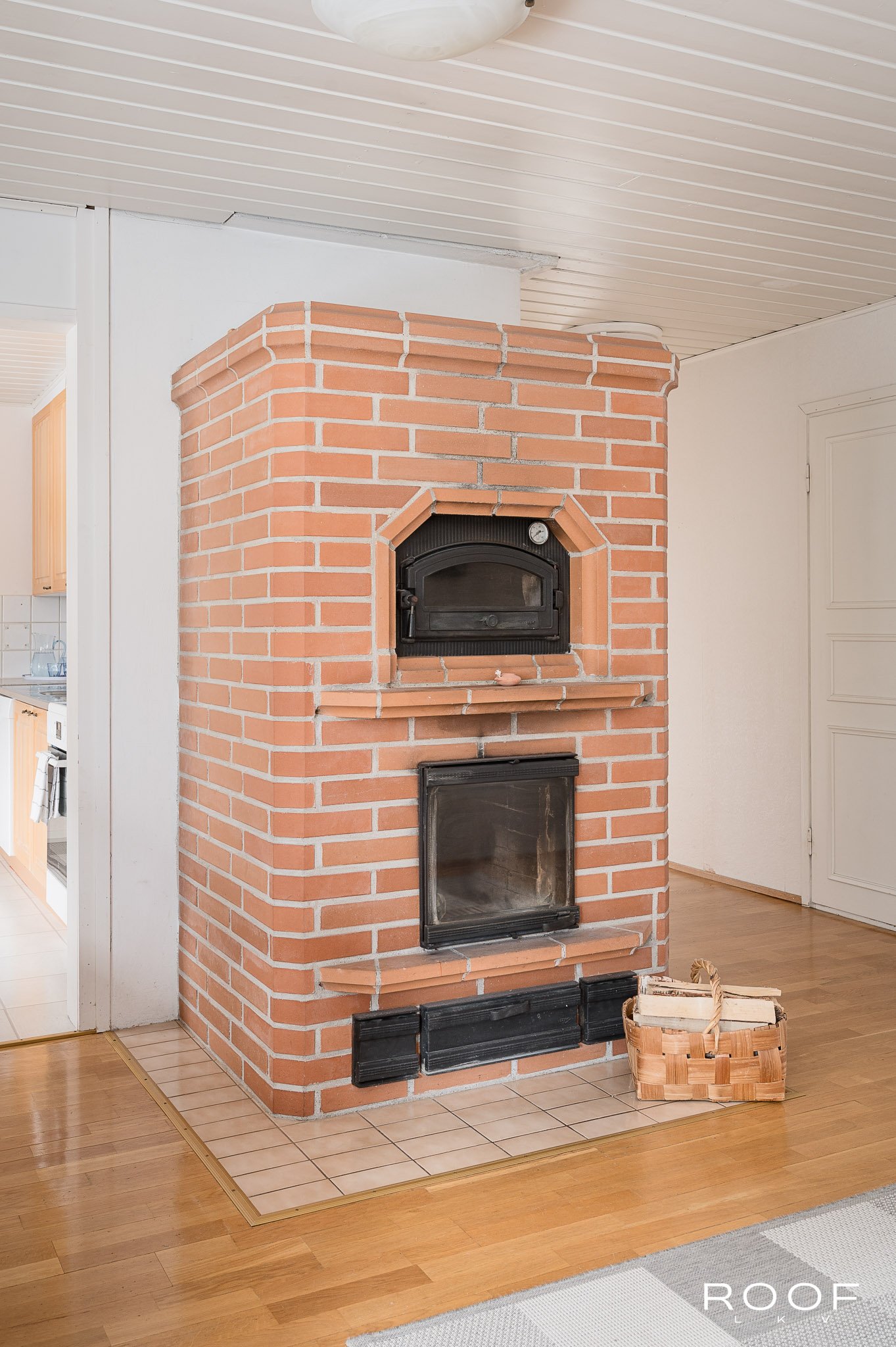 Kun avaat ulko-oven, vastassa on valoisa ja avara olohuone, jonka suurista ikkunoista avautuvat näkymät suojaisalle takapihalle. Olohuoneen yhteyteen sijoittuvat sekä ruokailutila että kodin sydän; jykevä varaava takka leivinuuneineen, joka tuo taloon sekä tunnelmaa että tehokasta lämpöä. Keittiö on erillisenä olohuoneen ...