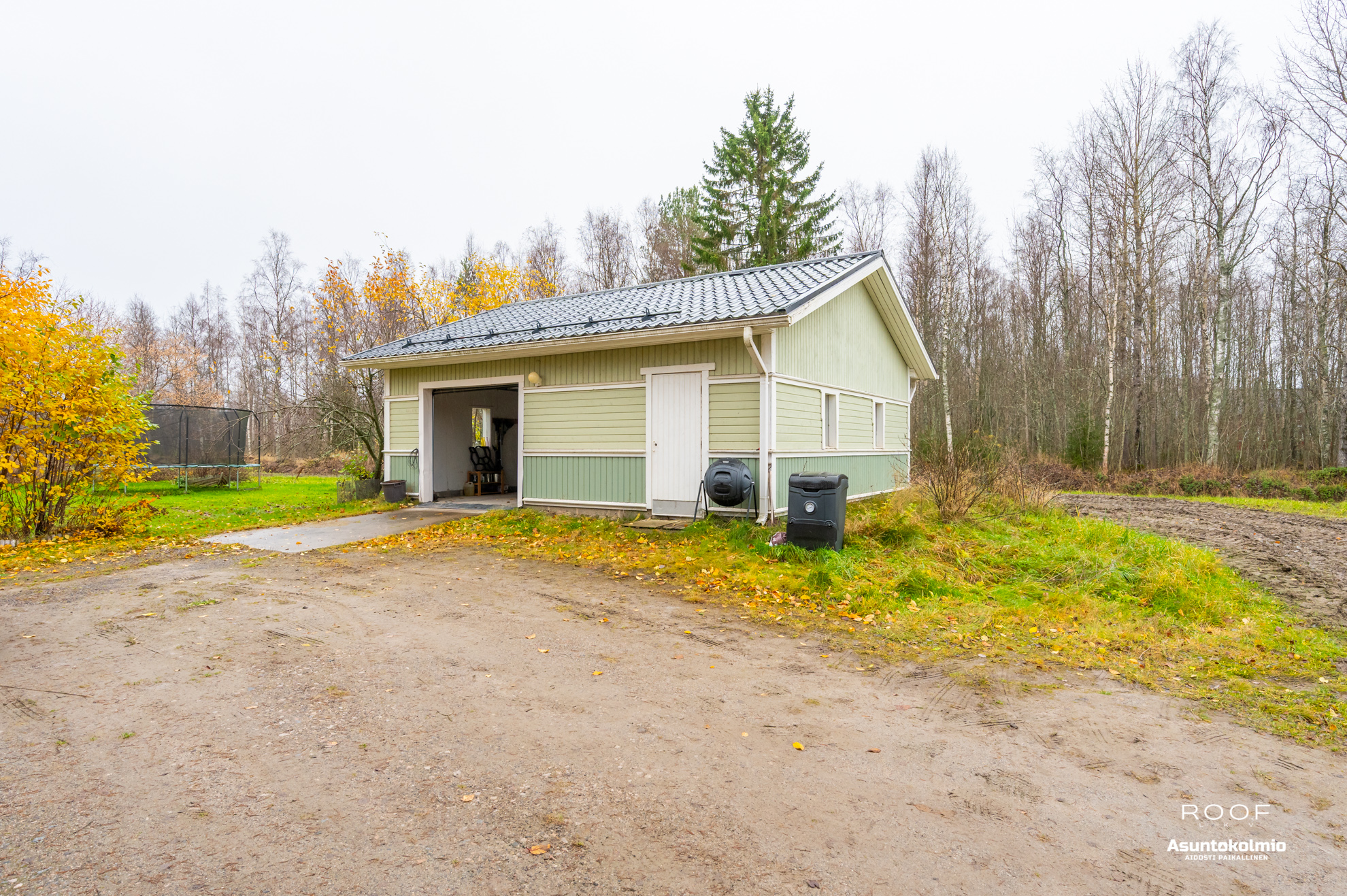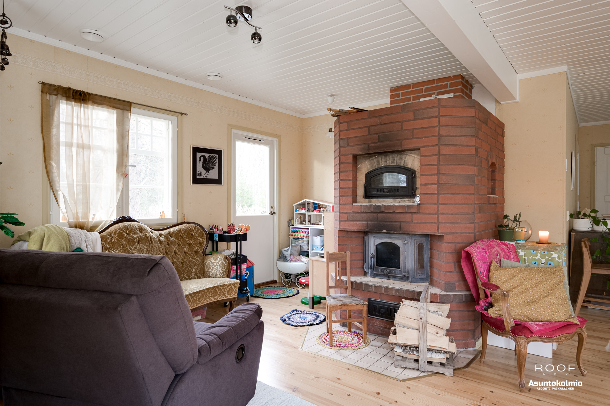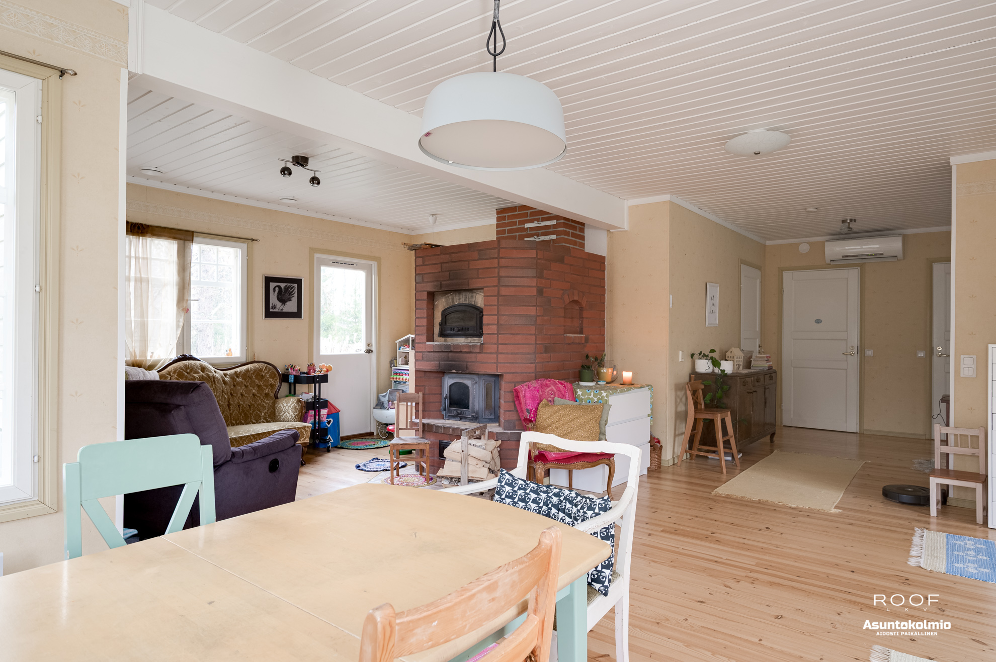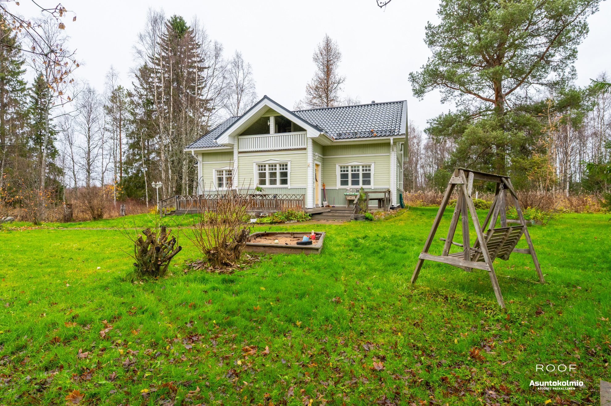 Vuonna 2000 valmistunut Perinne -tyylinen omakotitalo alkuperäiseltä omistajalta, jossa tilat kätevästi kahdessa kerroksessa. Tässä kodissa asuintilat ovat väljät ja valoisat luoden kodikkaan ja avaran tunnelman. Ison eteisen ja eteisaulan kautta käynti tilavaan olohuoneeseen sekä tupakeittiöön. Keittiön on hyvin varusteltu sekä sisältäen paljon kaappi- ja laskutilaa. Keskeisellä paikalla takkaleivinuuni, joka yhdessä ilmalämpöpumpun kanssa huolehtivat lämmityksestä. Isosta kodinhoitohuoneessa on oma uloskäynti sekä runsaasti kaappitilaa mikä sujuvoittaa arjen askareita. Perinteinen puusauna sekä kylpyhuoneen yhteydessä, että myös pihalla. Tunnelmallisen ulkosauna löylyissä arjen kiireet unohtuvat. Yläkerrassa yksi makuuhuone, vaatehuone ja wc-tila sekä iso aulatila, joka jaettavissa kahdeksi makuutilaksi tai käytettävissä sellaisenaan moneen käyttöön.