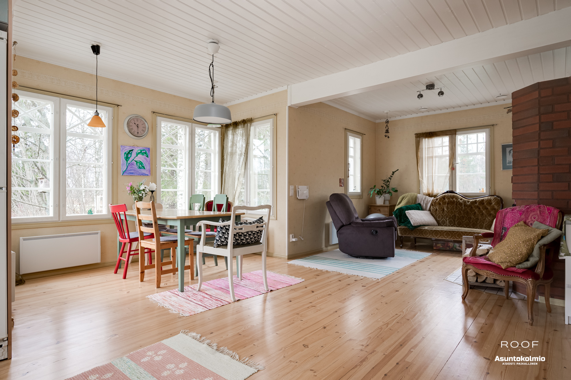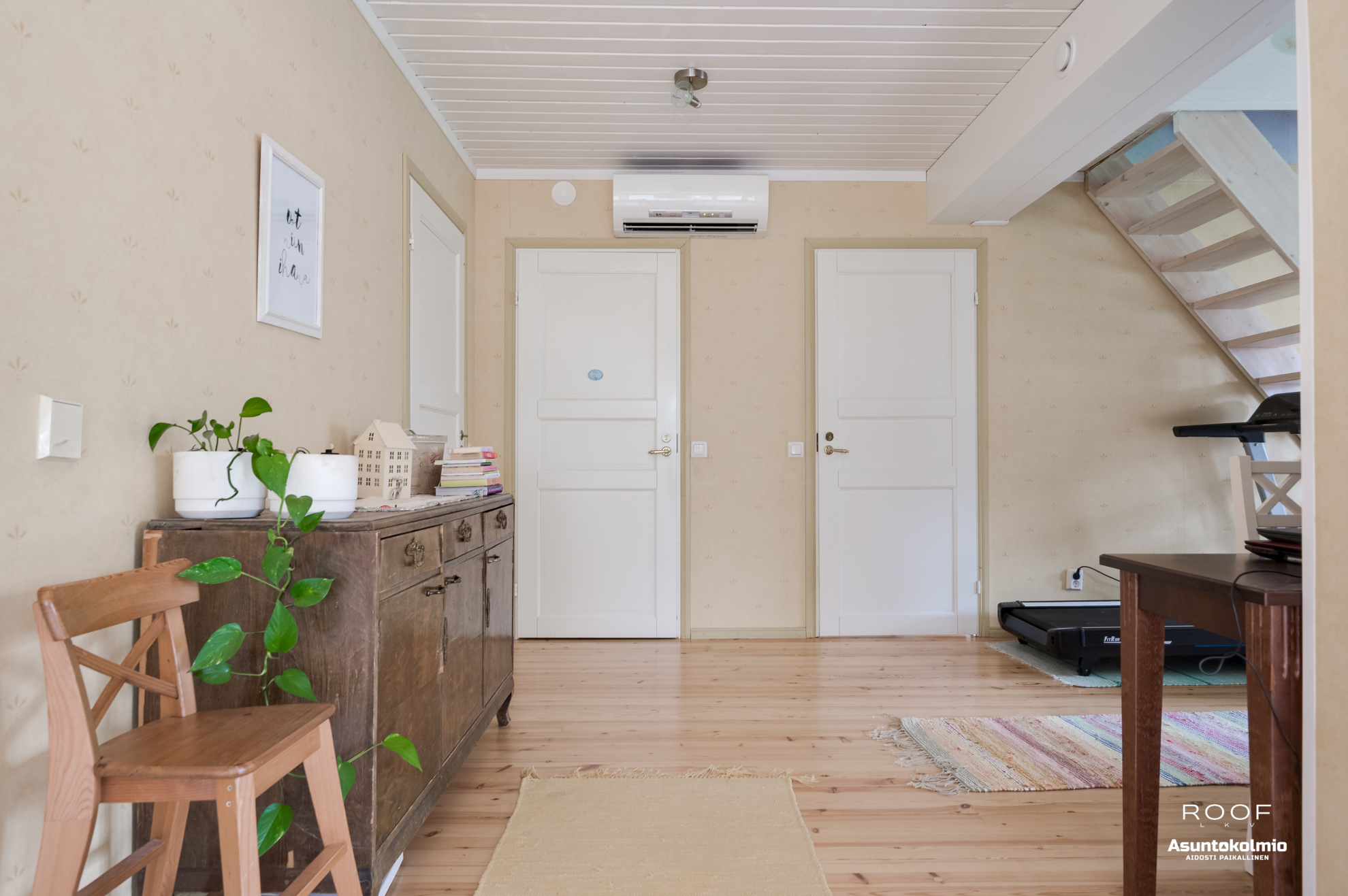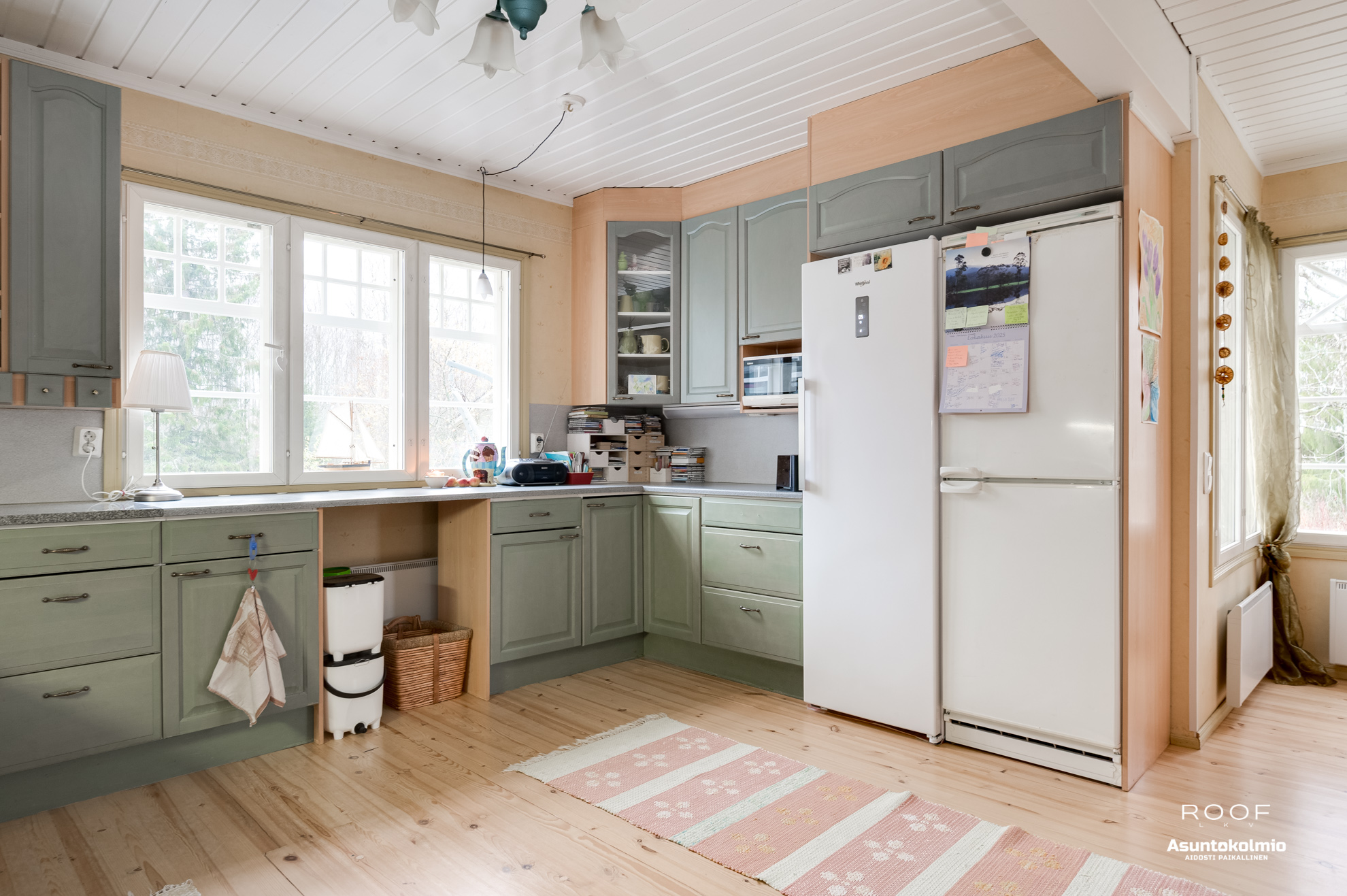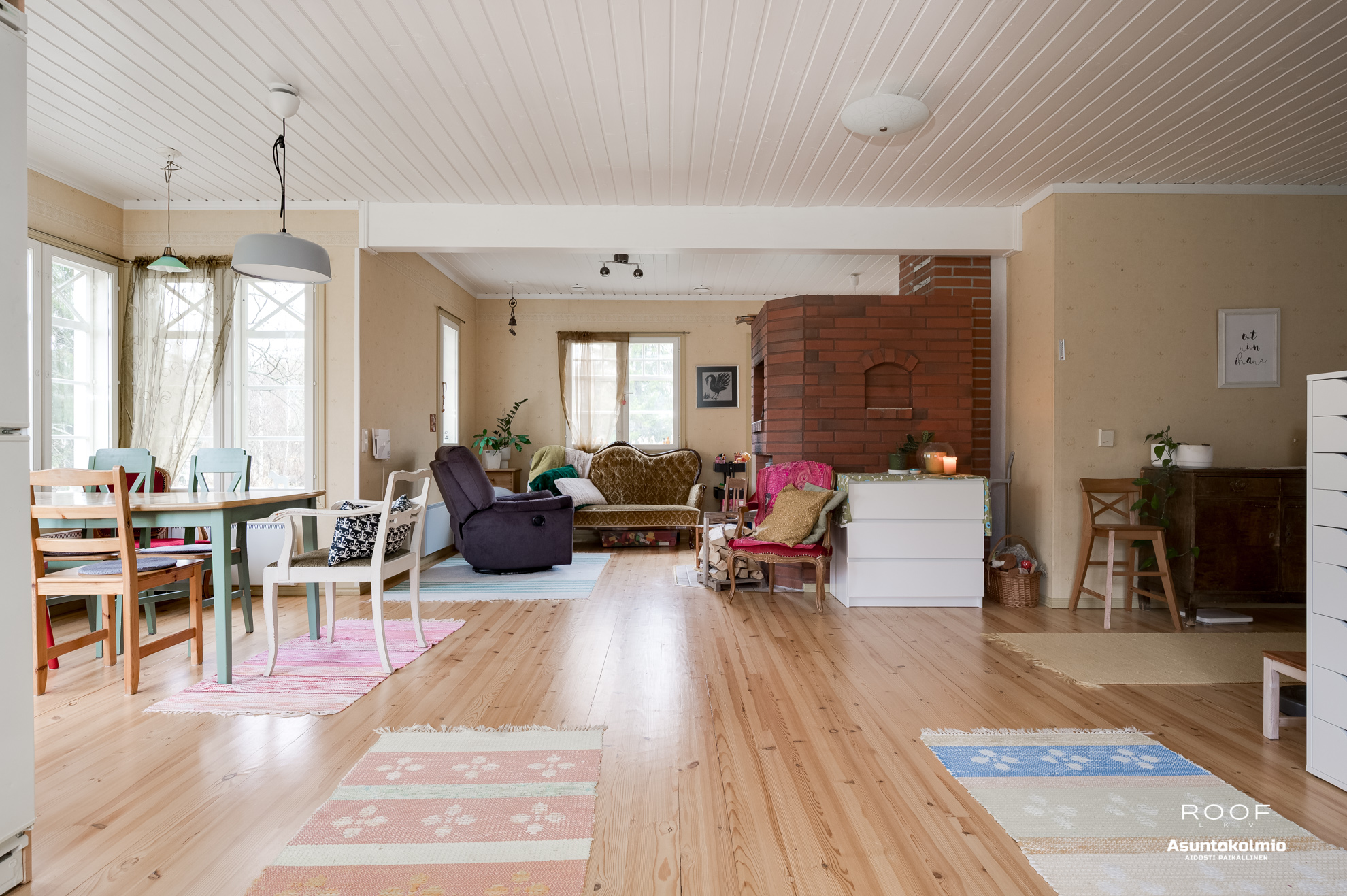 Vuonna 2000 valmistunut Perinne -tyylinen omakotitalo alkuperäiseltä omistajalta, jossa tilat kätevästi kahdessa kerroksessa. Tässä kodissa asuintilat ovat väljät ja valoisat luoden kodikkaan ja avaran tunnelman. Ison eteisen ja eteisaulan kautta käynti tilavaan olohuoneeseen sekä tupakeittiöön. Keittiön on hyvin varusteltu sekä sisältäen paljon kaappi- ja laskutilaa. Keskeisellä paikalla takkaleivinuuni, joka yhdessä ilmalämpöpumpun kanssa huolehtivat lämmityksestä. Isosta kodinhoitohuoneessa on oma uloskäynti sekä runsaasti kaappitilaa mikä sujuvoittaa arjen askareita. Perinteinen puusauna sekä kylpyhuoneen yhteydessä, että myös pihalla. Tunnelmallisen ulkosauna löylyissä arjen kiireet unohtuvat. Yläkerrassa yksi makuuhuone, vaatehuone ja wc-tila sekä iso aulatila, joka jaettavissa kahdeksi makuutilaksi tai käytettävissä sellaisenaan moneen käyttöön.