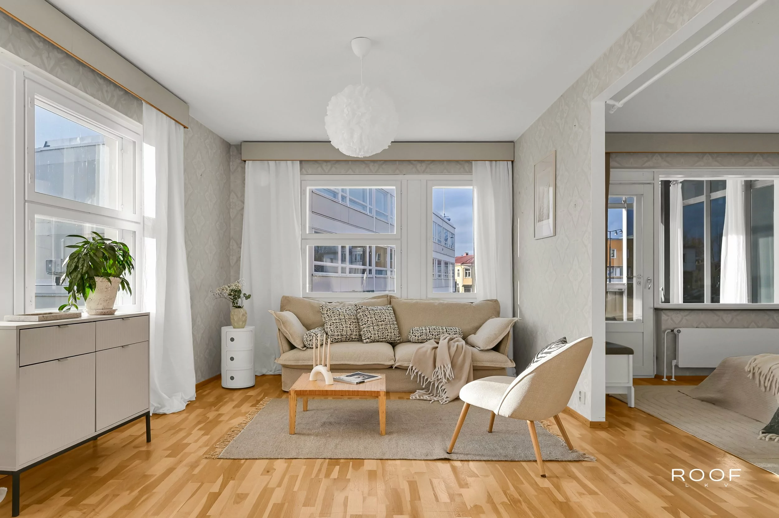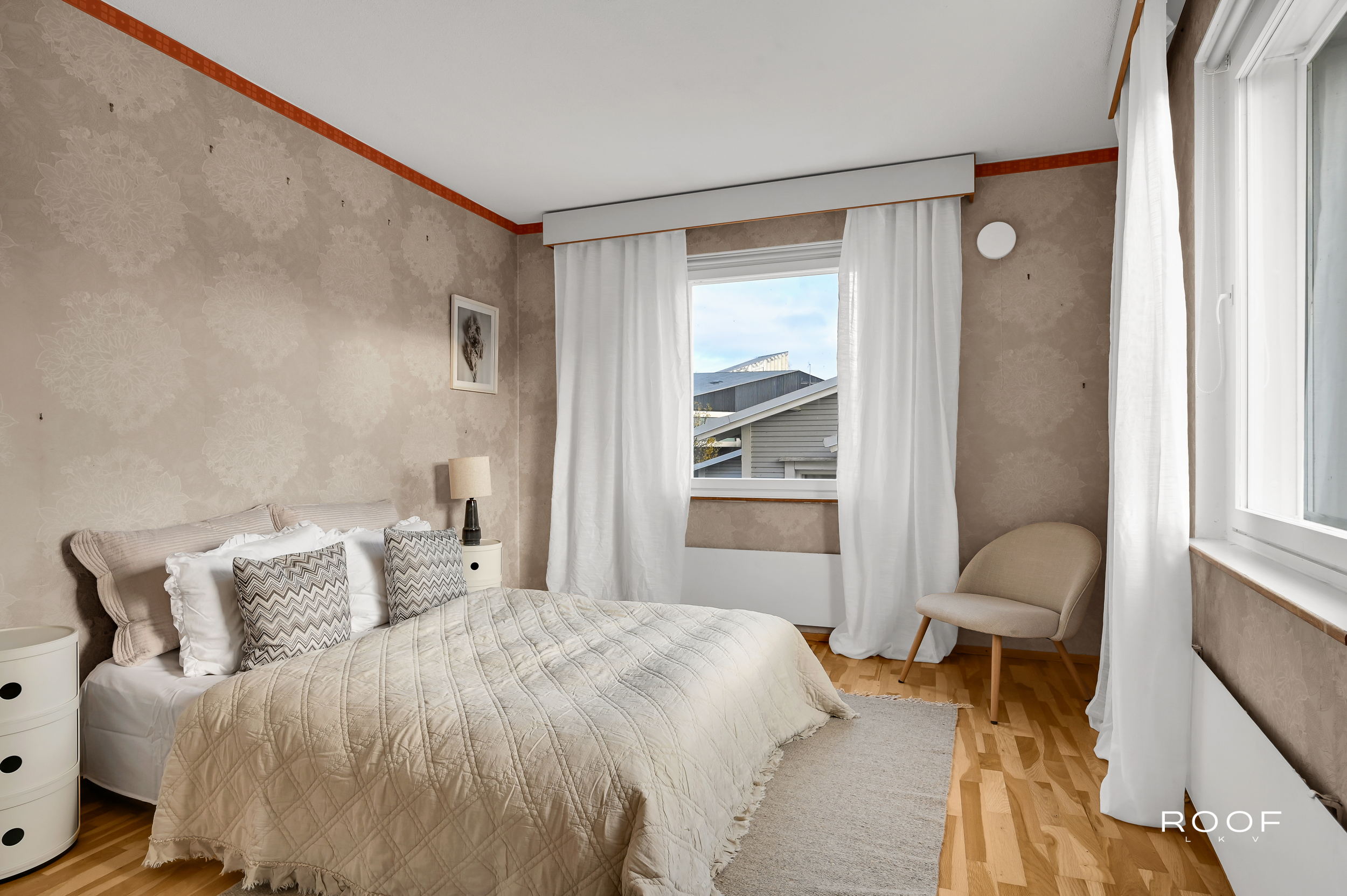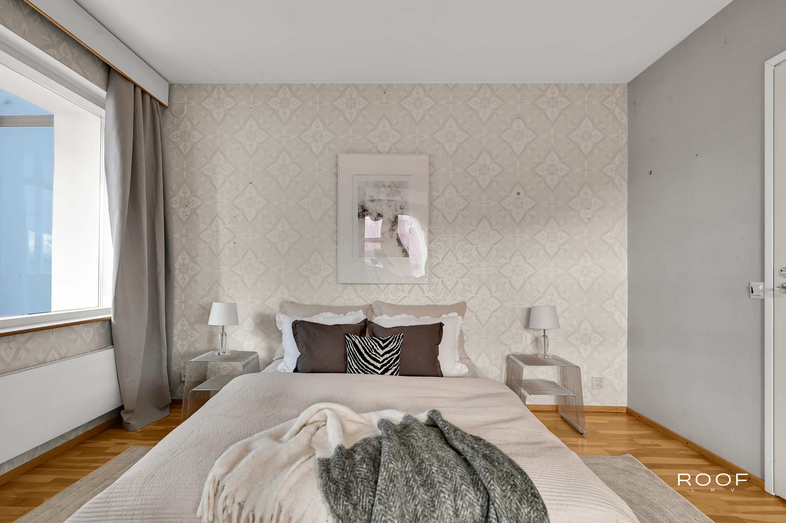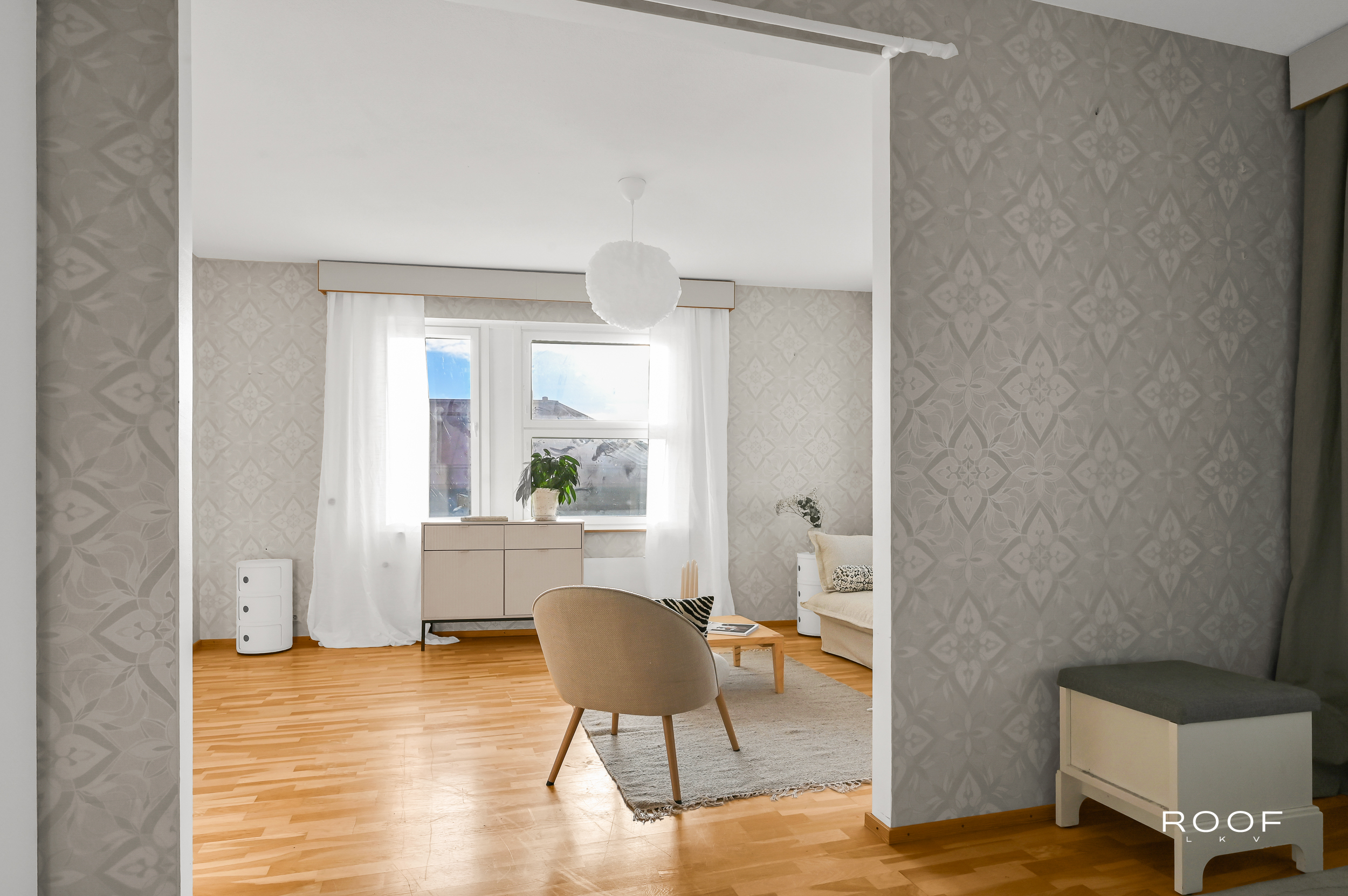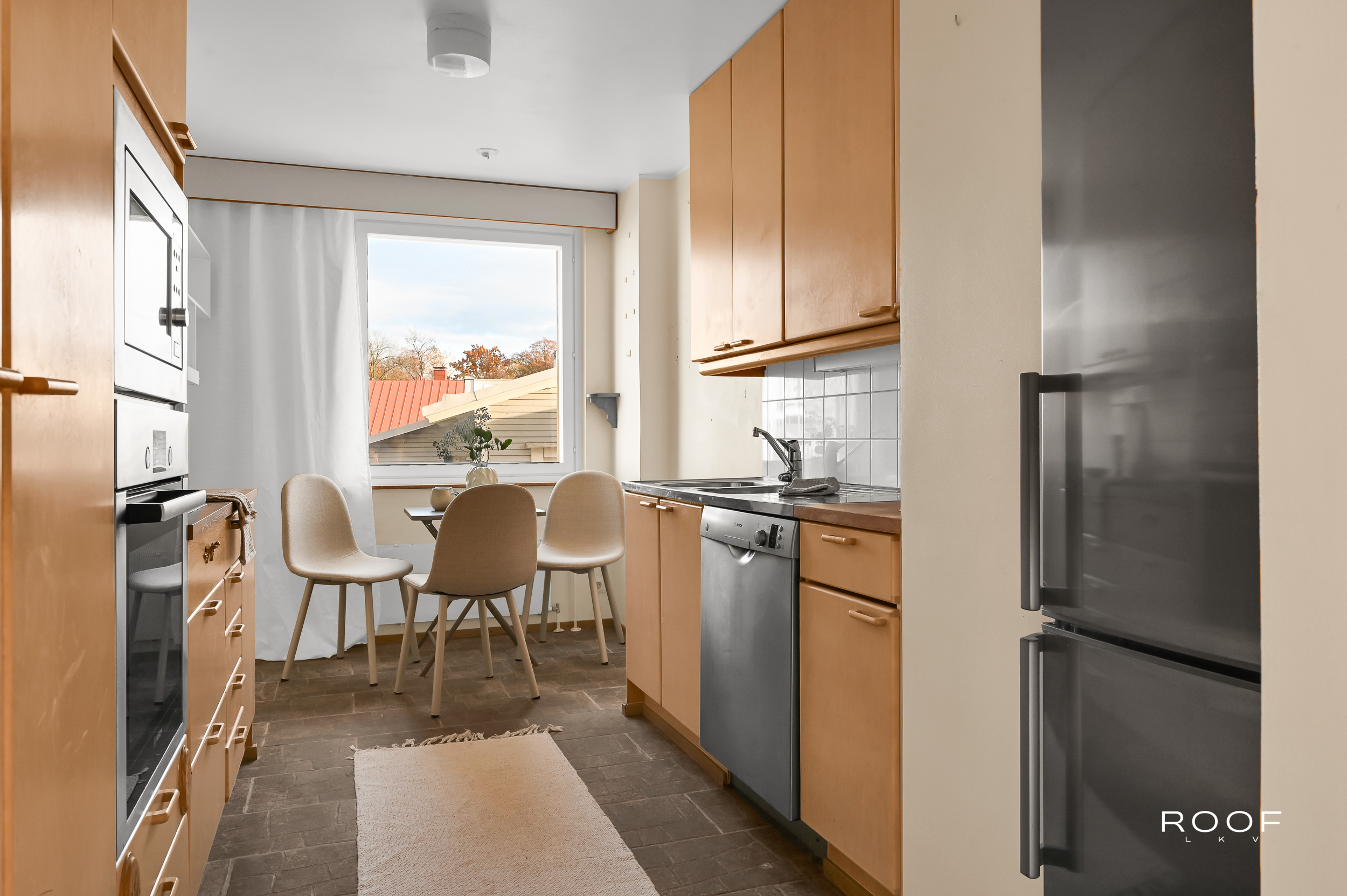 Lägenheten på andra våningen omfattar 4–5 rum och kök, badrum samt egen bastu. Perfekt för dig som önskar gott om utrymme för familjeliv, hemarbete eller gäster.