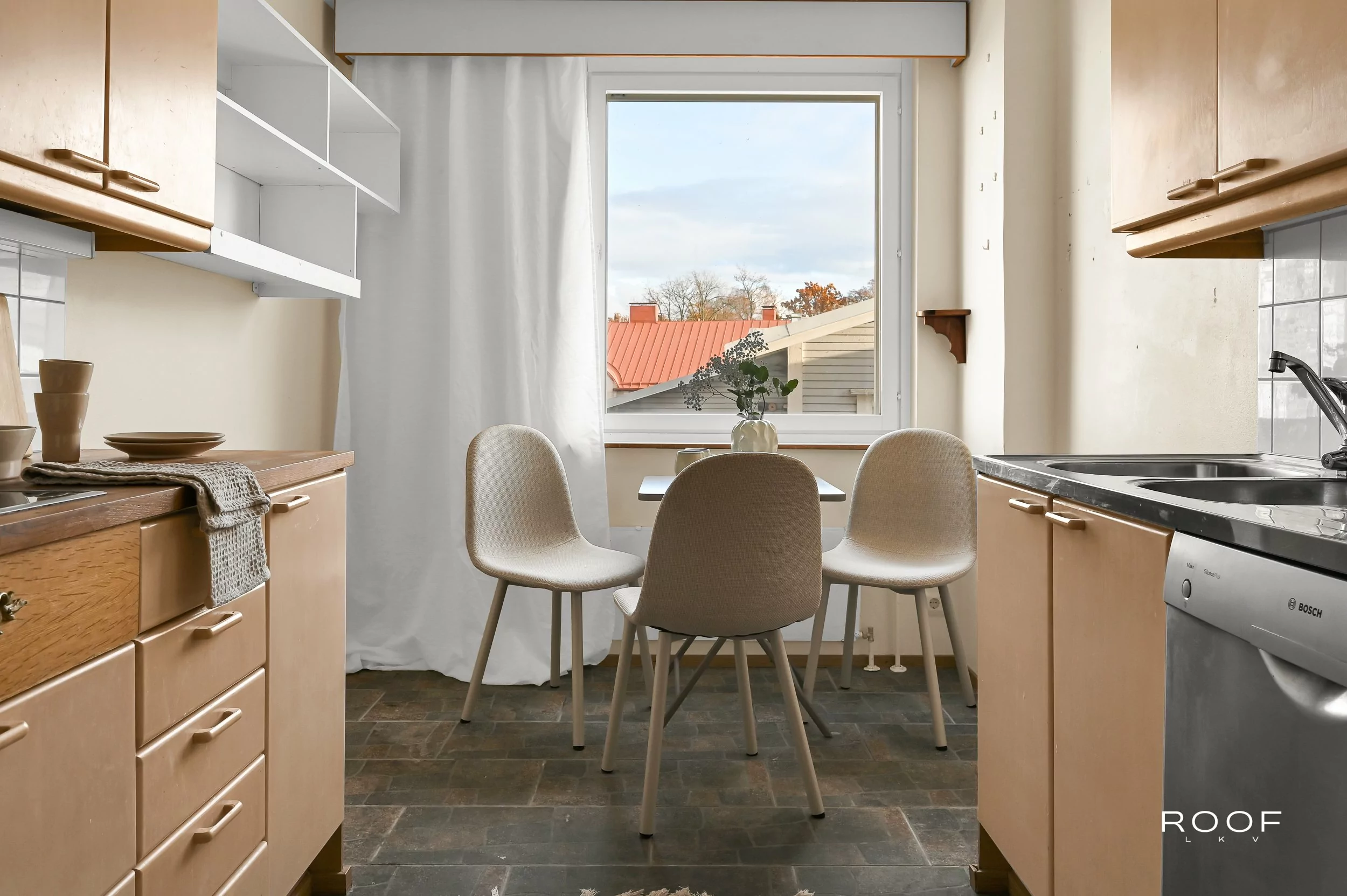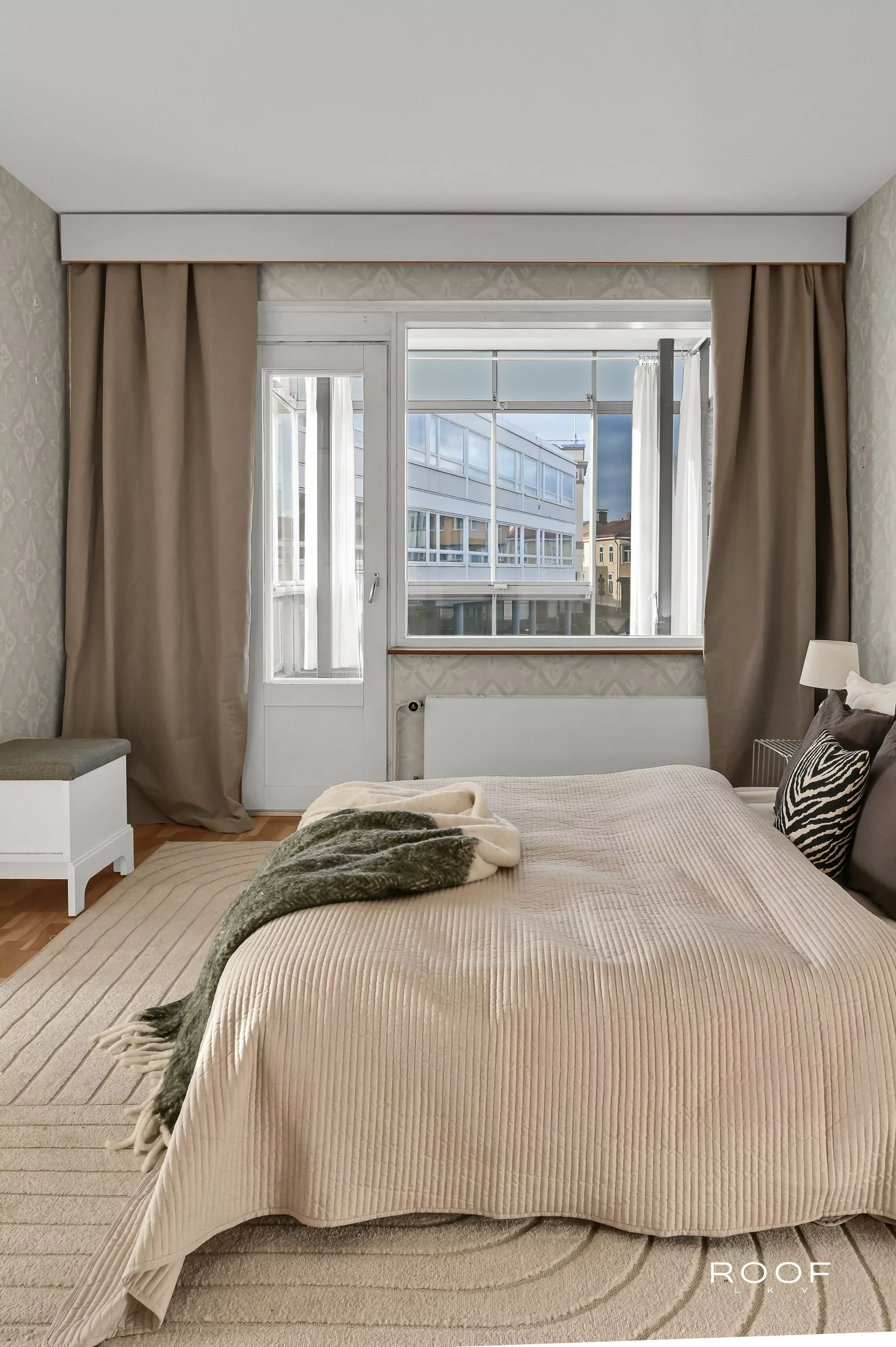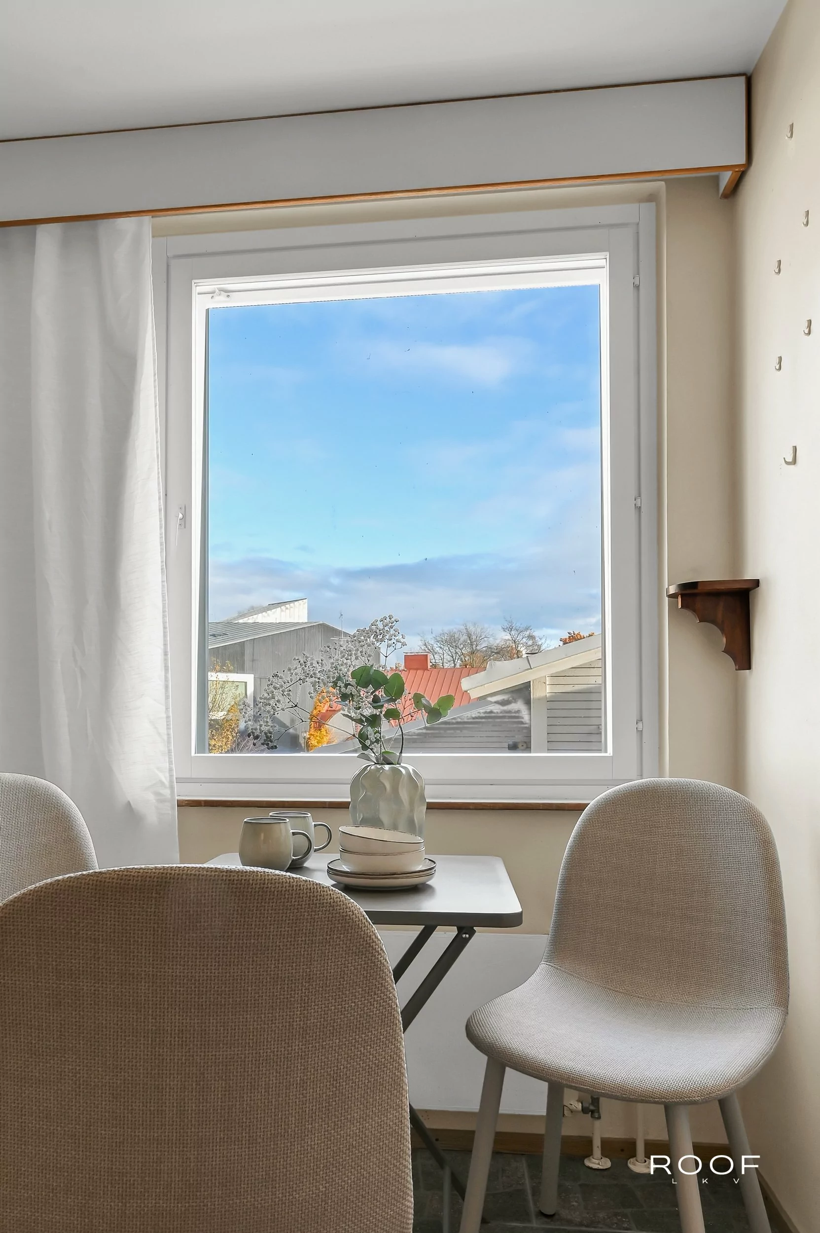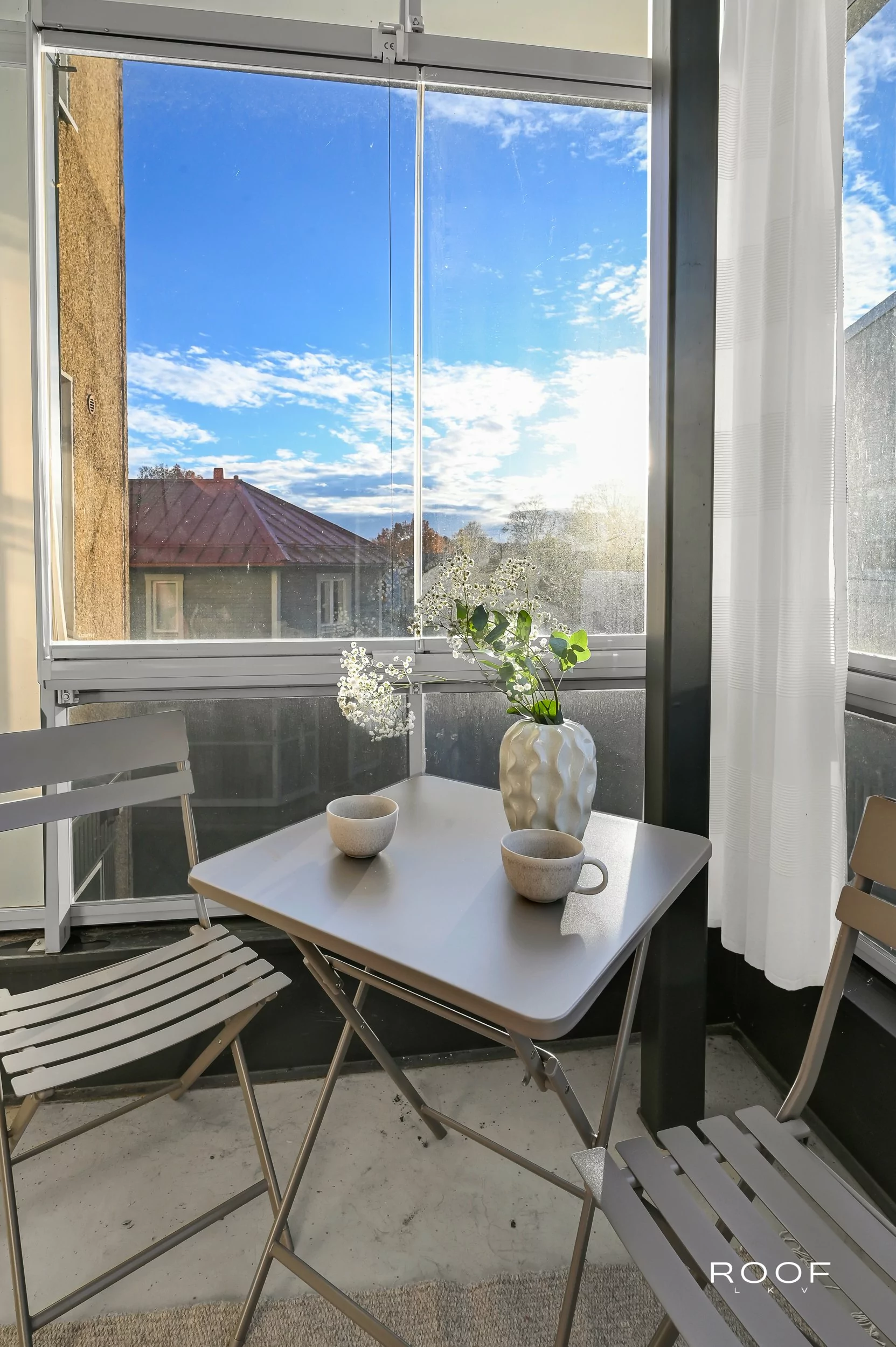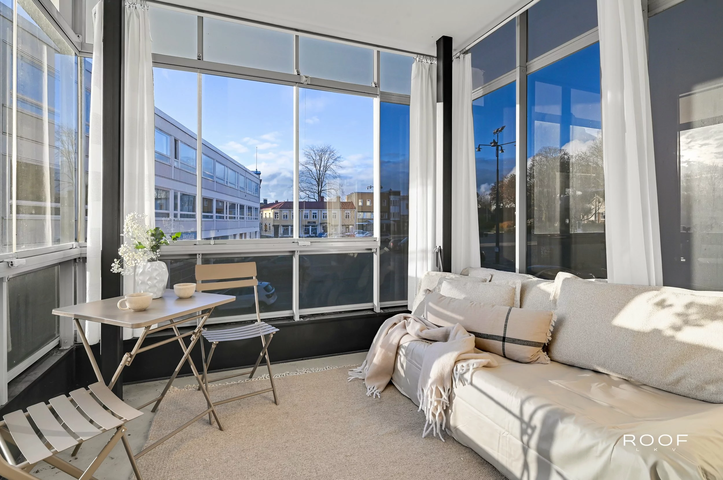 Här kan du blicka ut över stadens historiska kvarter och njuta av folklivet på torget från första parkett. Den inglasade balkongen fungerar som ett extra rum större delen av året.