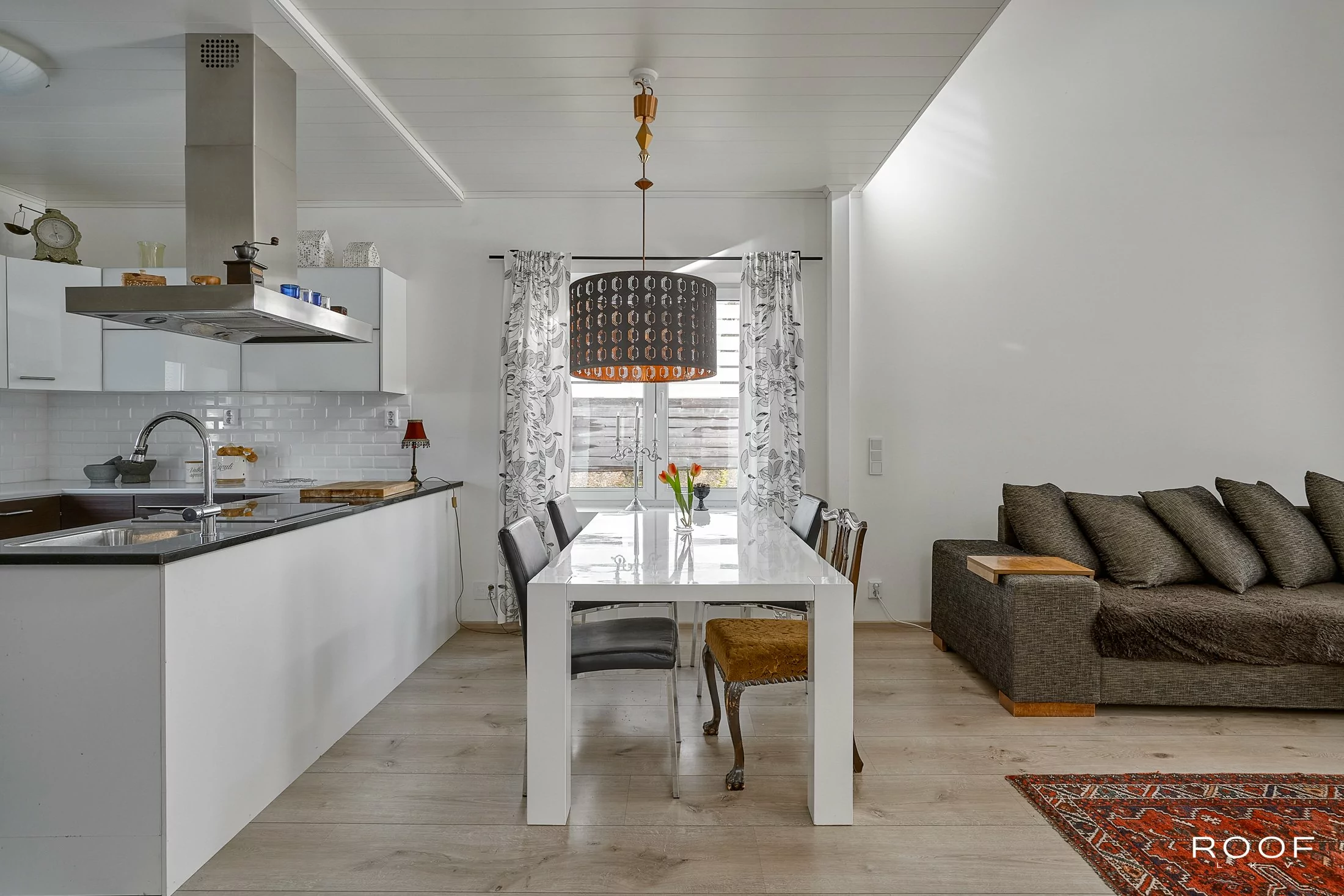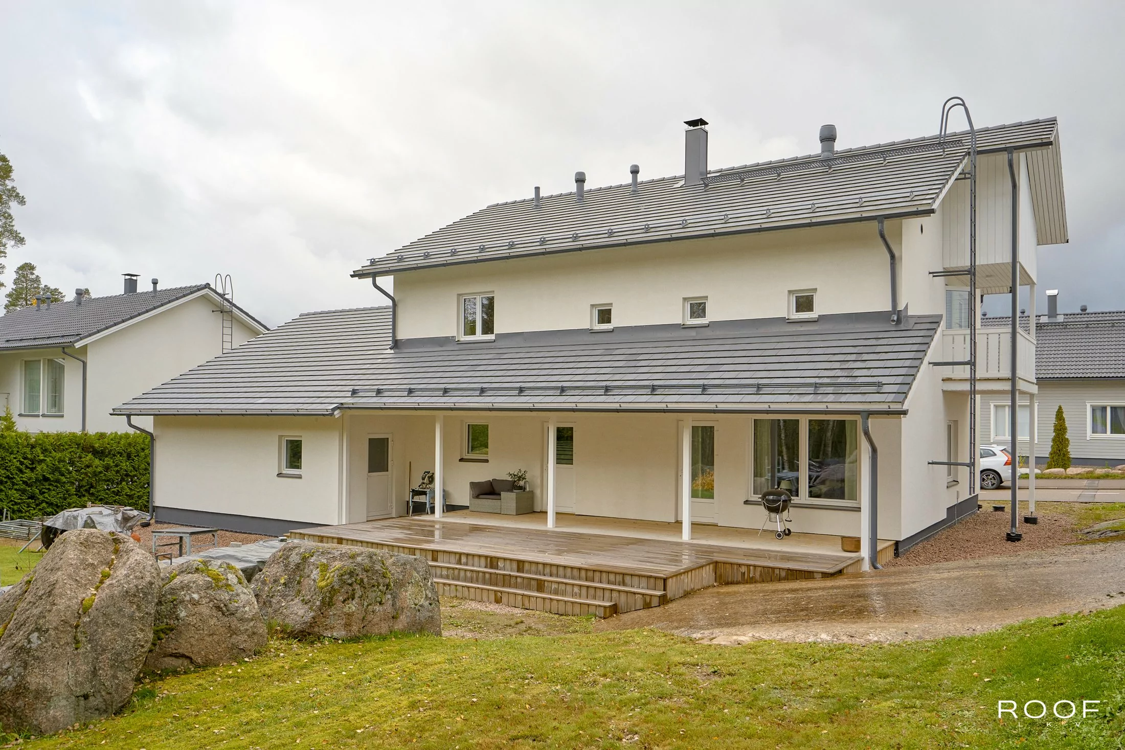 Tyylikäs ja huolellisesti ylläpidetty omakotitalo sijaitsee rauhallisella Otsolan alueella Kotkassa. Kivirunkoinen arkkitehdin suunnittelema koti on kahdessa kerroksessa. Neljän makuuhuoneen talossa on tilaa perheelle. Tilavassa olohuoneessa on varaava takka leivinuunilla, moderni keittiö on samaa avaraa tilaa.