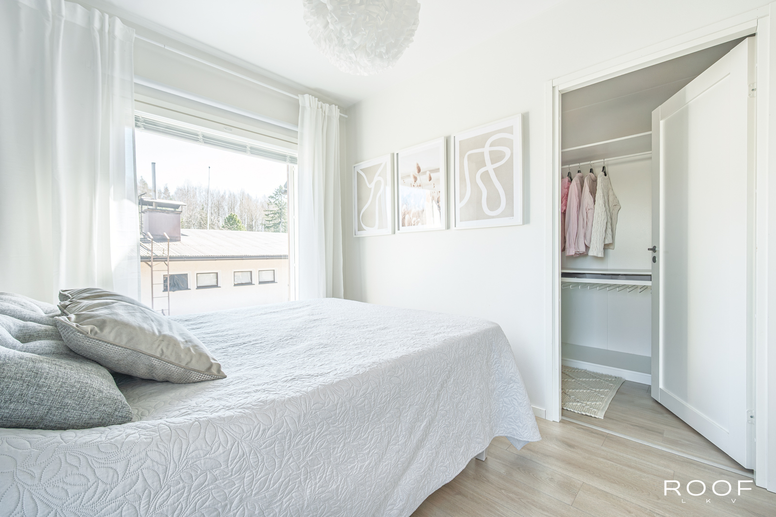Yläkerrassa omassa rauhassaan on kodin kolmas makuuhuone, joka taipuu moneen asukkaiden tarpeiden mukaan. Lisäksi yläkerrasta löytyy asunnon toinen erillinen wc ja vaate-/varastohuone, joka muuntuu vaikka työ- tai pelitilaksikin.