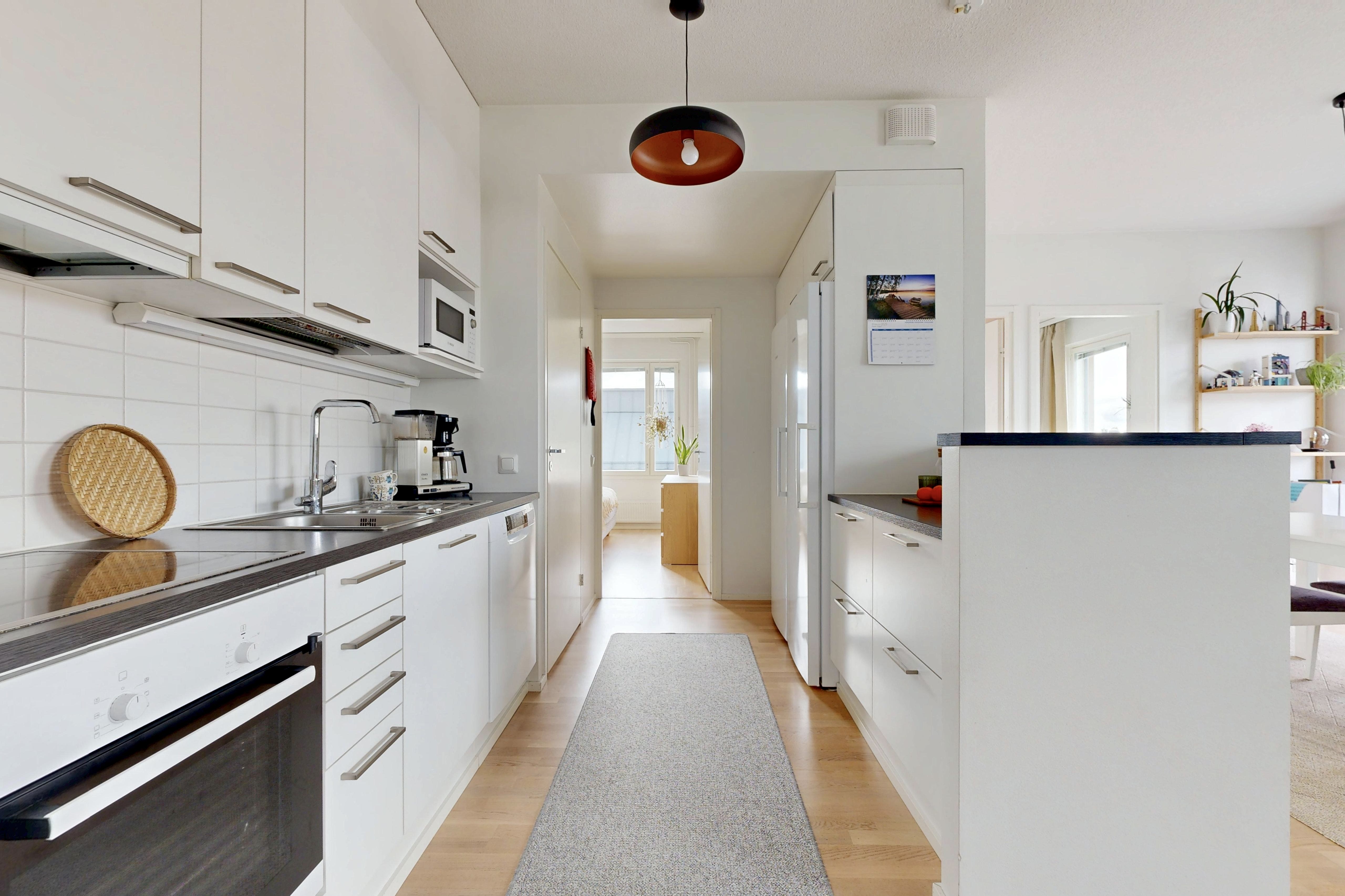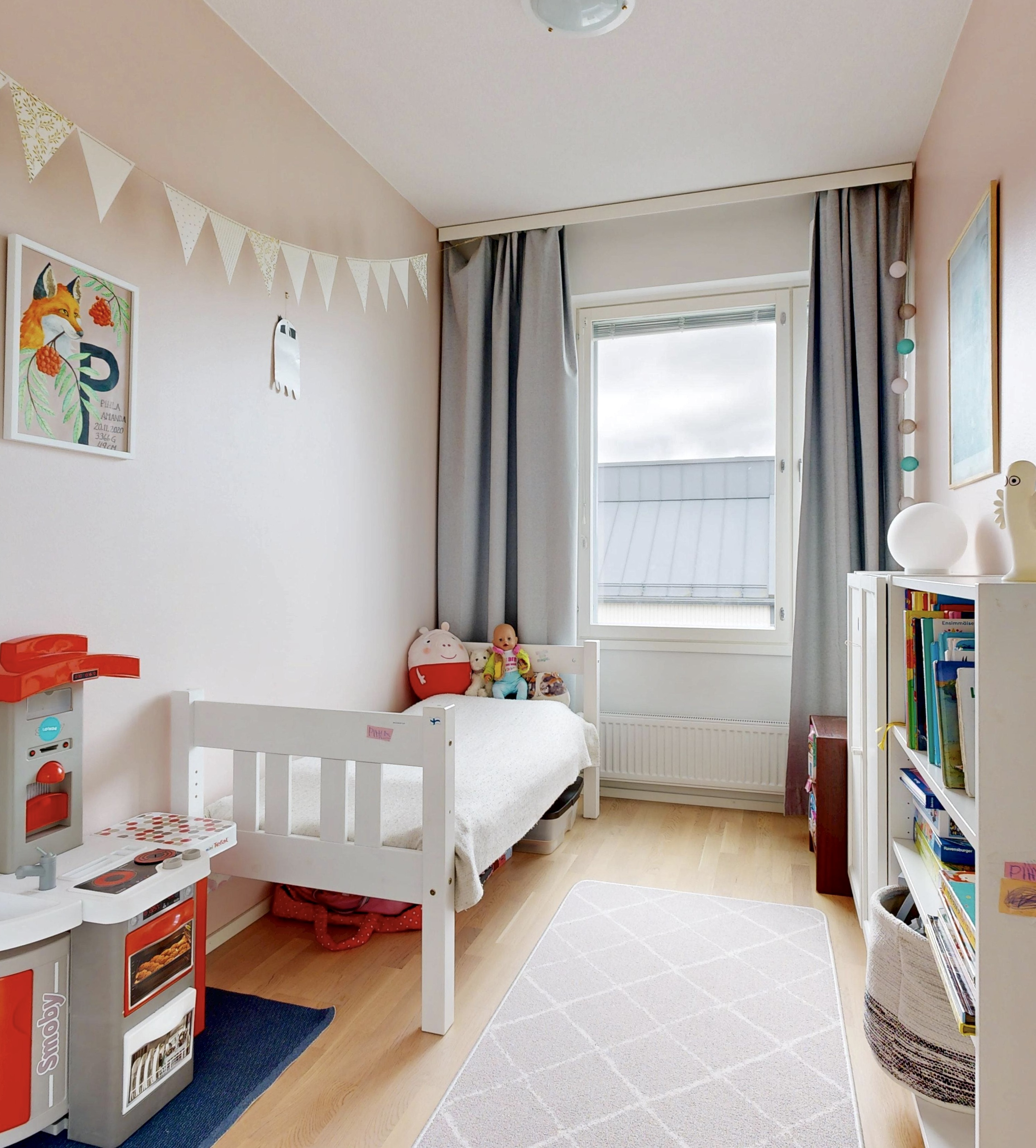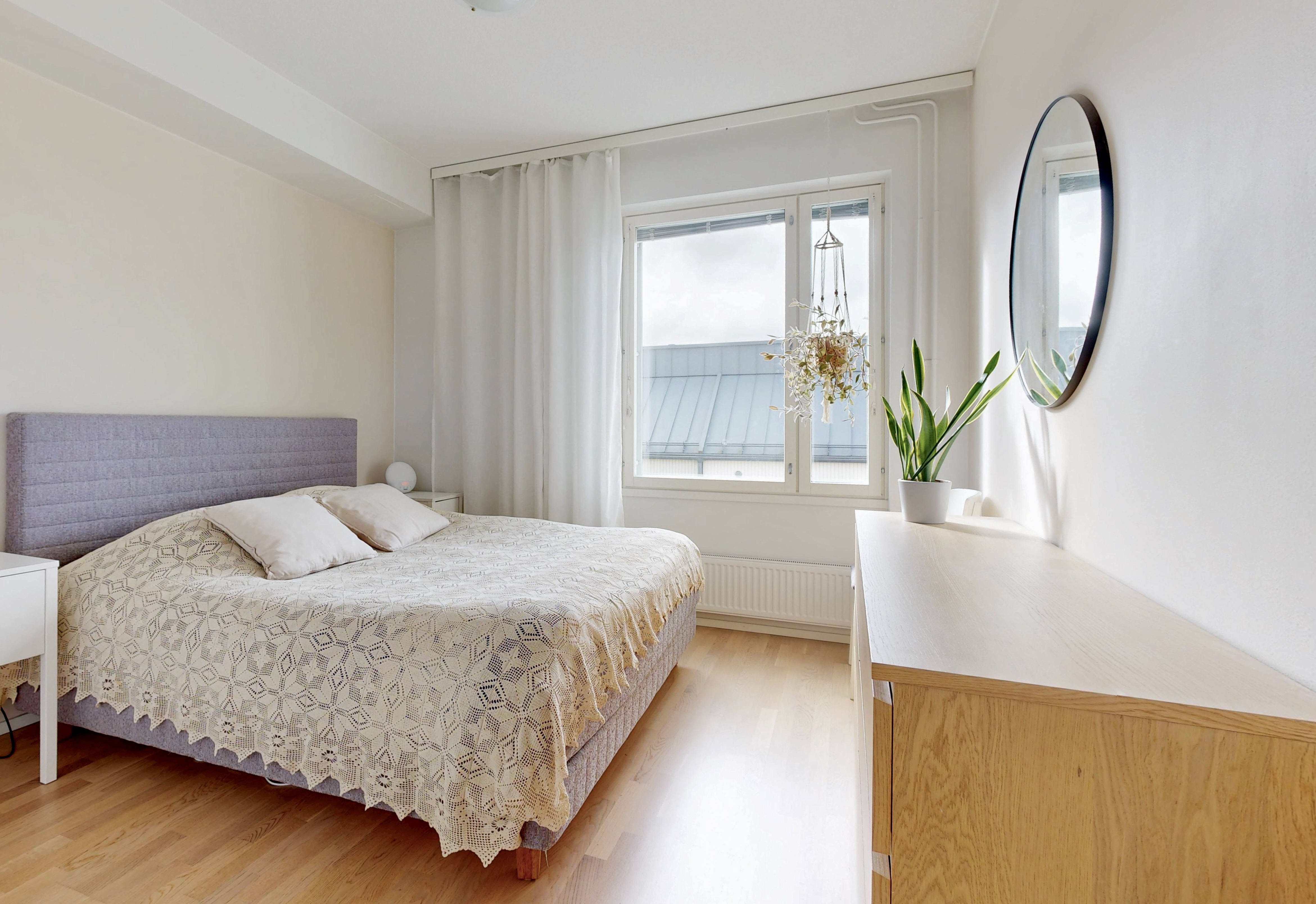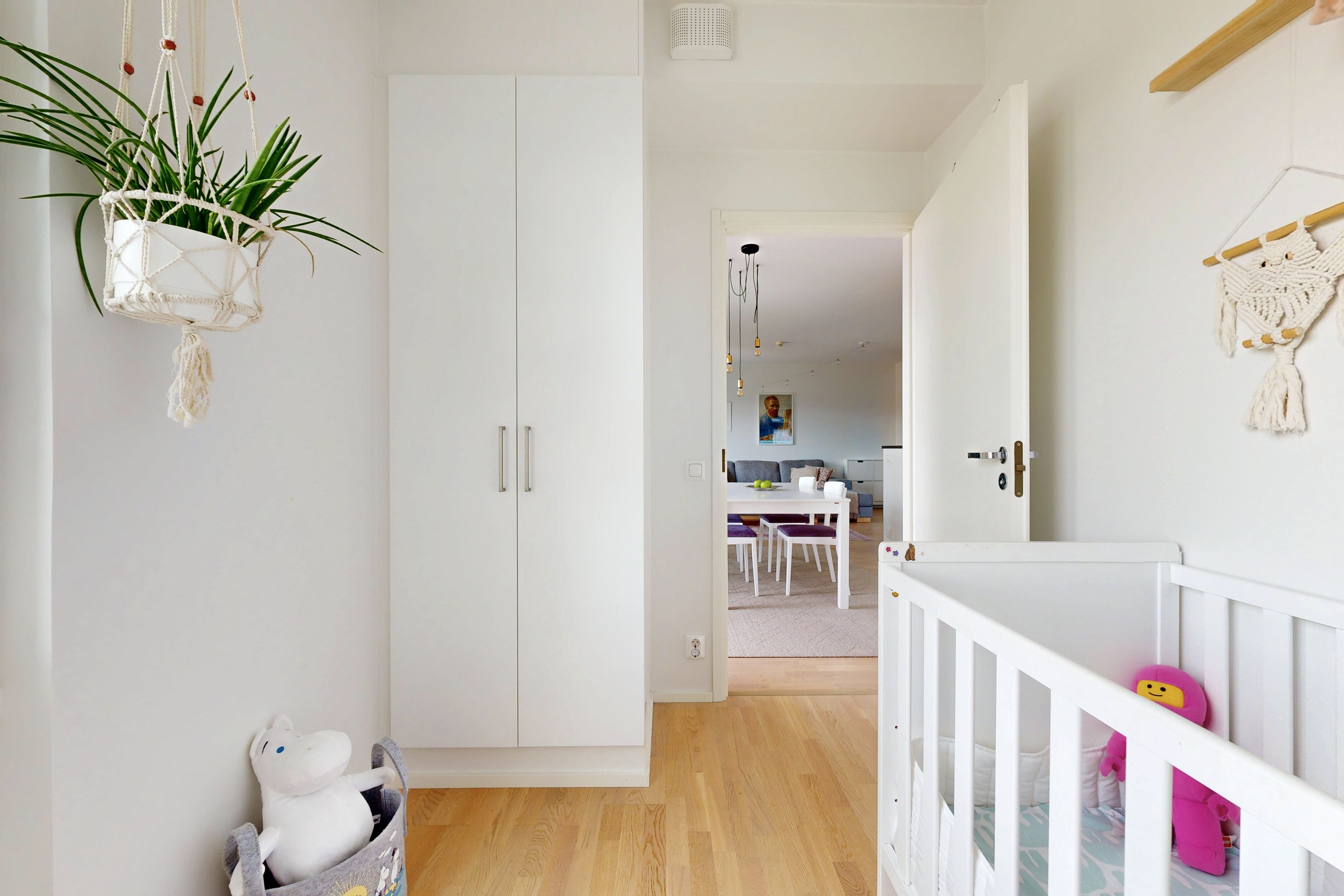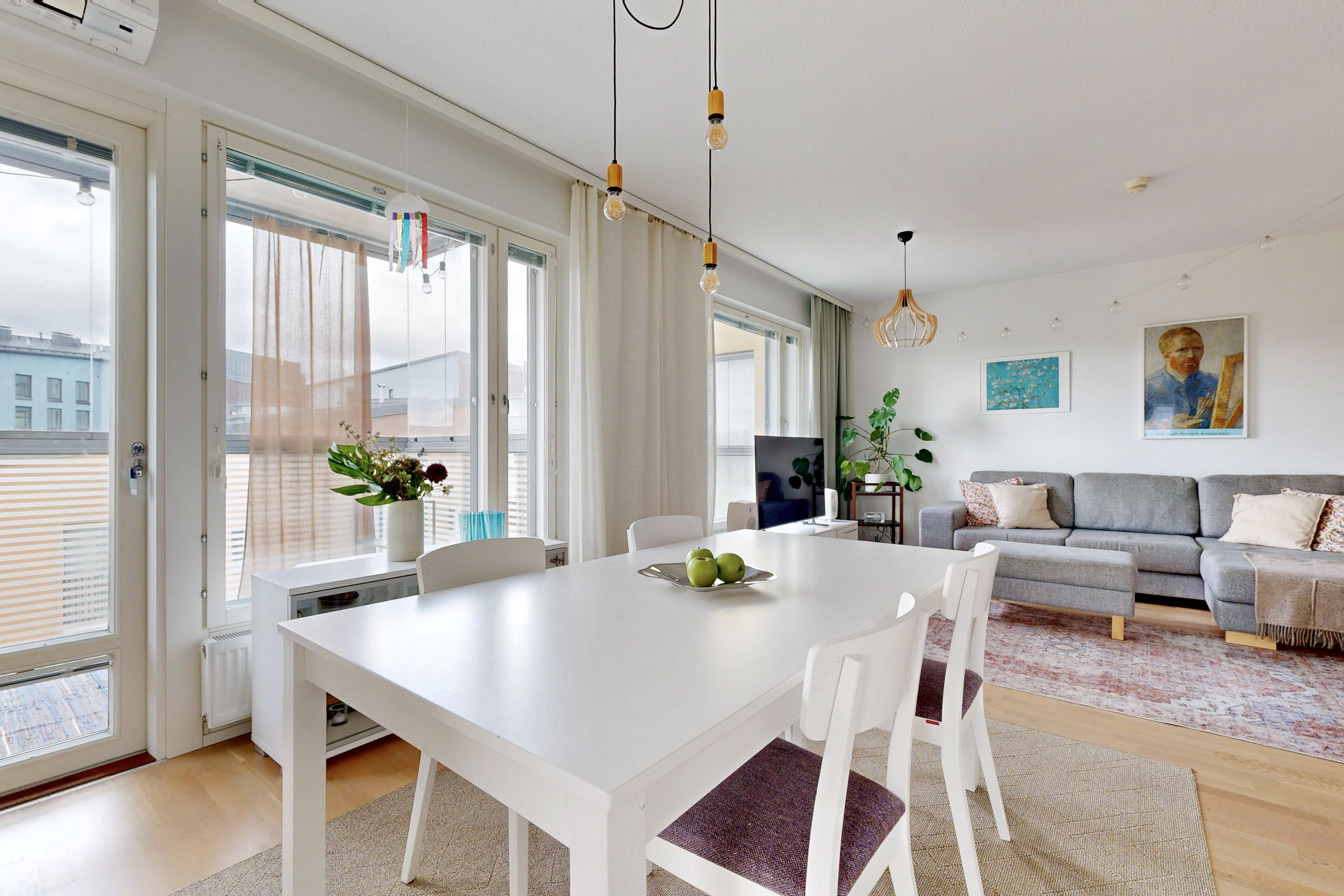 Tähän kotiin on helppo ihastua. Kulmahuoneisto, tilava ja toimiva pohjaratkaisu. Olohuone ja keittiö muodostavat yhtenäisen tilan, jossa on mukava viettää yhteistä aikaa. Olohuoneesta käynti myös lasitetulle parvekkeelle. Keittiössä on valkoiset kaapistot sekä hyvin säilytys-ja laskutilaa. Kolme makuuhuonetta. Kaikista makuuhuoneissa löytyy kaapistot. Eteisen vierestä löytyy erillinen wc, lisäksi kodissa on tilava kylpyhuone saunalla.