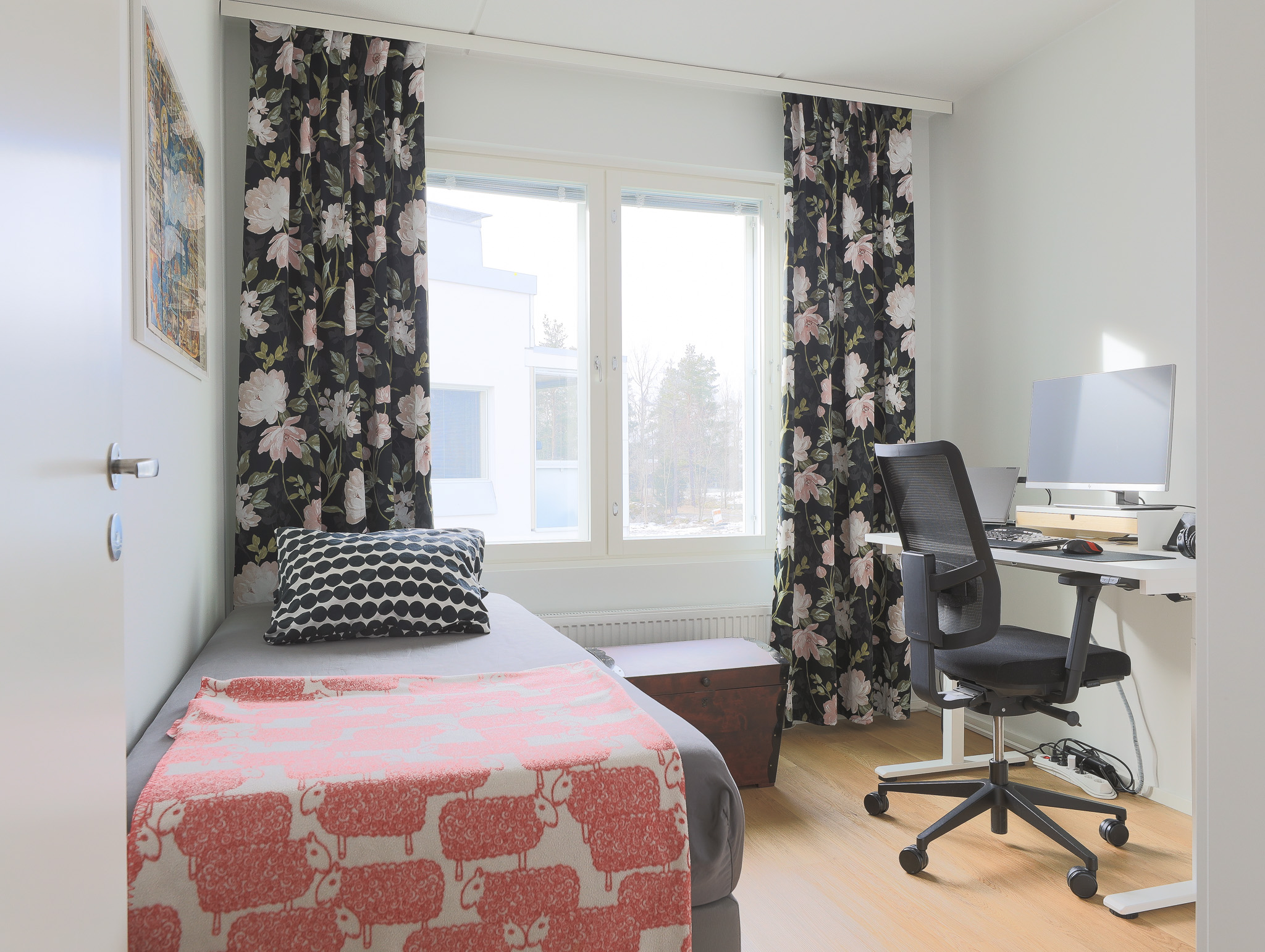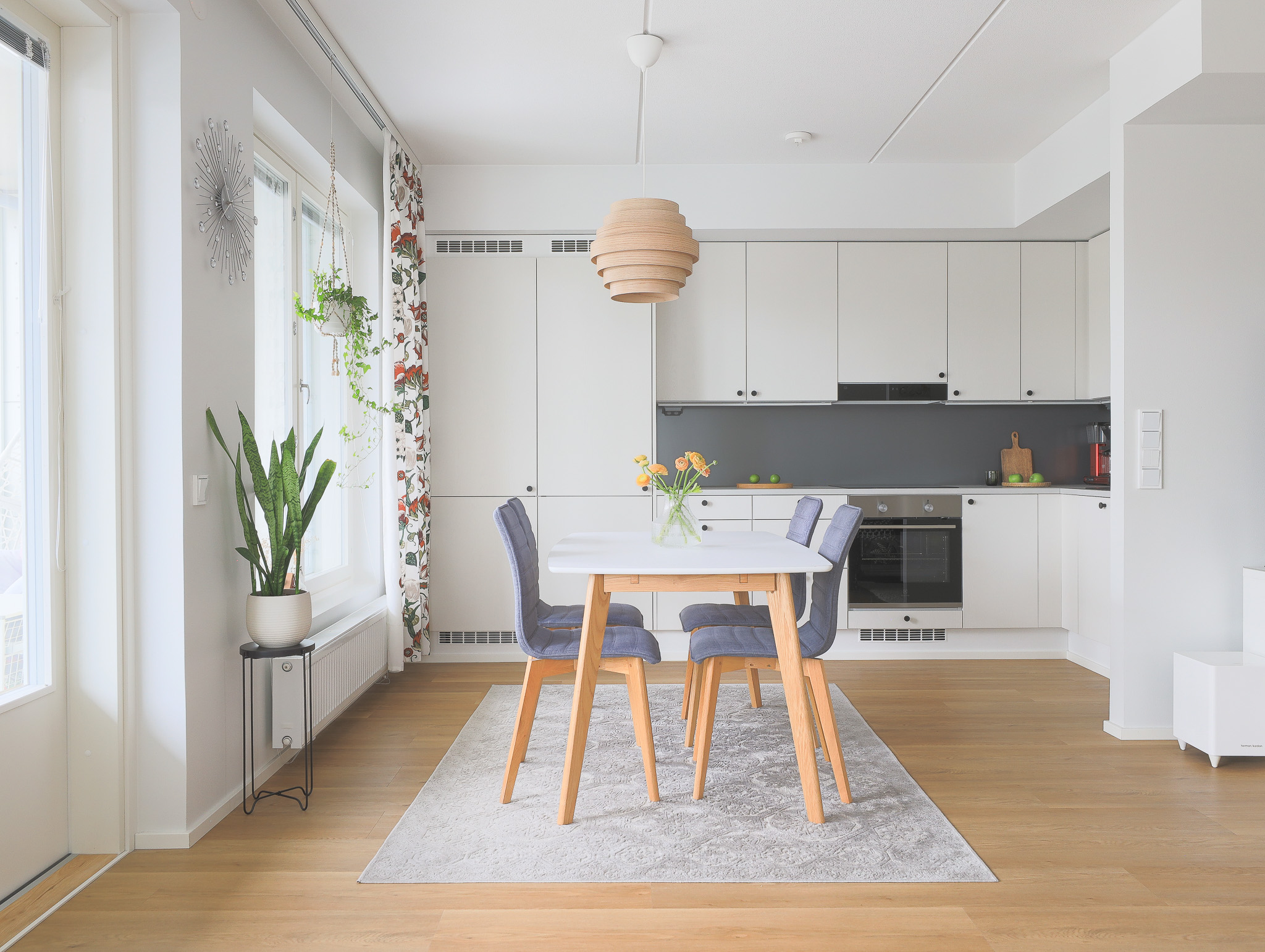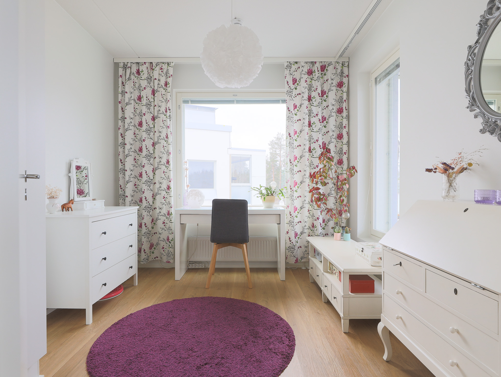 Kodin keskipisteenä toimii olohuone-keittiöyhdistelmä, jossa on mukava viettää aikaa niin perheen kuin ystävien kanssa. Olohuoneesta on käynti isolle lasitetulle parvekkeelle, josta näkymät sisäpihalle ja Orapihlajapuistoon. Keittiössä hyvin säilytys-ja laskutilaa. Kolme makuuhuonetta avarilla näkymillä. Kaikista makuuhuoneissa löytyy kaapistot. Eteisen vierestä löytyy erillinen wc ja tilava kylpyhuone.