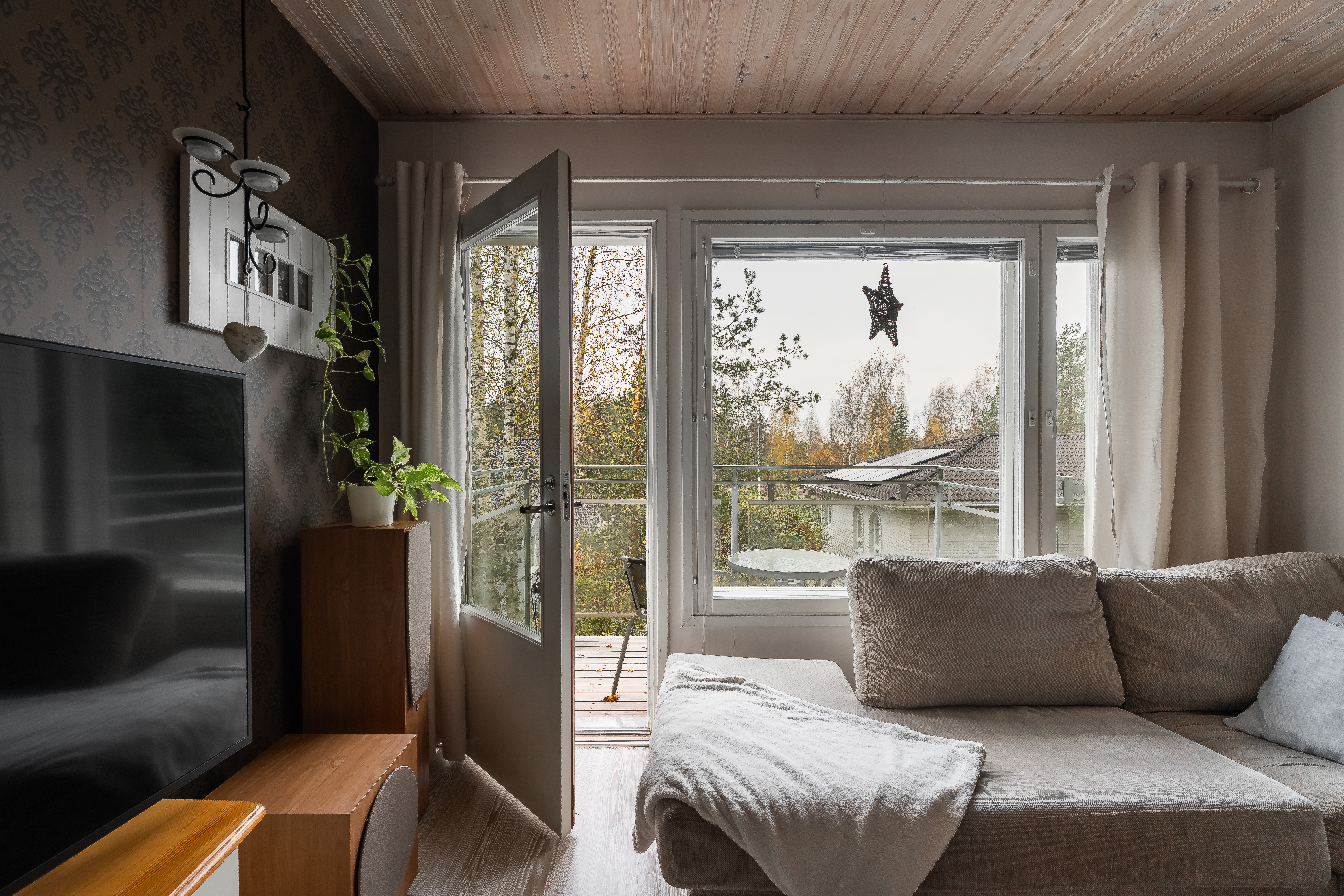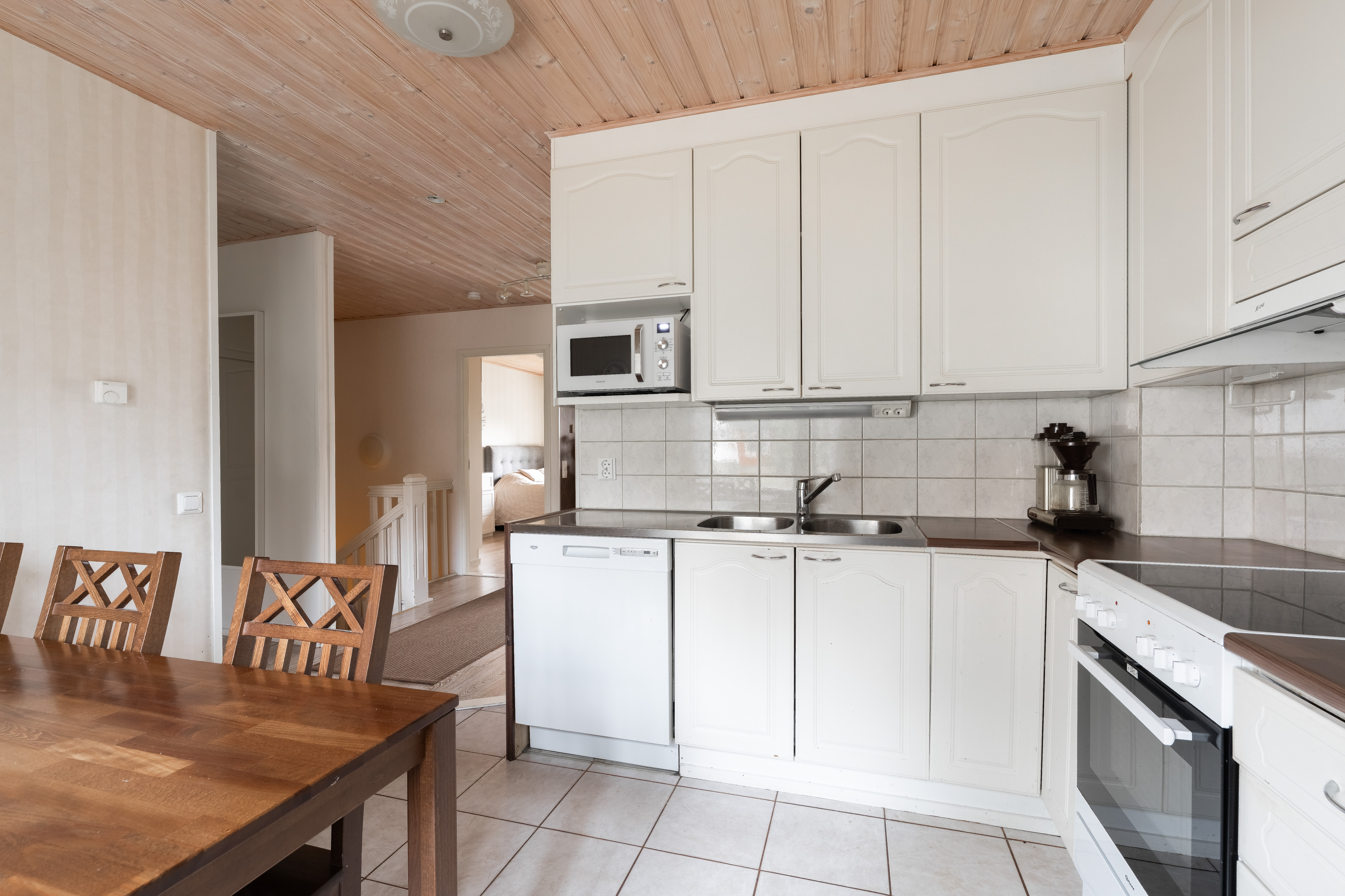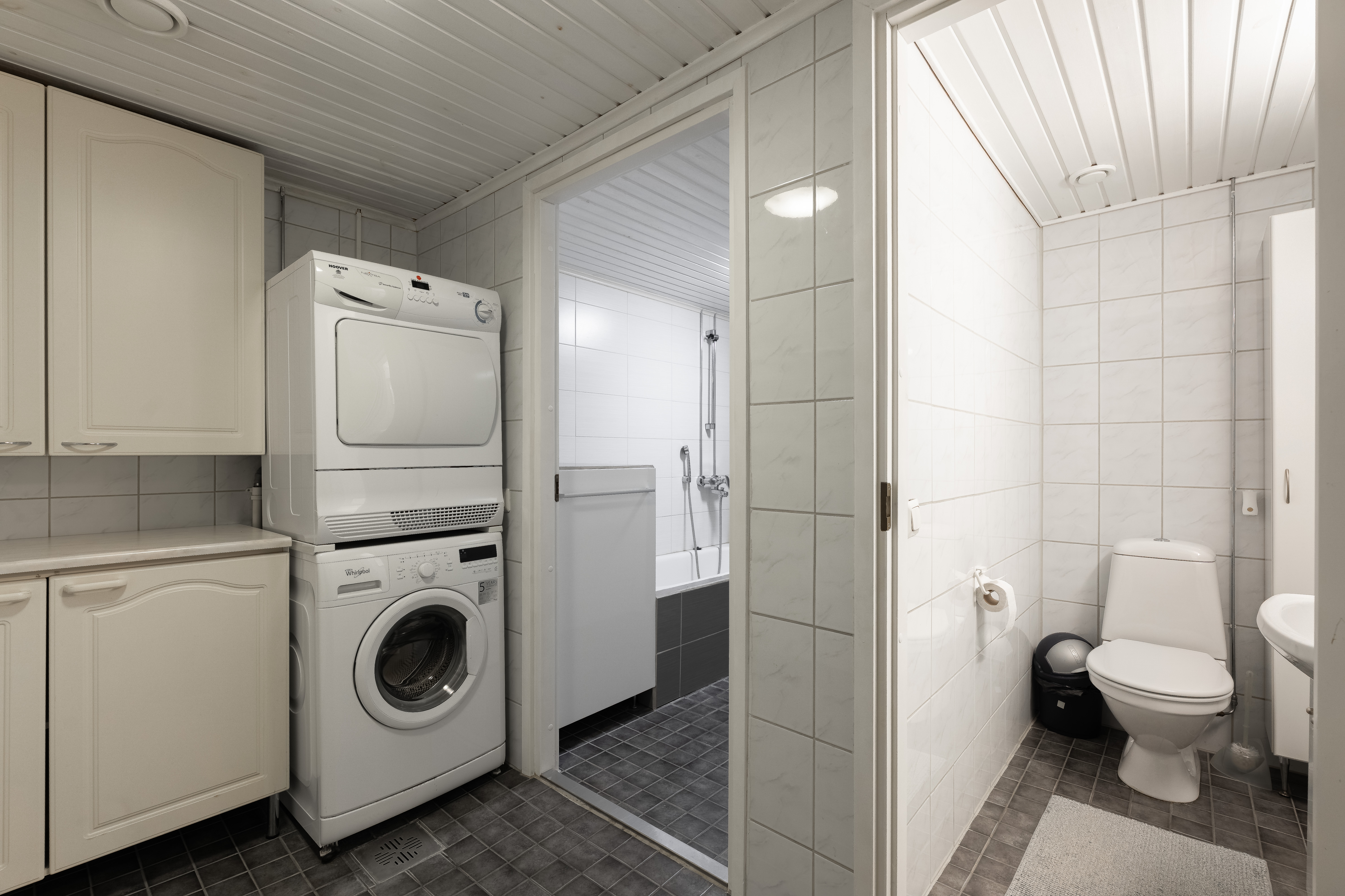 Asunnon olohuoneesta pääsee parvekkeelle, josta avautuu näkymä takapihalle. Keittiössä on kaikki tarvittavat varusteet, kuten jääkaappi-pakastin ja astianpesukone. Kylpyhuone ja sauna on remontoitu vuonna 2007, ja ne tarjoavat rentouttavan paikan arjen kiireiden keskellä vaikka ammeessa loikoillen. Kaksi erillistä wc:tä tuovat käytännöllisyyttä arkeen. Kodinhoitohuone on alakerrassa ja lisää entisestään asumisen helppoutta.