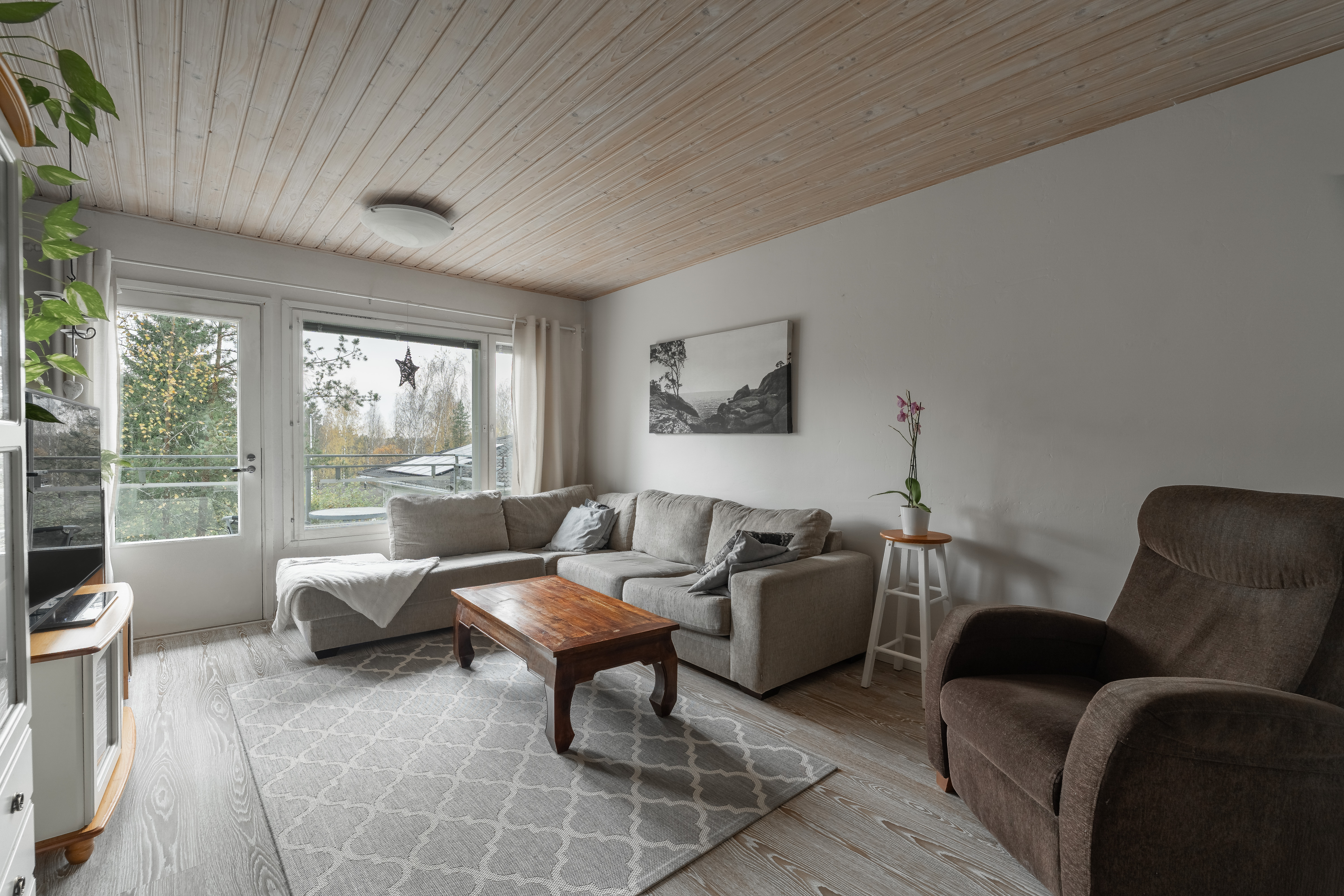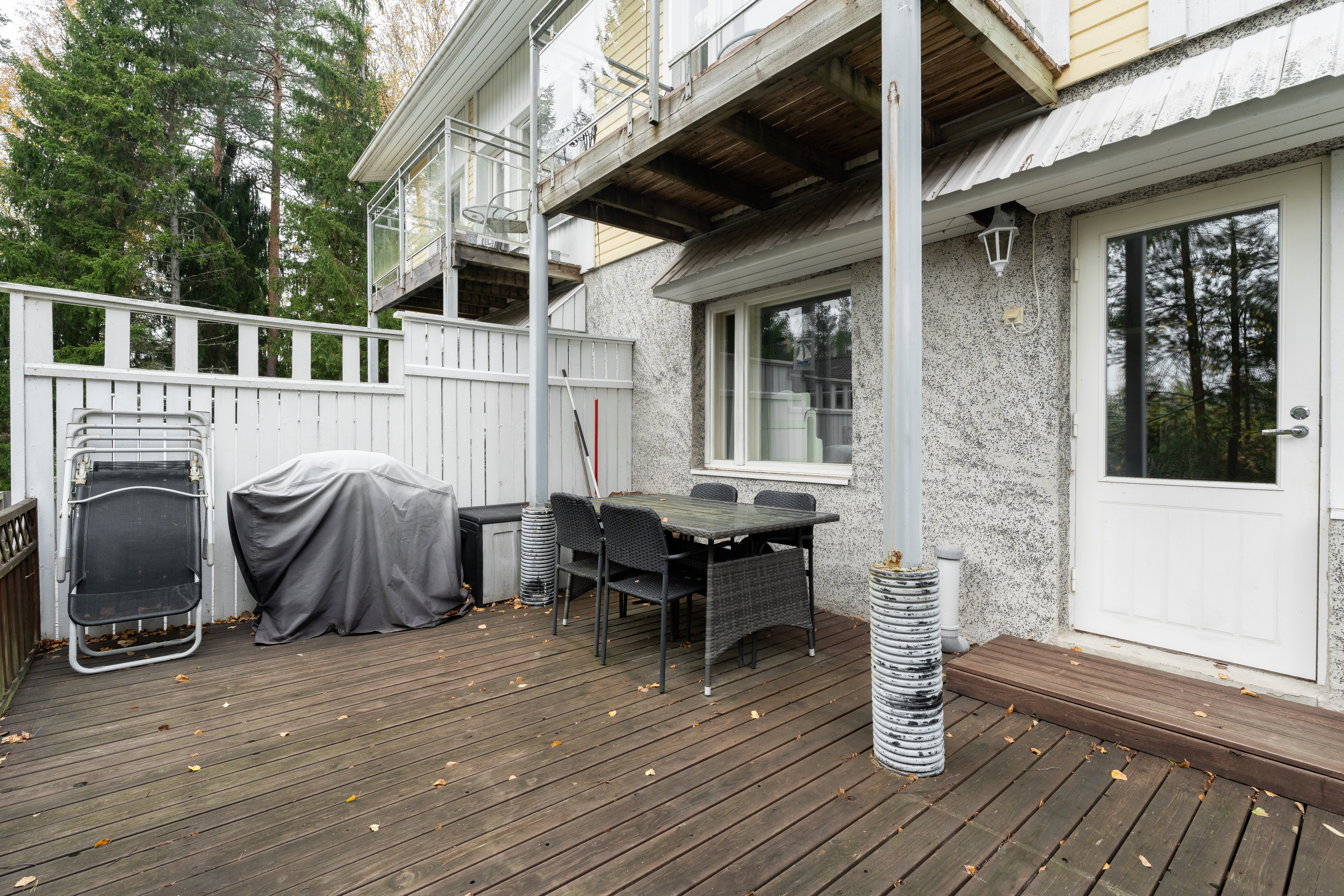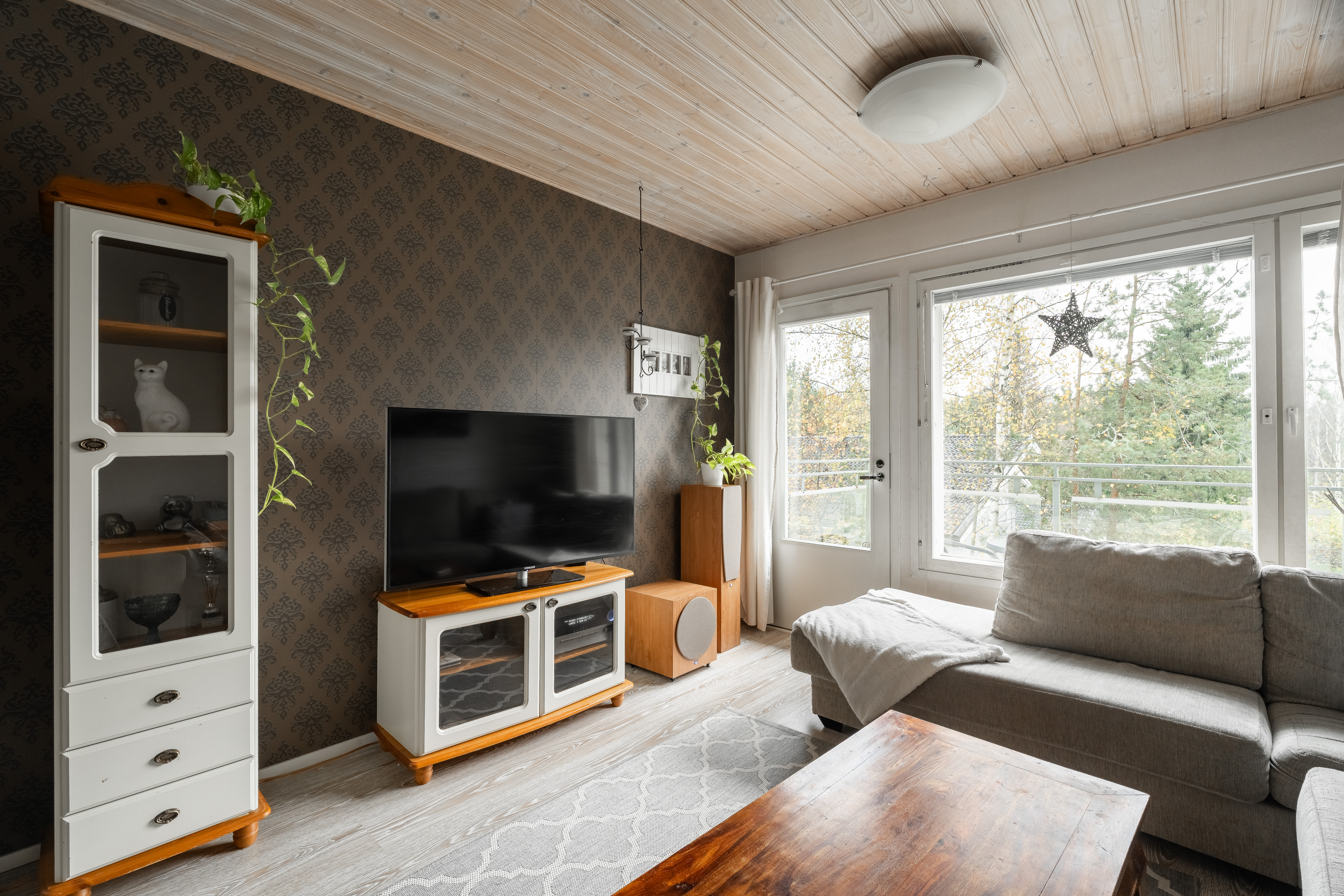 Asunnon olohuoneesta pääsee parvekkeelle, josta avautuu näkymä takapihalle. Keittiössä on kaikki tarvittavat varusteet, kuten jääkaappi-pakastin ja astianpesukone. Kylpyhuone ja sauna on remontoitu vuonna 2007, ja ne tarjoavat rentouttavan paikan arjen kiireiden keskellä vaikka ammeessa loikoillen. Kaksi erillistä wc:tä tuovat käytännöllisyyttä arkeen. Kodinhoitohuone on alakerrassa ja lisää entisestään asumisen helppoutta.