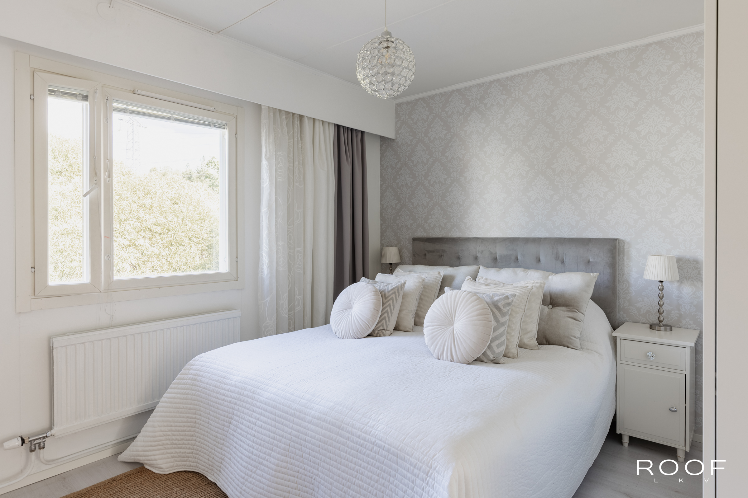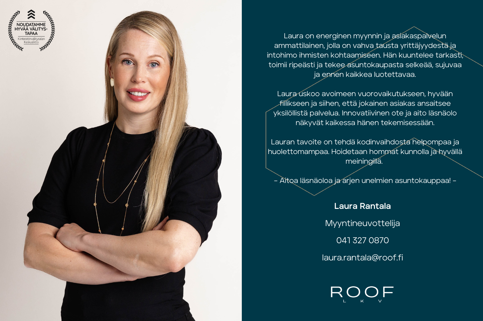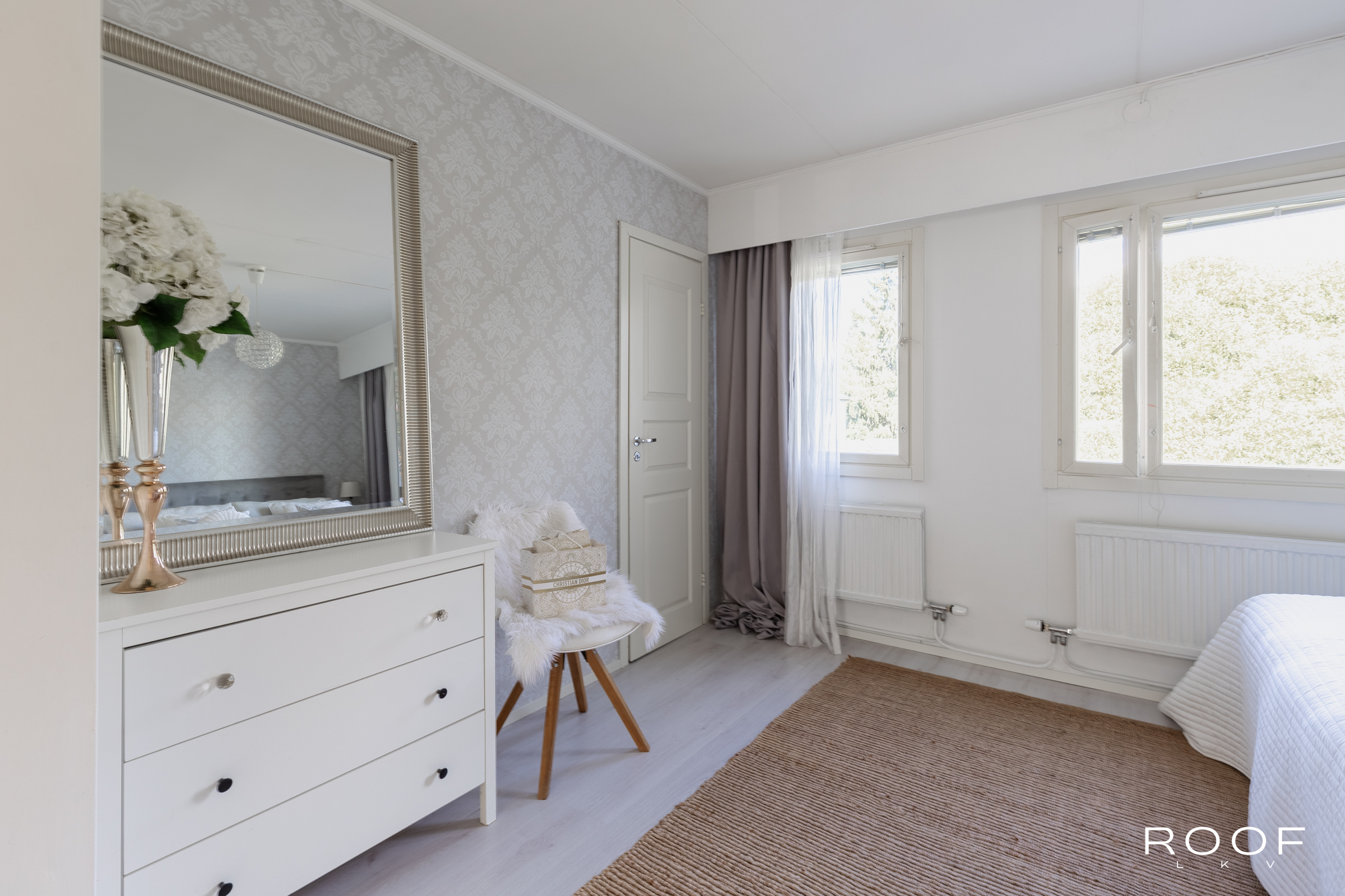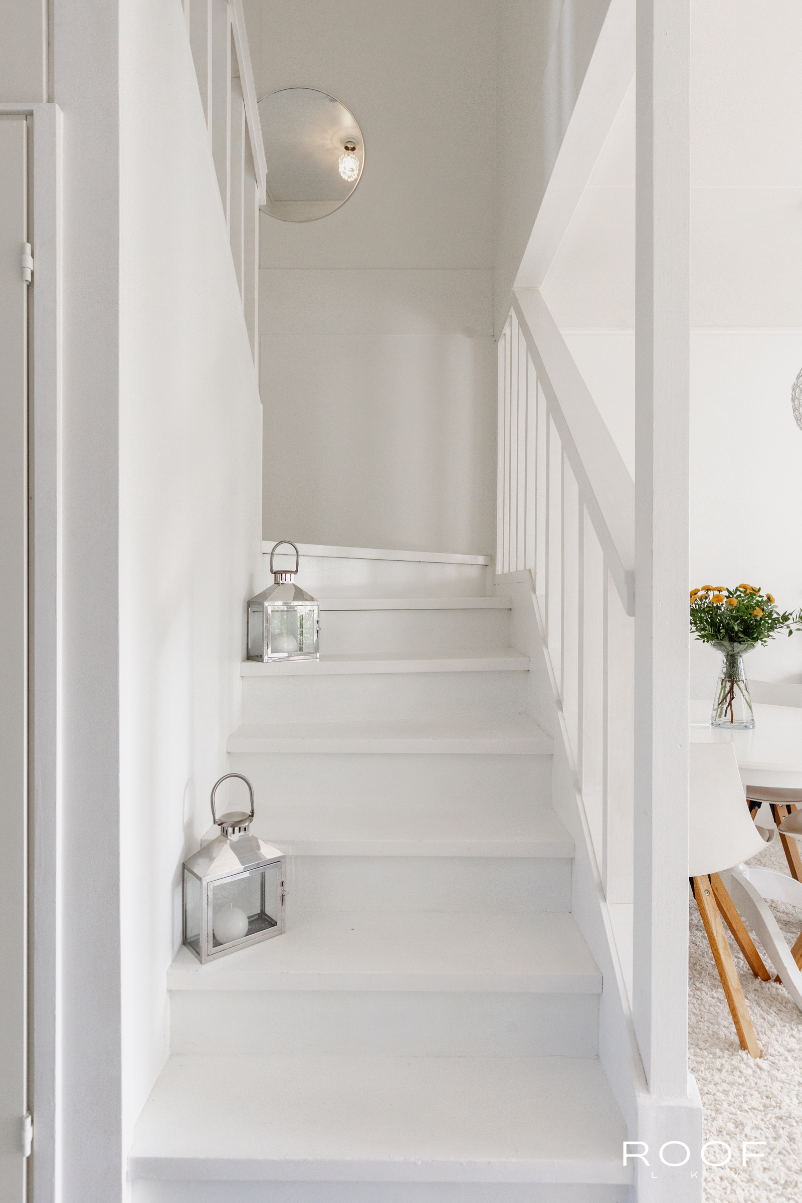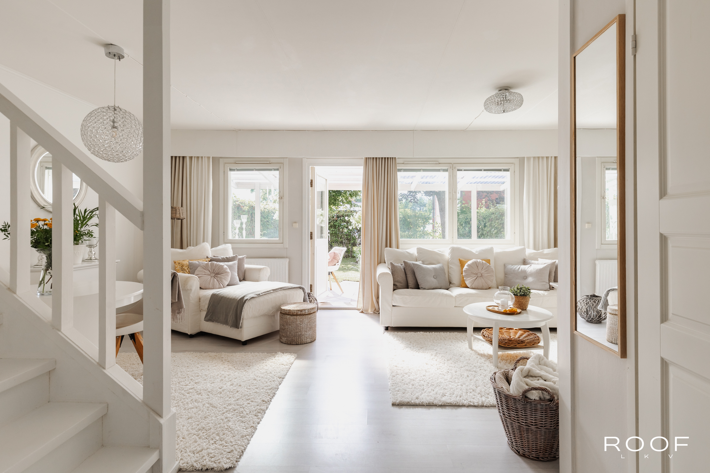 Tässä vaaleassa rivitalokodissa valo tulvii sisään suurista ikkunoista ja luo harmonisen, levollisen tunnelman. Tyylikkäästi remontoitu kokonaisuus on täynnä yksityiskohtia, jotka tekevät kodista persoonallisen ja viihtyisän. Olohuone jatkuu sujuvasti omalle pihalle ja katetulle terassille, jossa on helppo viettää pitkiä syysiltoja.