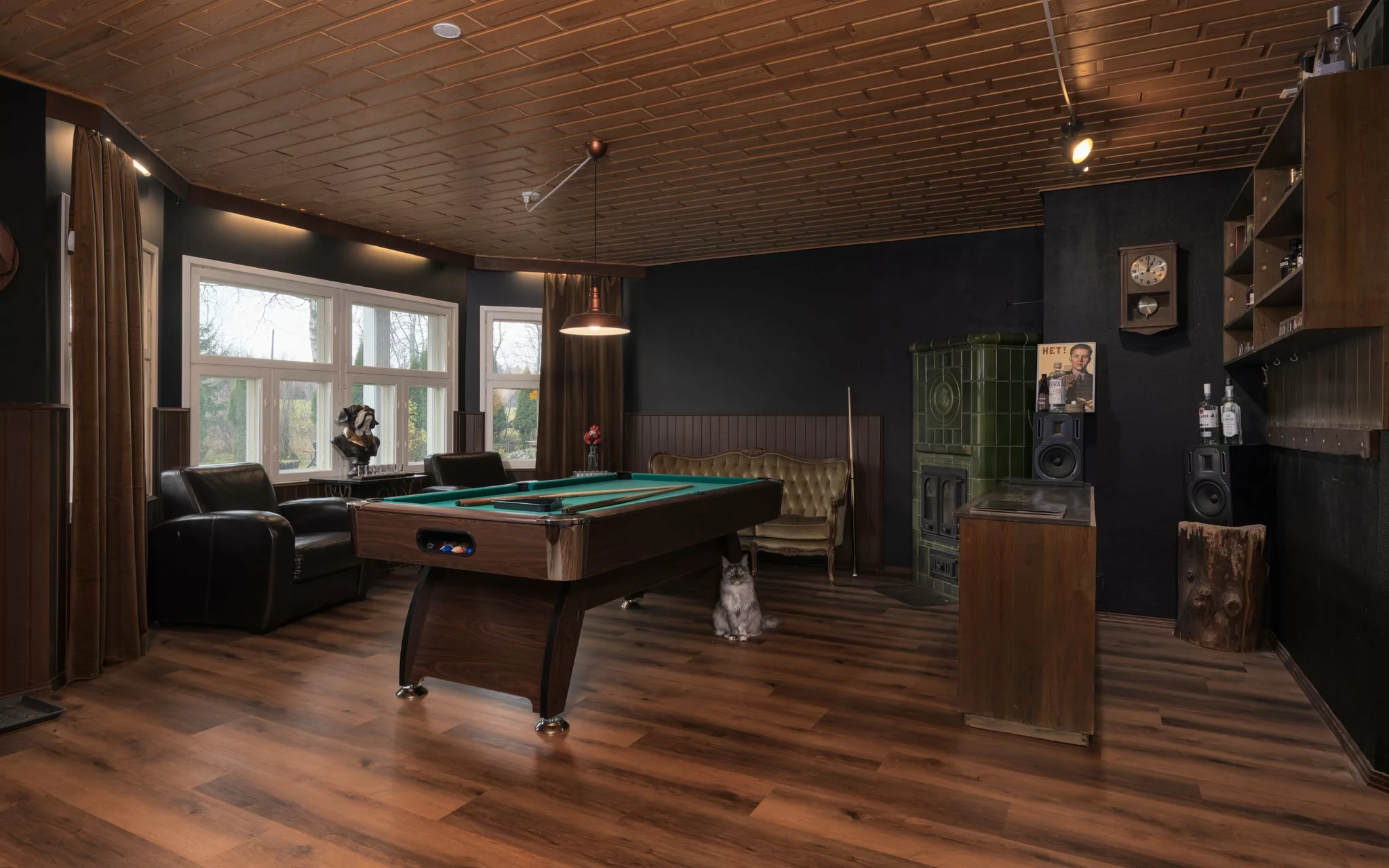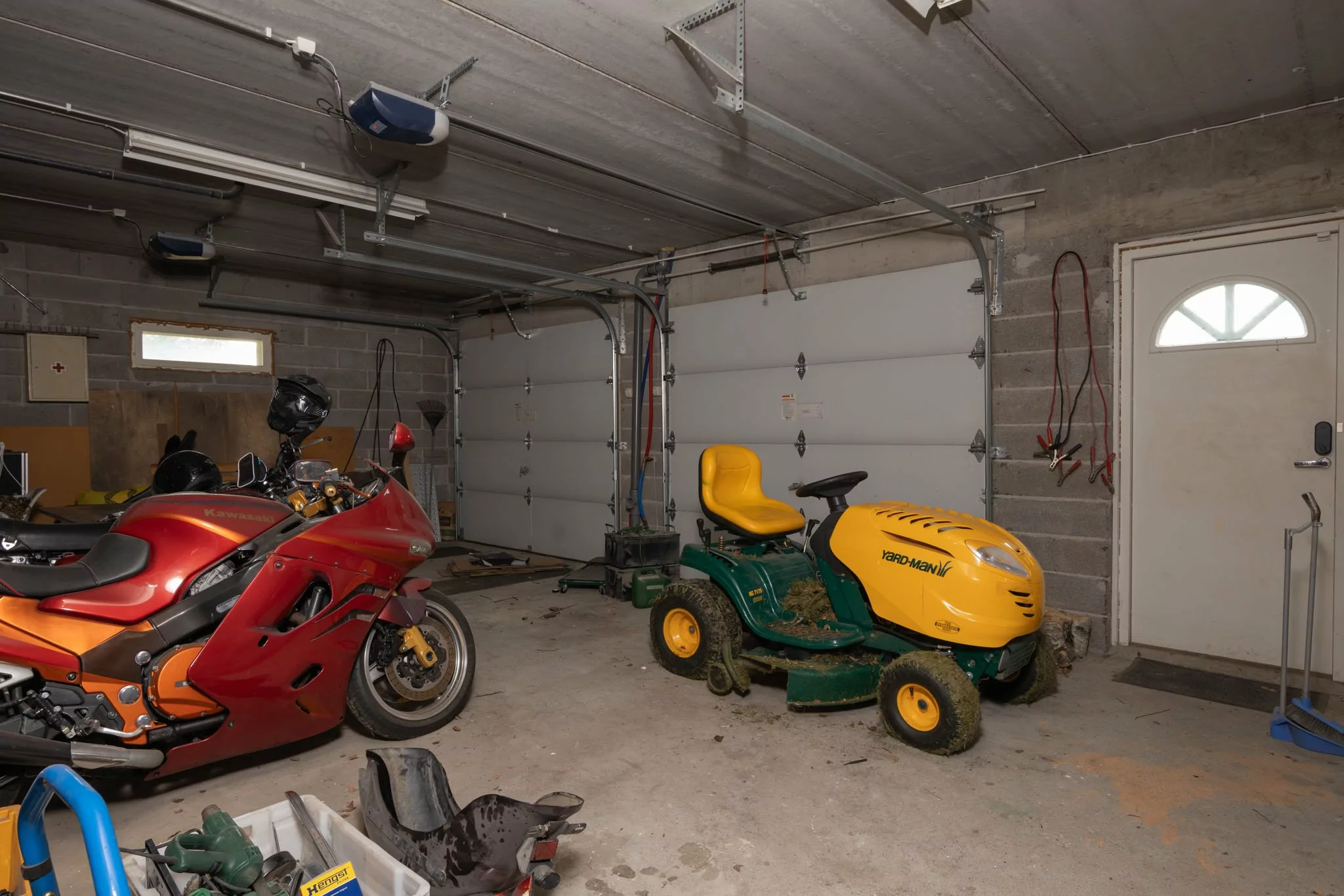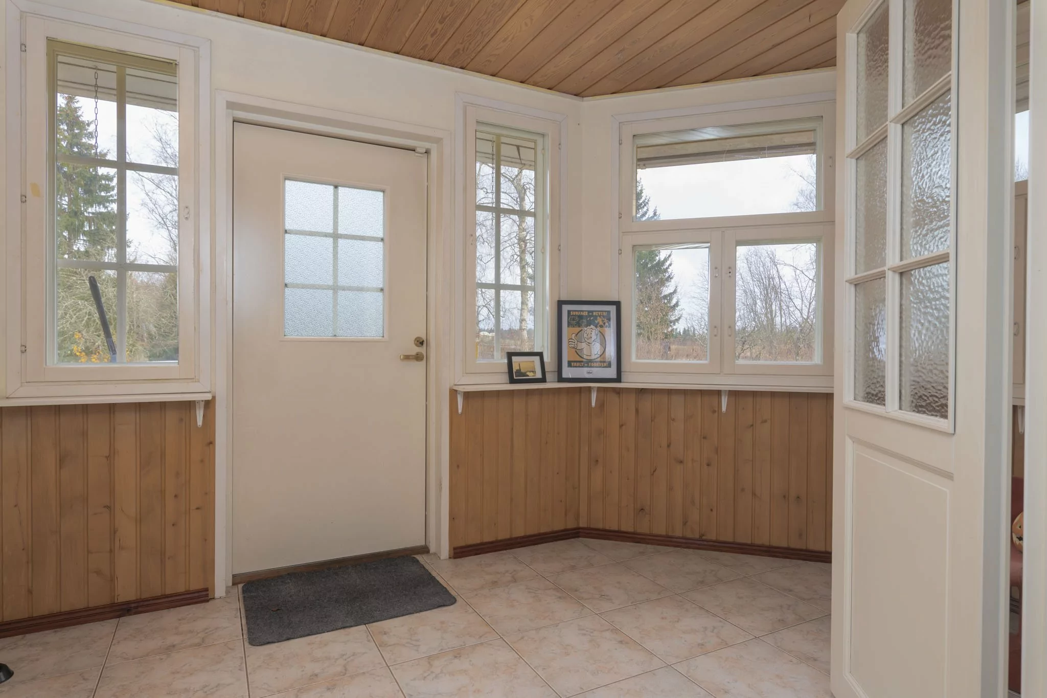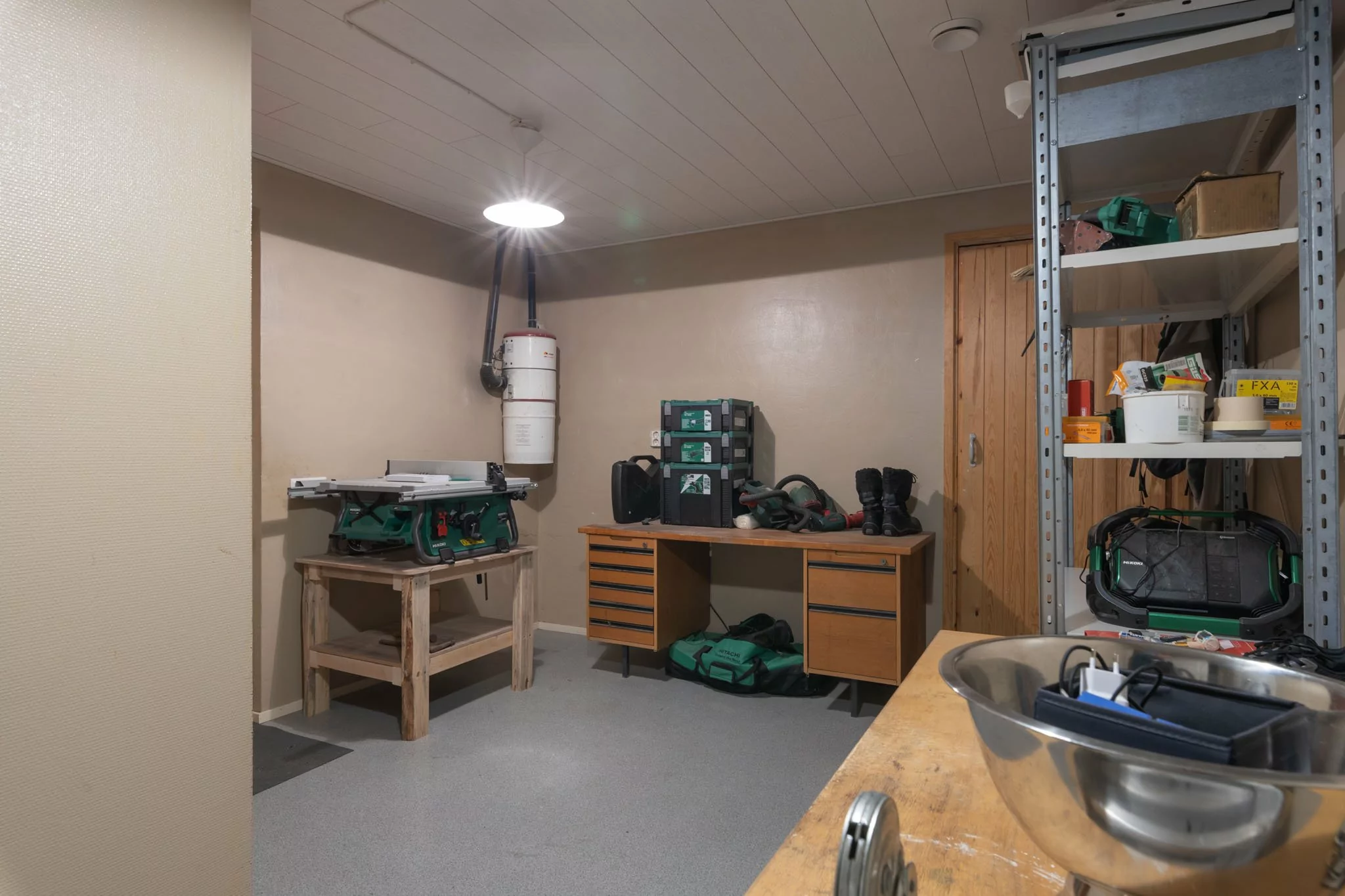 Alakerrasta löytyvät toinen olohuone, sähkösauna, suihku, wc, työhuone, josta on käynti autotalliin ja kylmäkellariin, sekä kaksi varastohuonetta - joista toisen voi halutessaan muuttaa helposti lisämakuuhuoneeksi.
