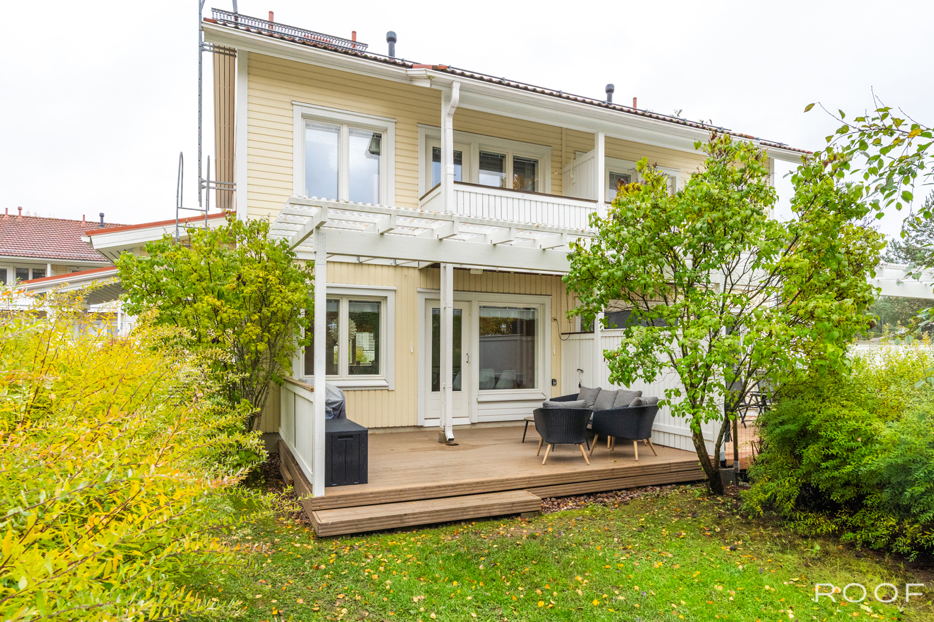 Vuonna 2005 valmistunut koti tarjoaa mukavat puitteet perheelle tai pariskunnalle, joka arvostaa isoa pihaa ja katettua terassia. Pihalla viihtyykin pitkälle syksyyn.