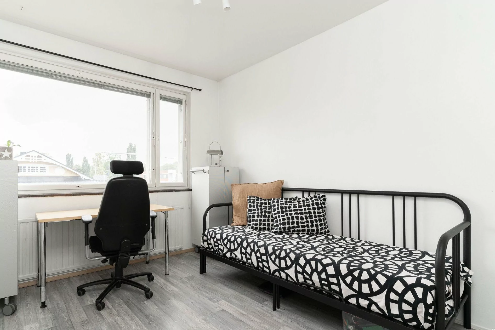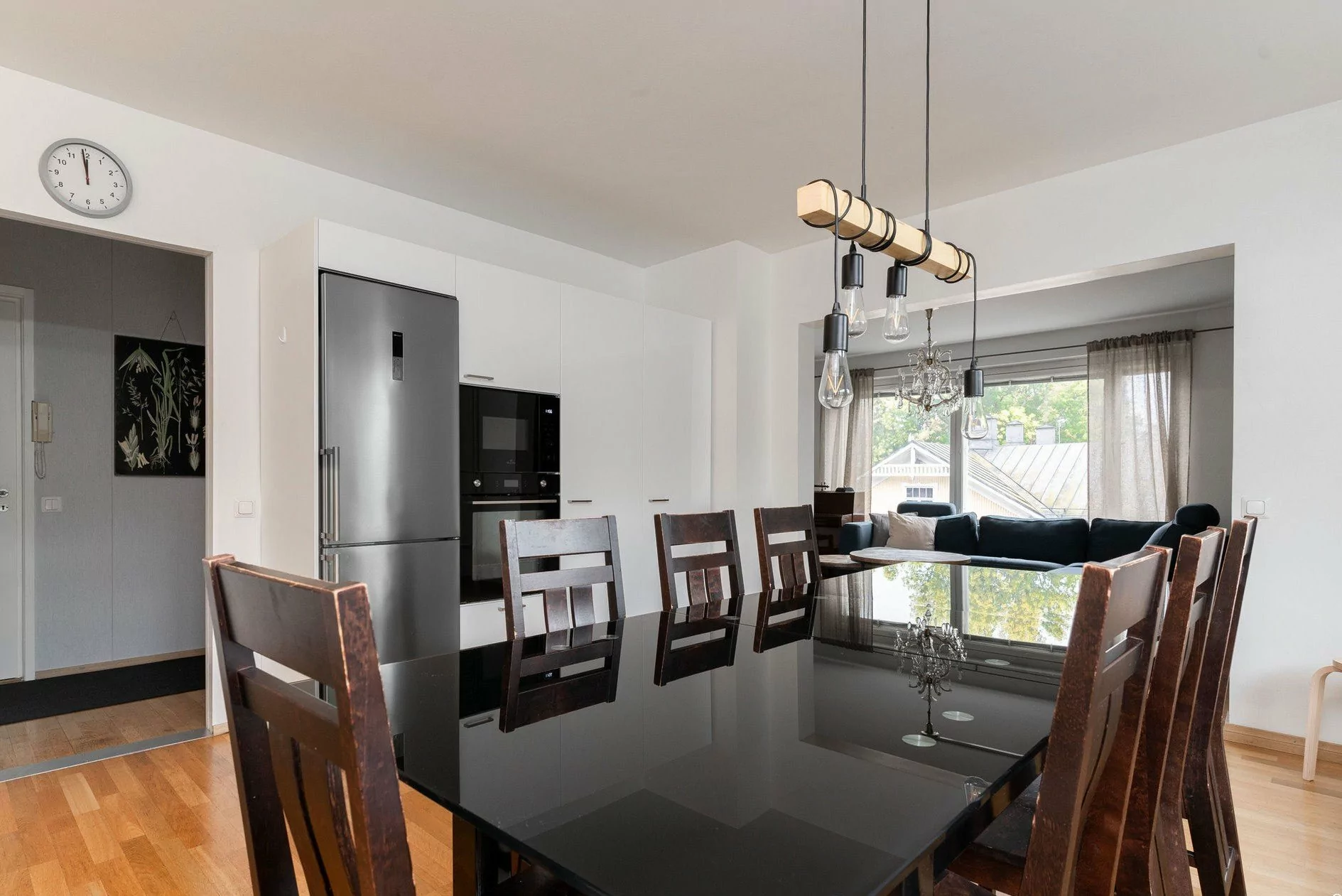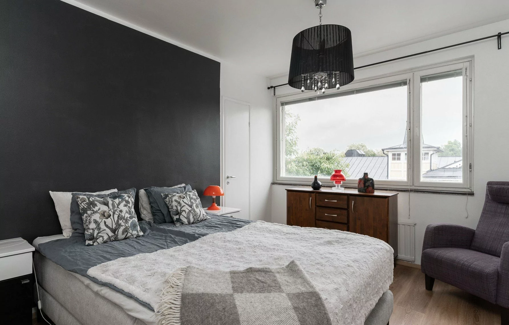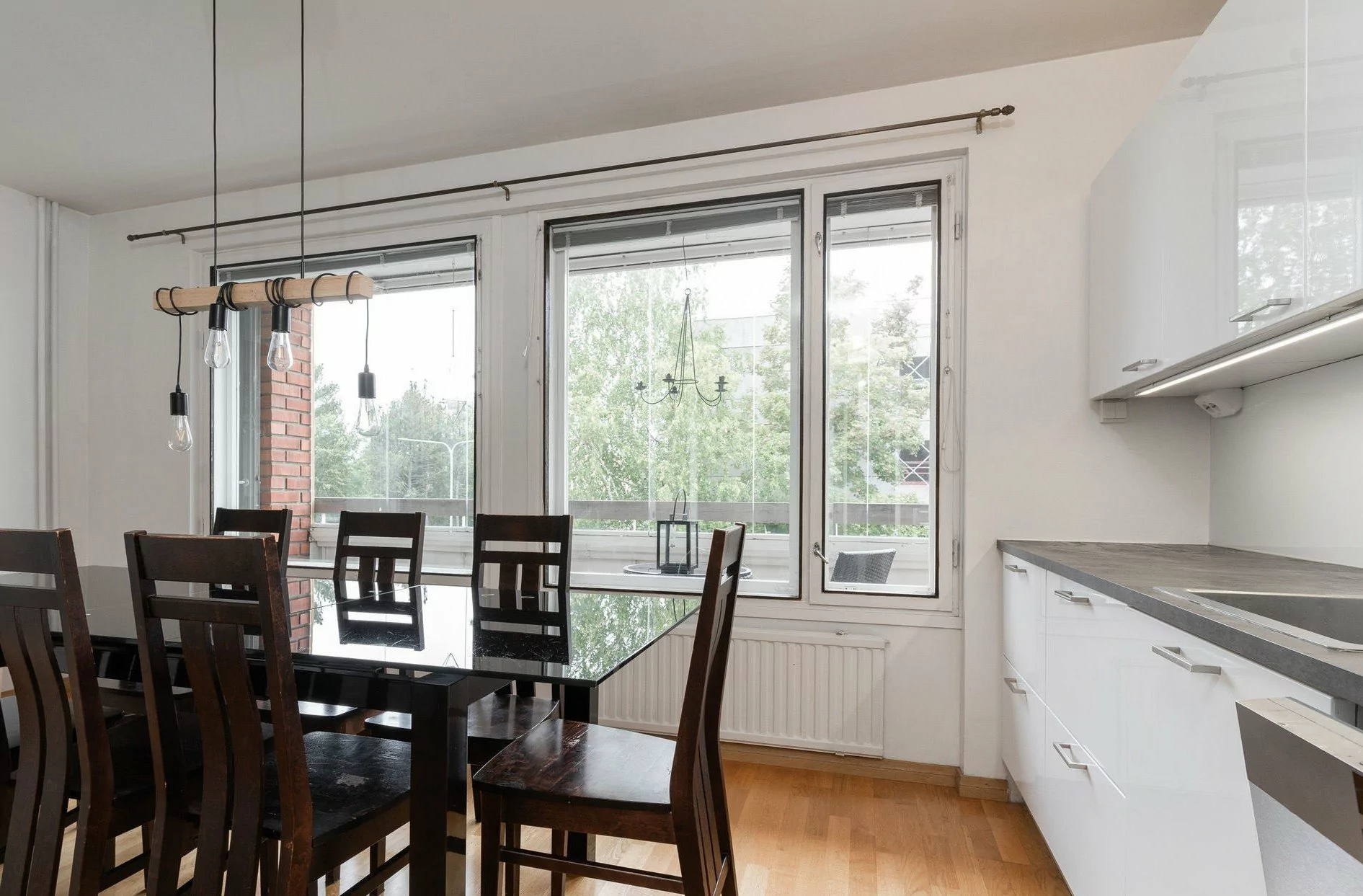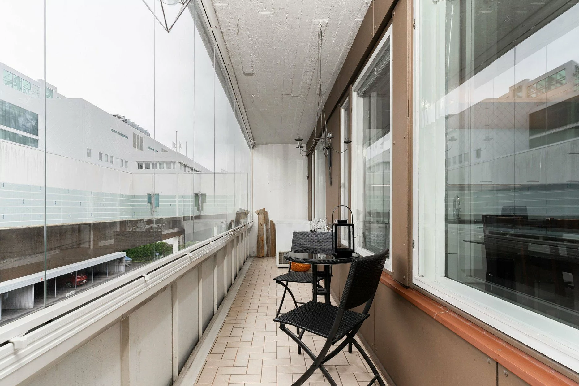 Päätyhuoneisto, jossa ikkunoita on kolmeen ilmansuuntaan ja seinänaapuri ainoastaan yhden makuuhuoneen seinän takana. Huoneisto käsittää kolme makuuhuonetta, keittiön joka on avoinna olohuoneeseen, kaksi vaatehuonetta, kaksi wc:tä ja tilavan lasitetun parvekkeen.