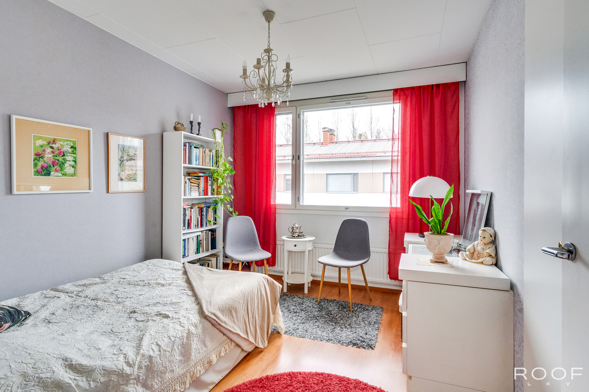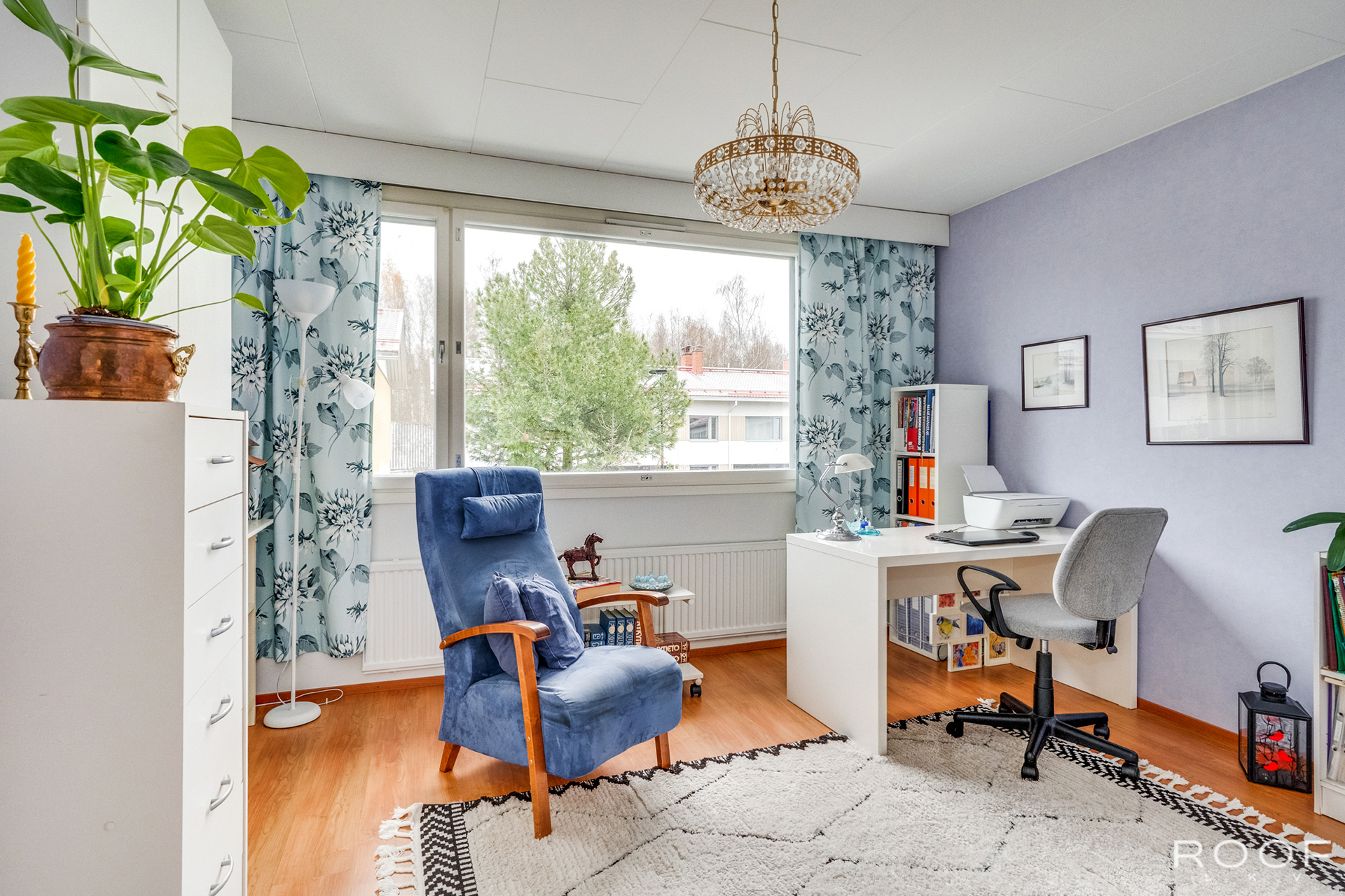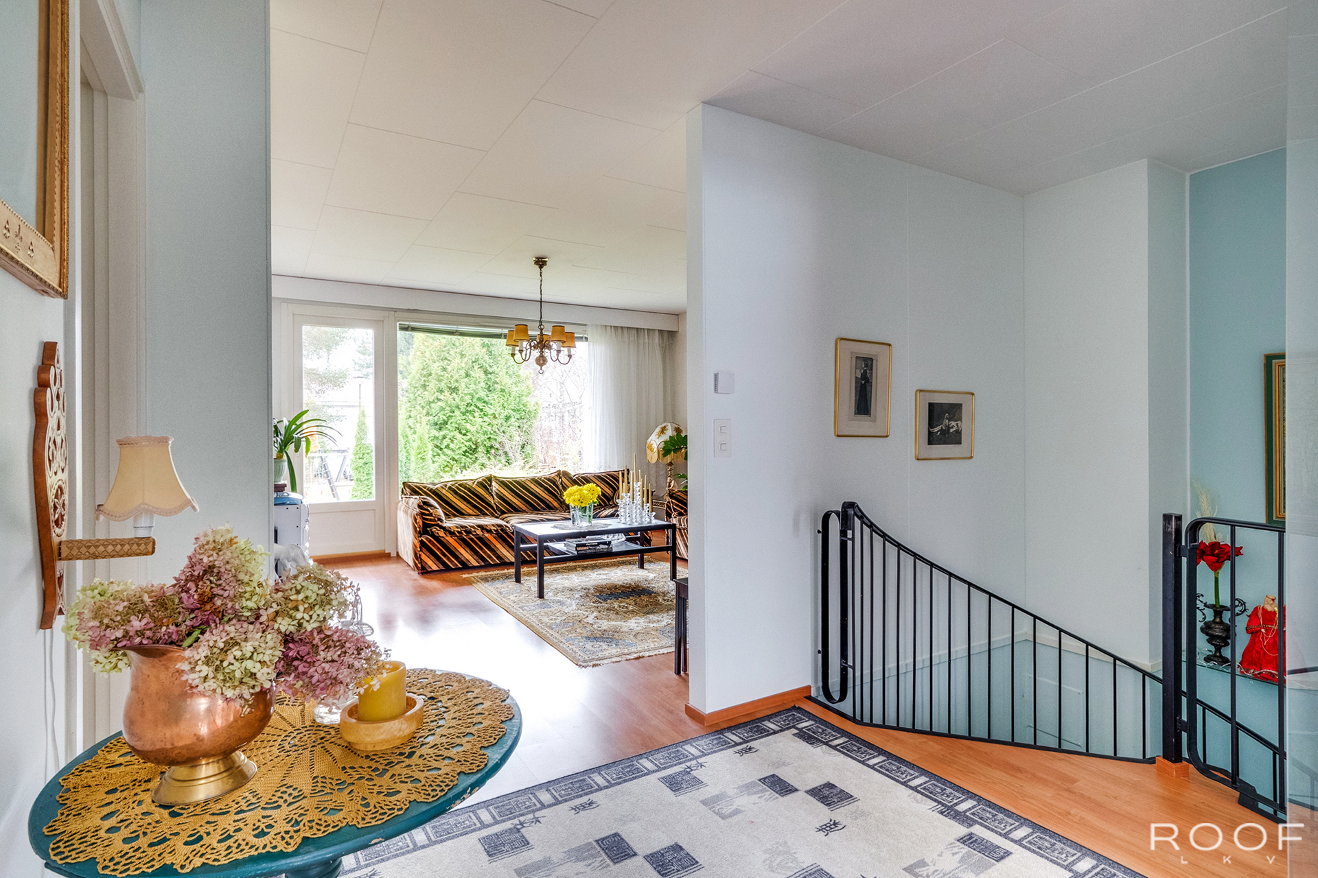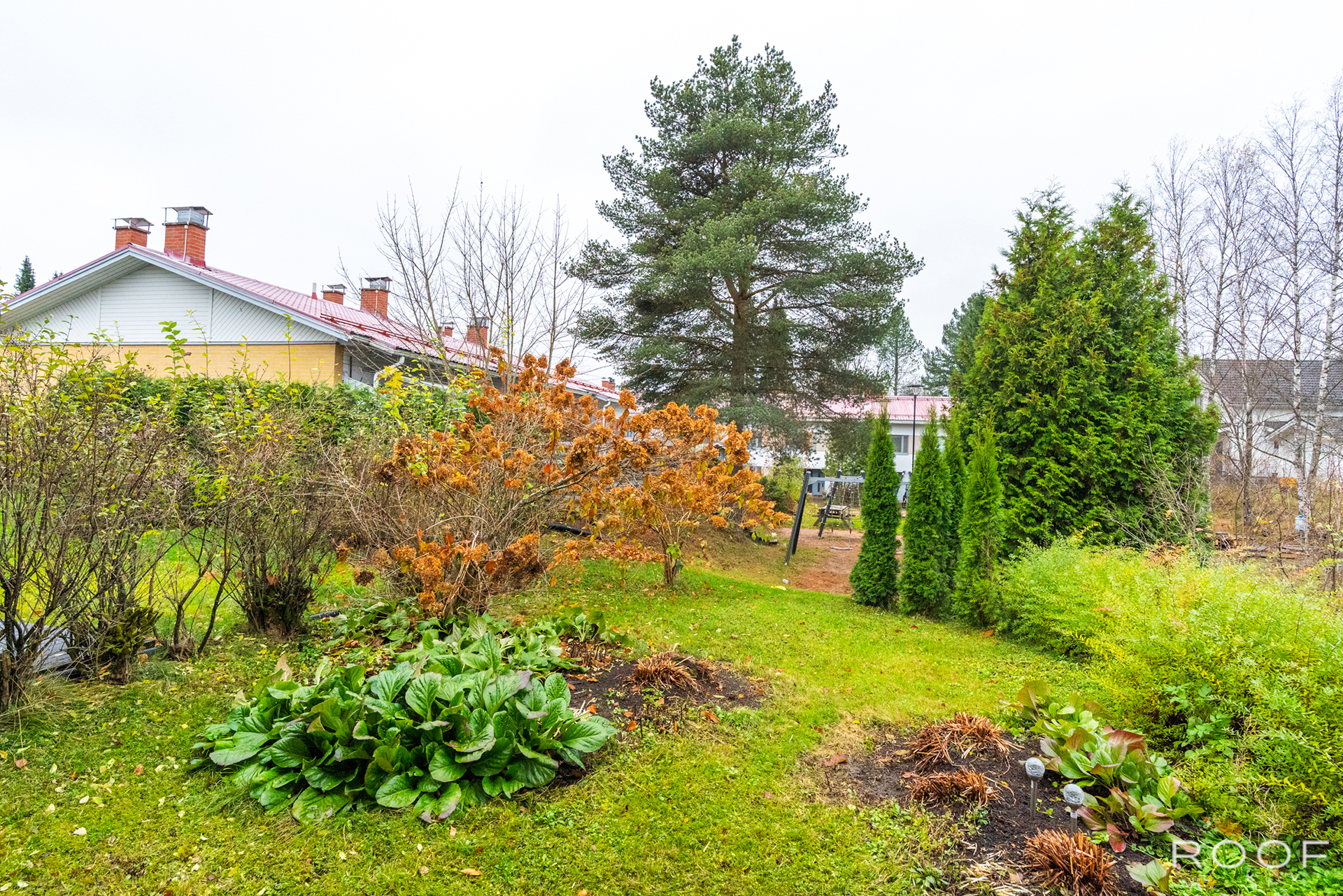 Asunto on käytännöllisesti kahdessa kerroksessa. Makuuhuone, kodinhoitotila ja pesutilat ovat alakerrassa. Molemmissa kerroksissa on erilliset wc:t. Yläkerrassa on avointa suurta tilaa yhdistäen olohuoneen, ruokailutilan ja keittiön. Olohuoneesta on kulku asunnon etelään avautuvalle valoisalle, viihtyisälle ja suojaisalle omalle pihalle, jossa nurmikkoa ja monipuoliset istutukset. Lapset pääsevät omalta pihaltaan suoraan taloyhtiön viihtyisälle leikkipaikalle. Voi sanoa, että tämä on taloyhtiön parhaita pihoja.