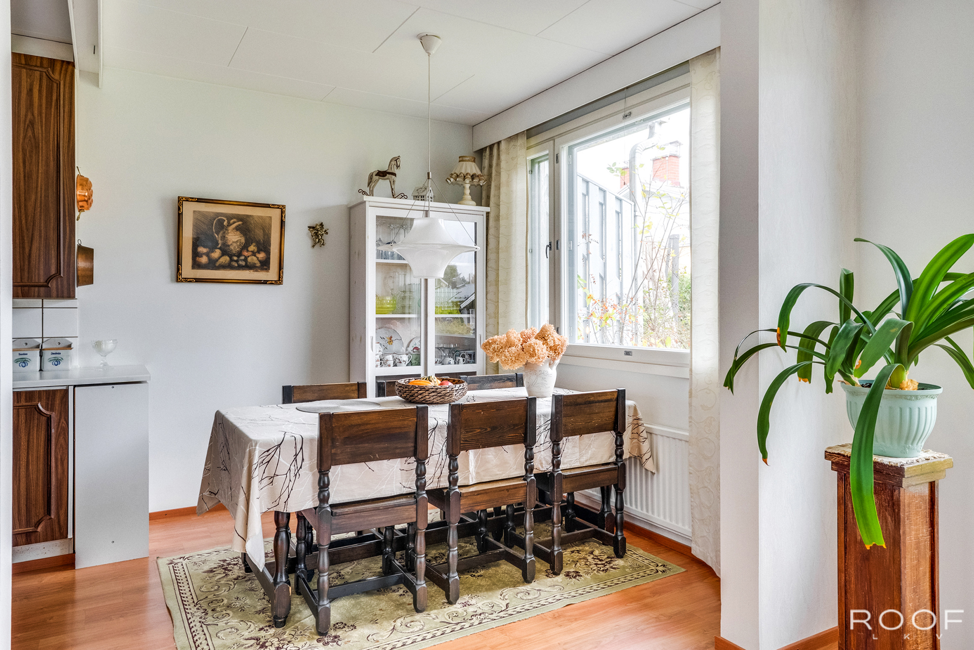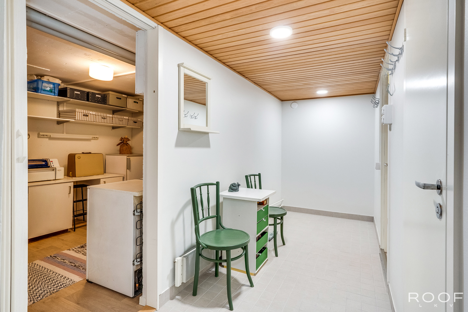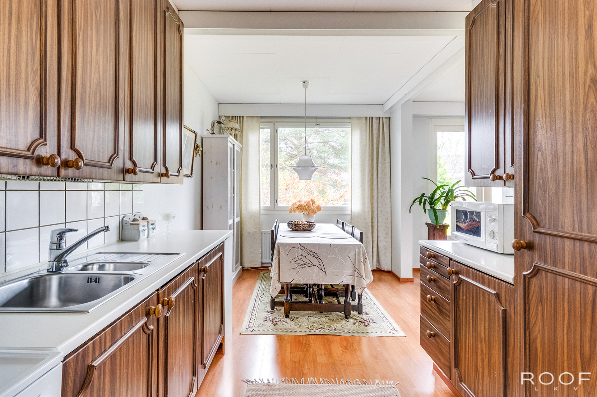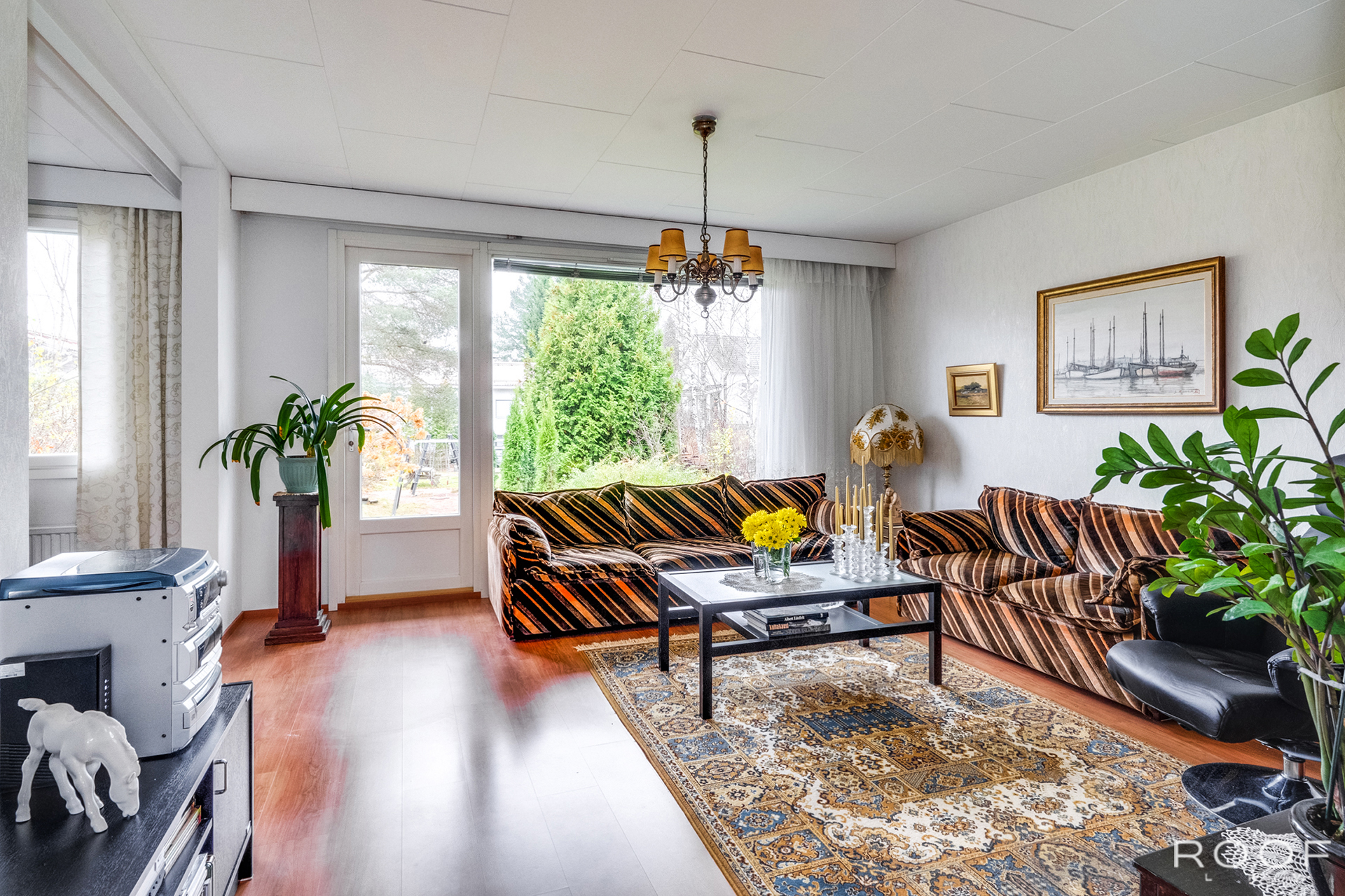 Asunto on käytännöllisesti kahdessa kerroksessa. Makuuhuone, kodinhoitotila ja pesutilat ovat alakerrassa. Molemmissa kerroksissa on erilliset wc:t. Yläkerrassa on avointa suurta tilaa yhdistäen olohuoneen, ruokailutilan ja keittiön. Olohuoneesta on kulku asunnon etelään avautuvalle valoisalle, viihtyisälle ja suojaisalle omalle pihalle, jossa nurmikkoa ja monipuoliset istutukset. Lapset pääsevät omalta pihaltaan suoraan taloyhtiön viihtyisälle leikkipaikalle. Voi sanoa, että tämä on taloyhtiön parhaita pihoja.