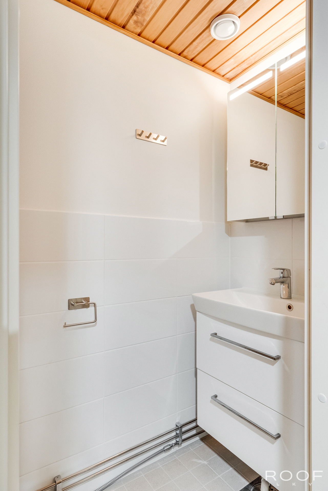 Huoneiston kylpyhuone, sauna, pukuhuone, erillinen wc alakerrassa uusittu taloyhtiön toimesta. Yläkerran wc- kalusteet uusittu taloyhtiön toimesta. Kodinhoitohuone/varasto maalattu.