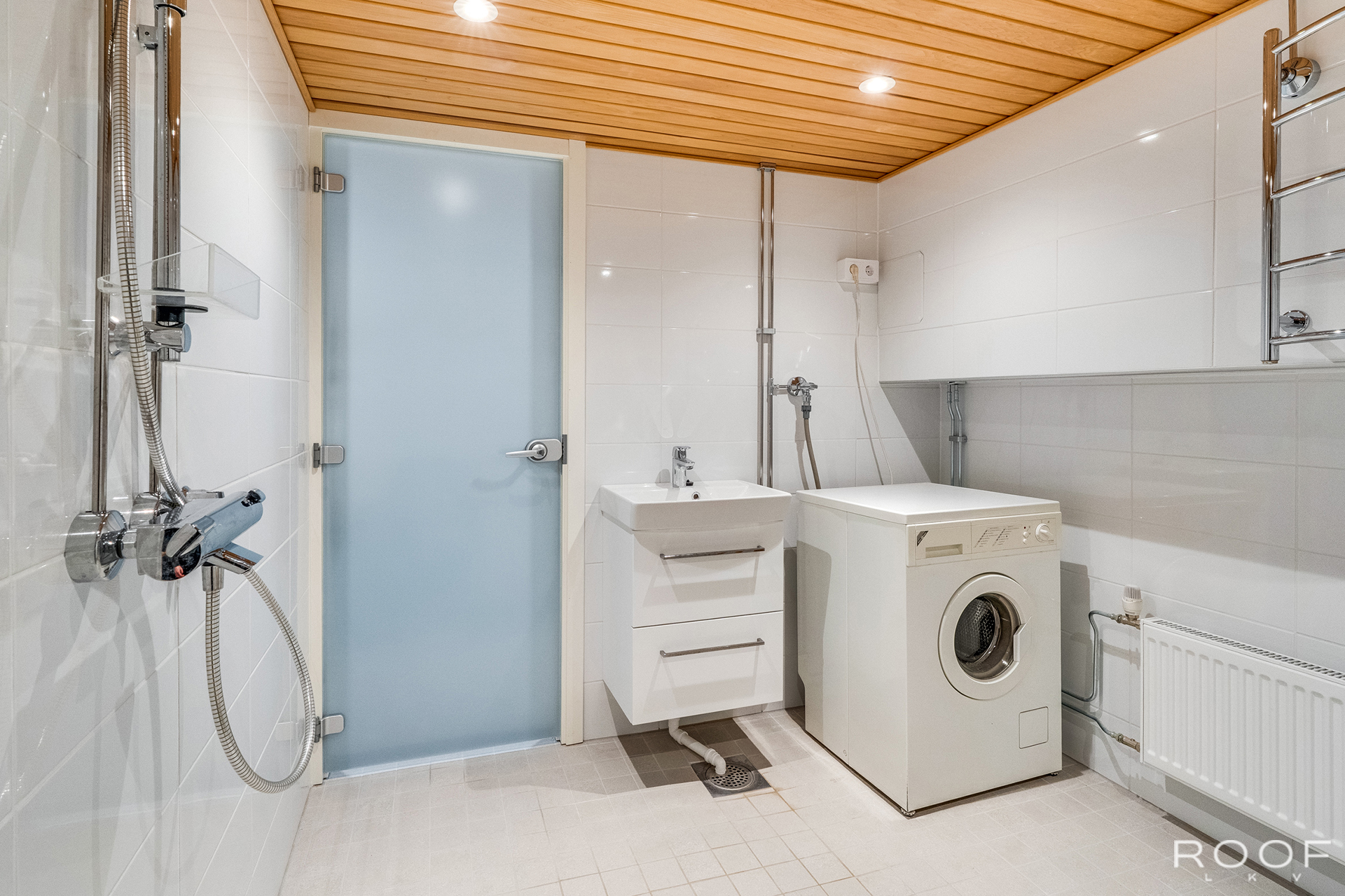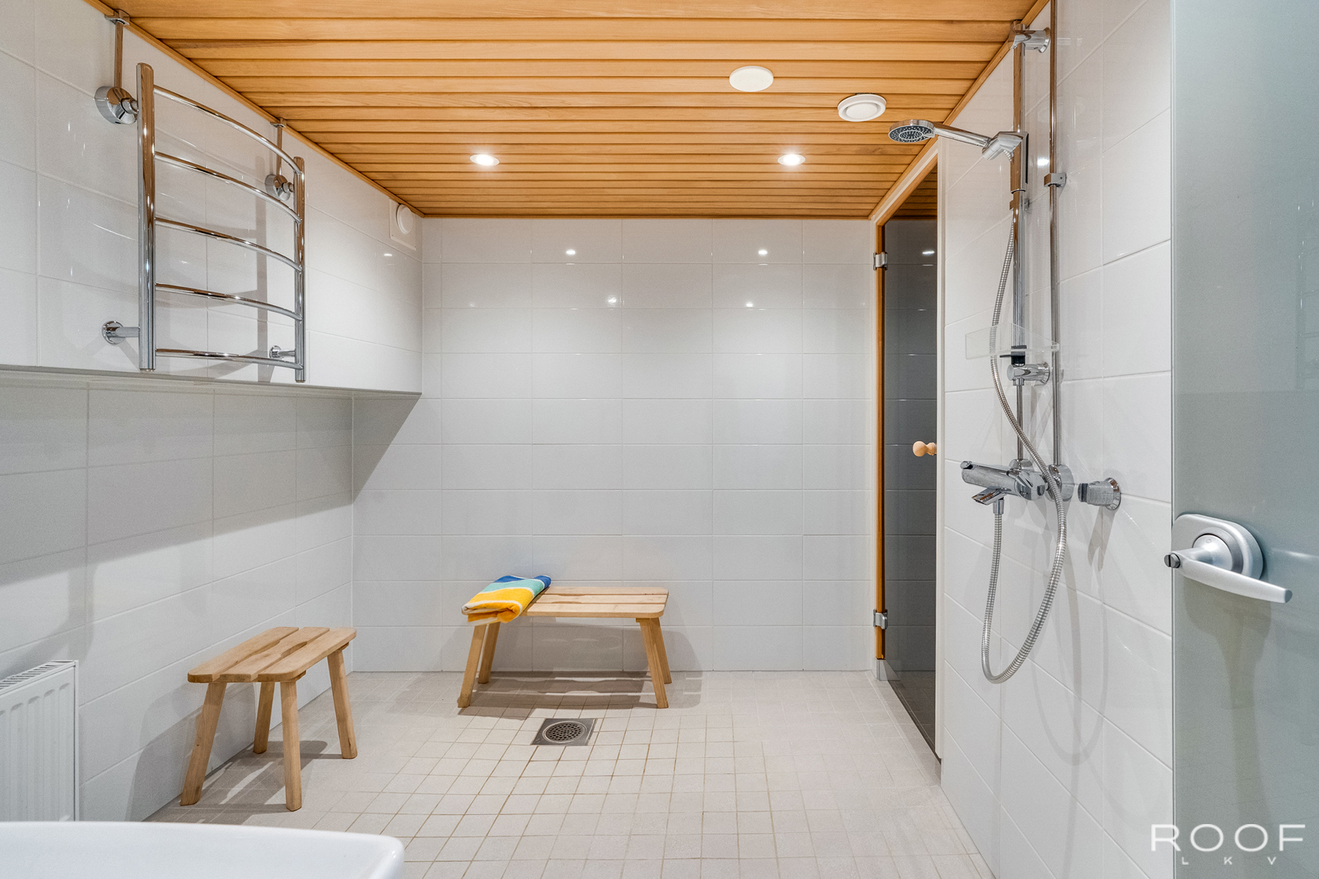Taloyhtiössä on loppusuoralla kattava saneeraus, mutta myytävän asunnon pesutilat, sauna, pukuhuone ja wc on jo valmiit. Uudet kiiltävät pinnat odottavat seuraavaa omistajaa.