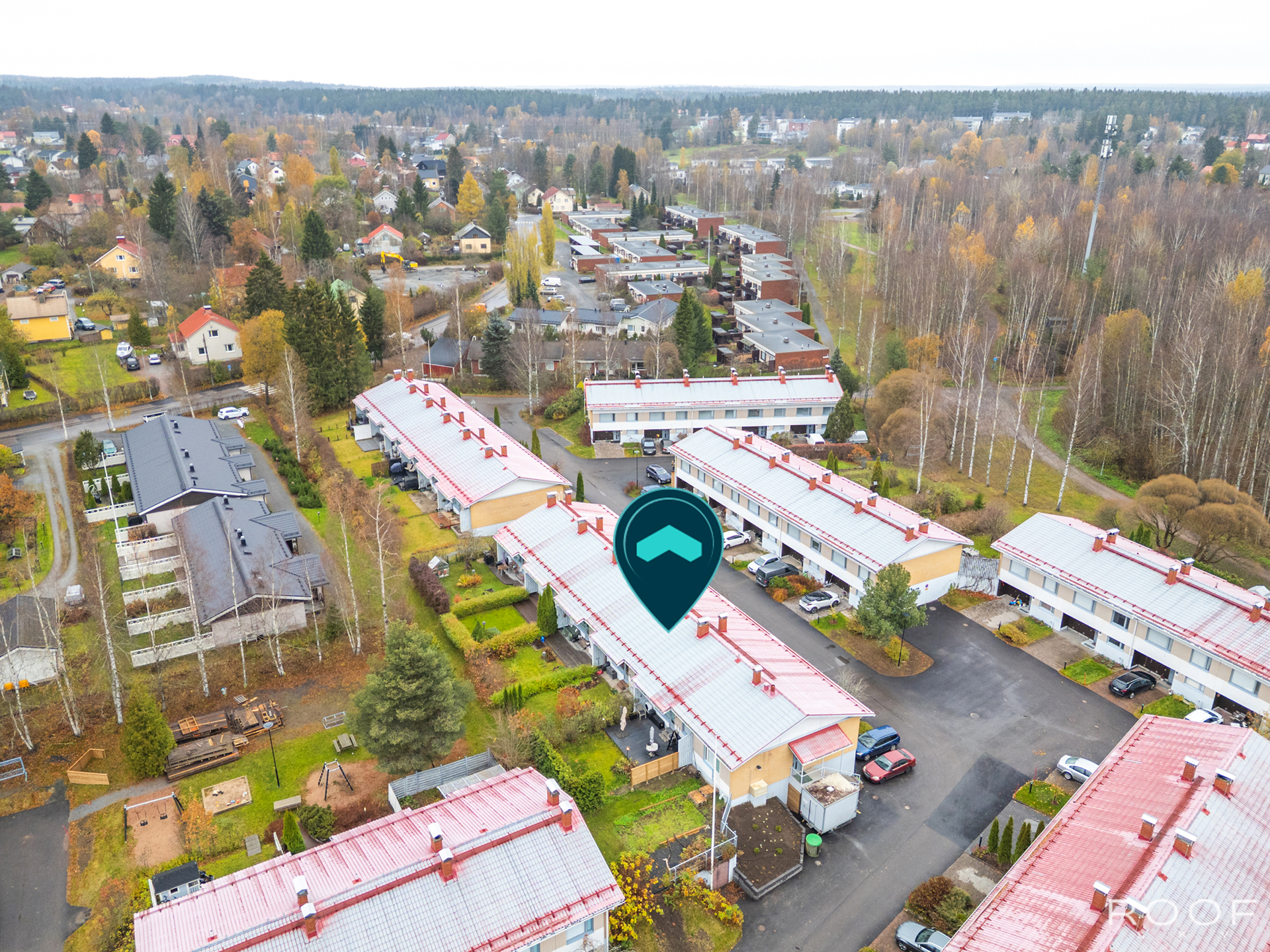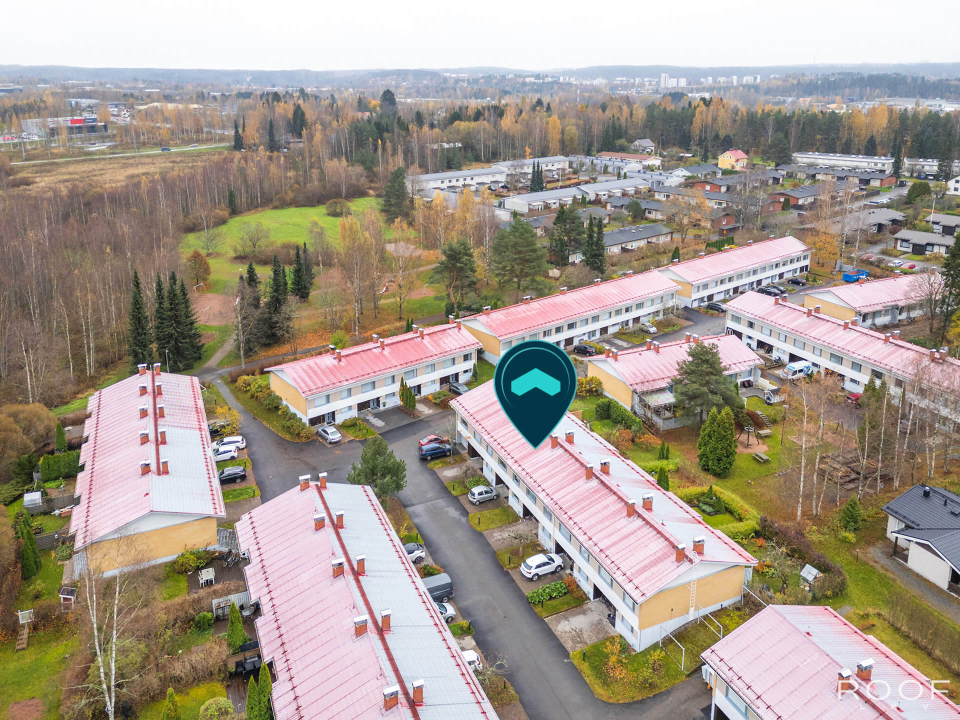 Asunnon sijainti on lähellä palveluja ja vieressä on metsäpolut kuten kattavat ulkoilureitit.
