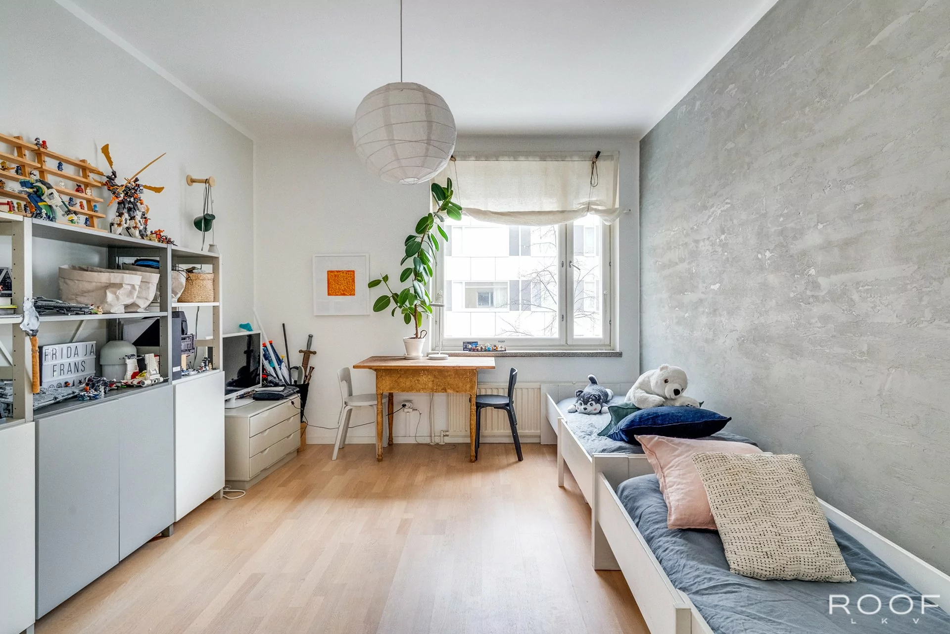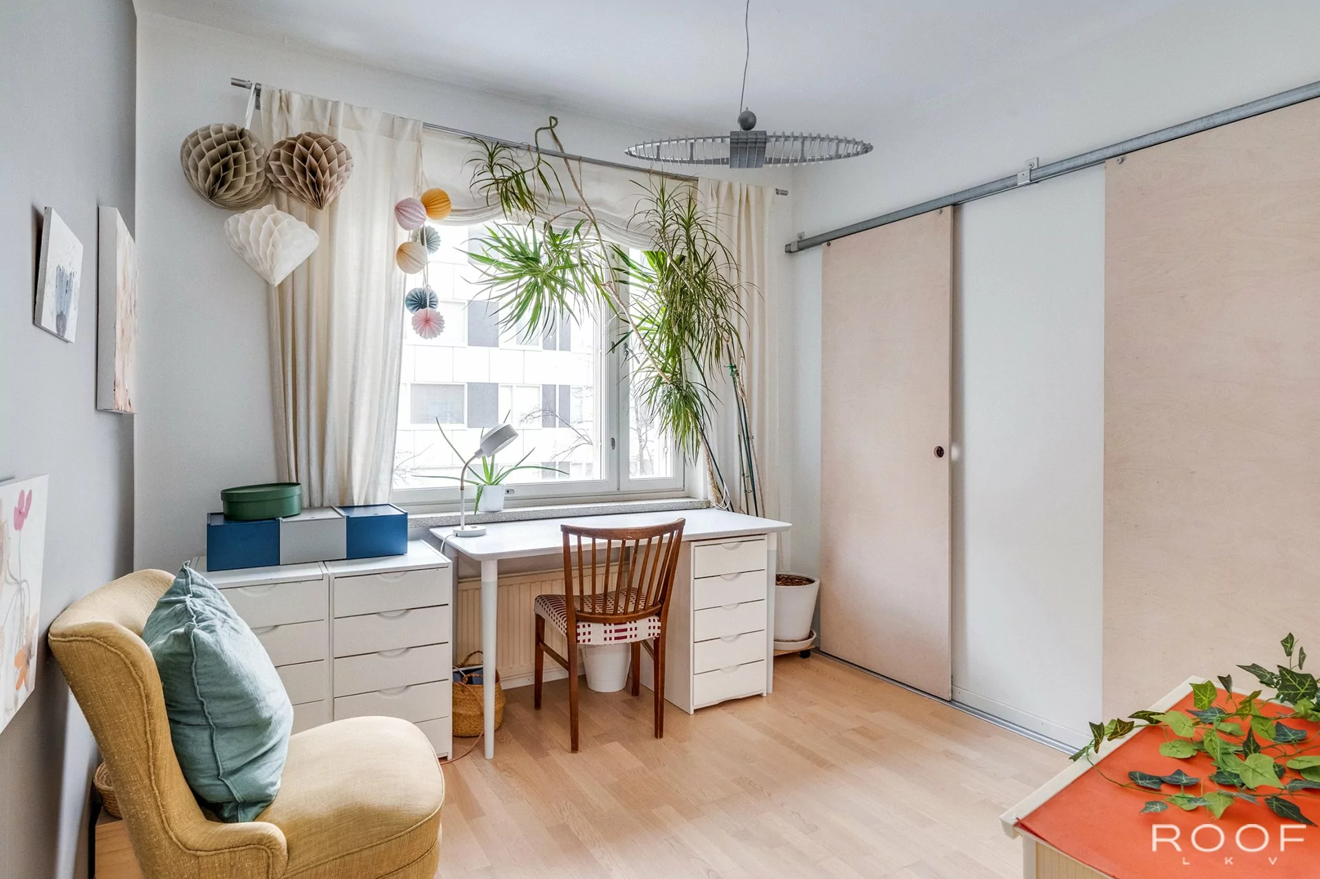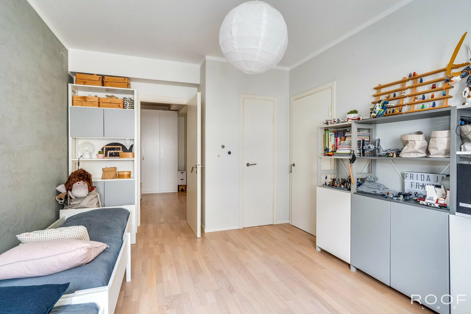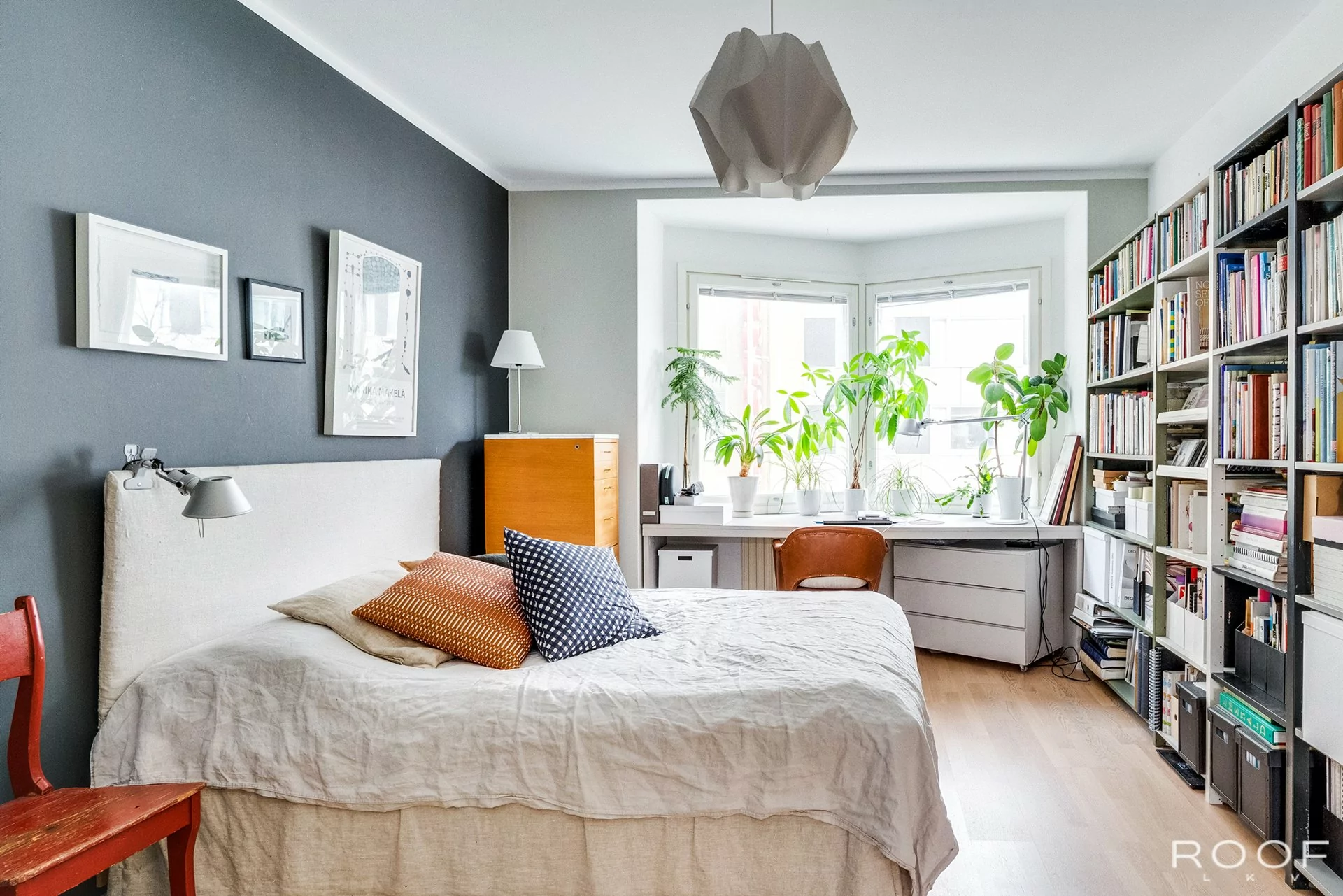 Tilavat kaksi makuuhuonetta, vierashuone/ työtila ja vaatehuone.