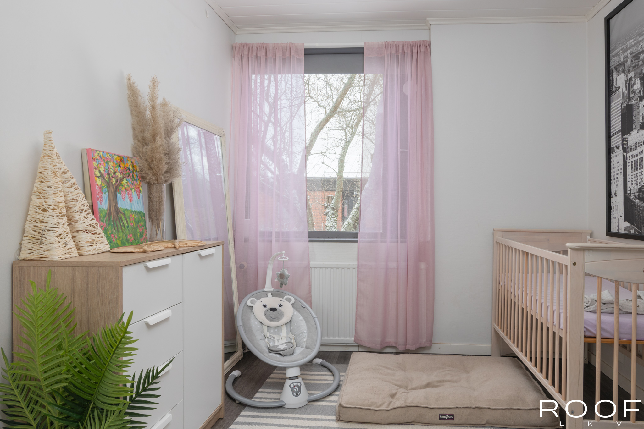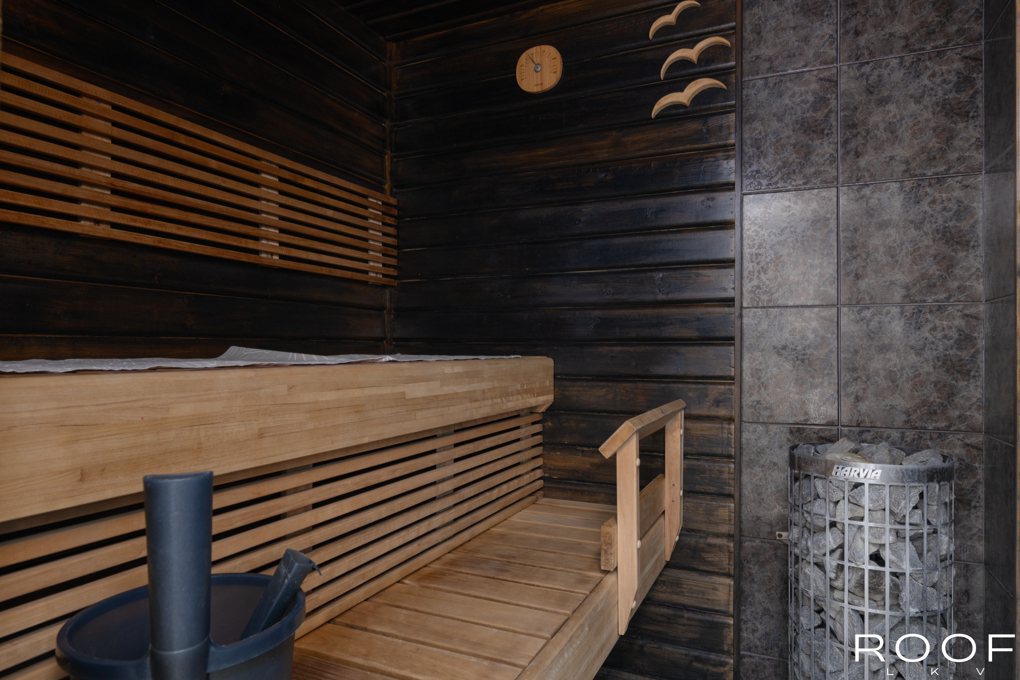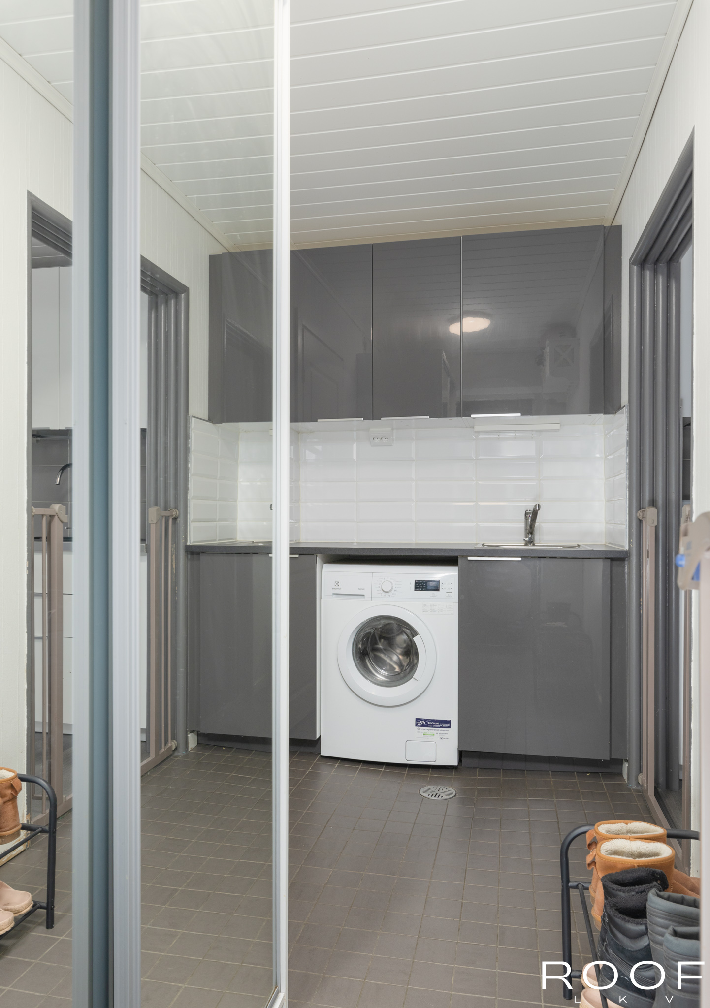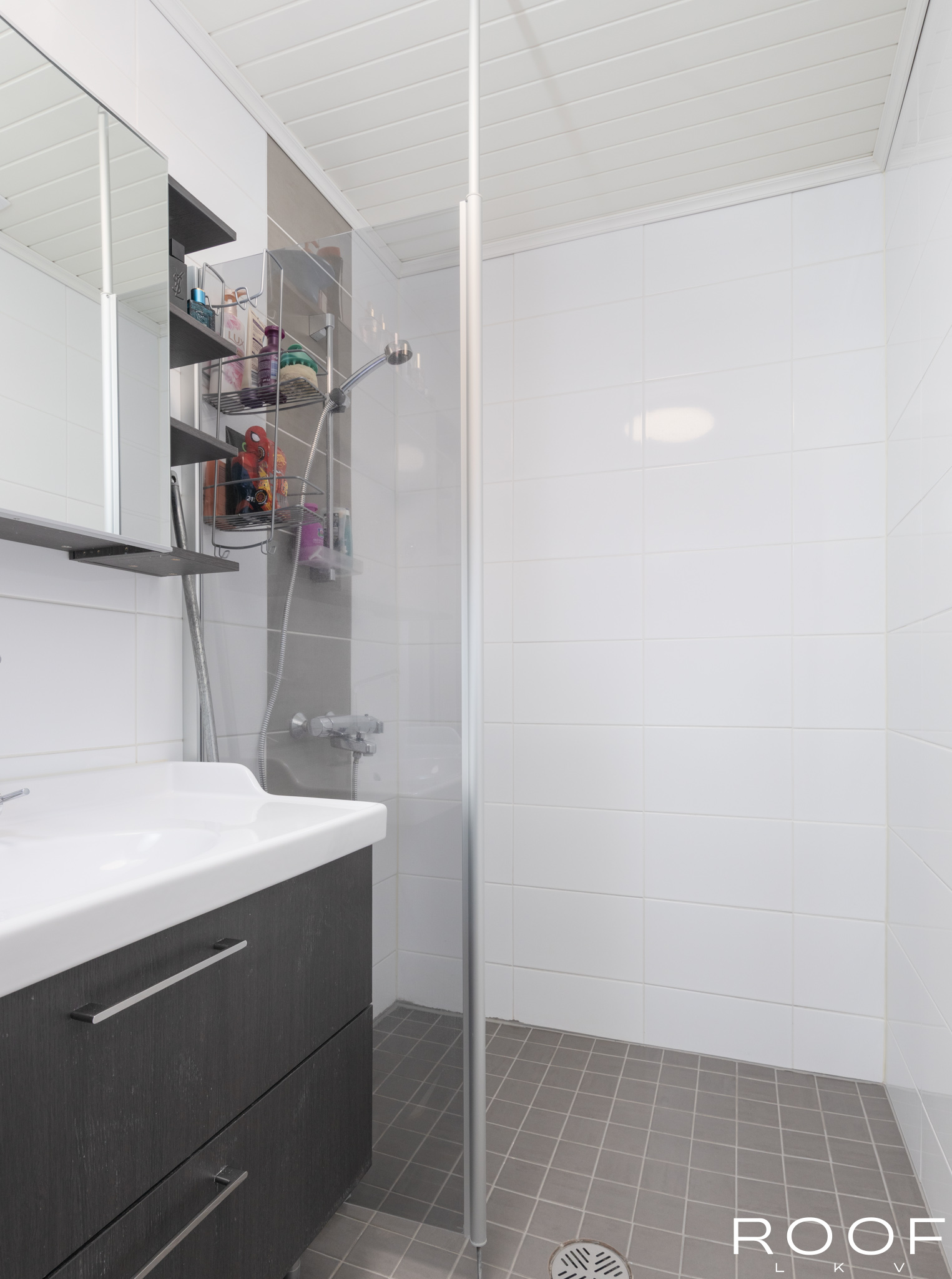 Kolme makuuhuonetta on sijoiteltu rauhallisesti talon toiseen päähän, ja niistä löytyy kaapistot tai vaatehuone säilytystä helpottamaan. Kodinhoitotilassa on hyvin säilytys- ja työskentelytilaa sekä paikka pyykkikoneelle. Saunaosasto on uudistettu tummasävyiseksi ja tunnelmalliseksi – tilasta löytyy myös erillinen WC.