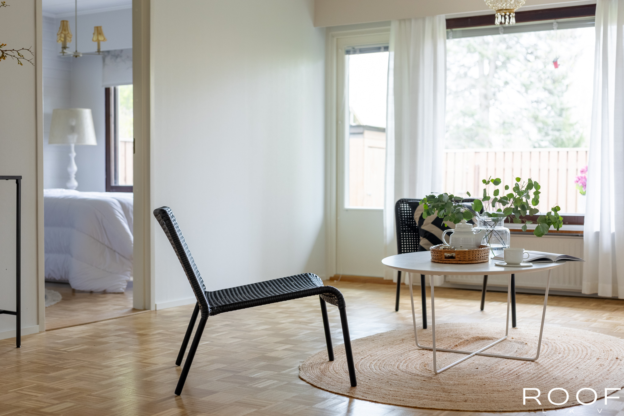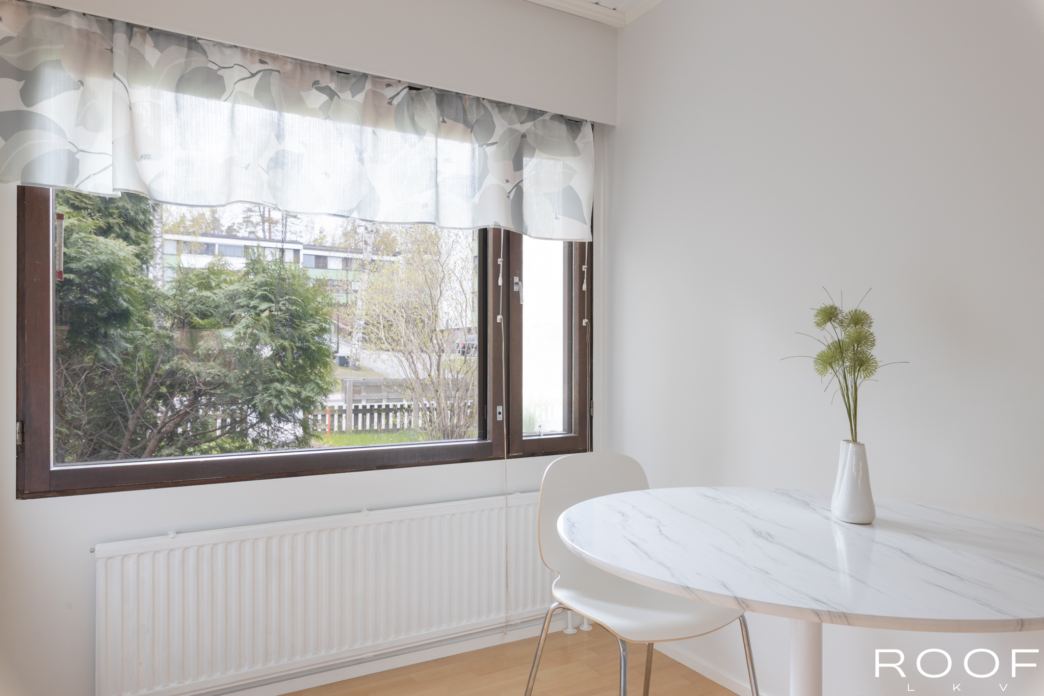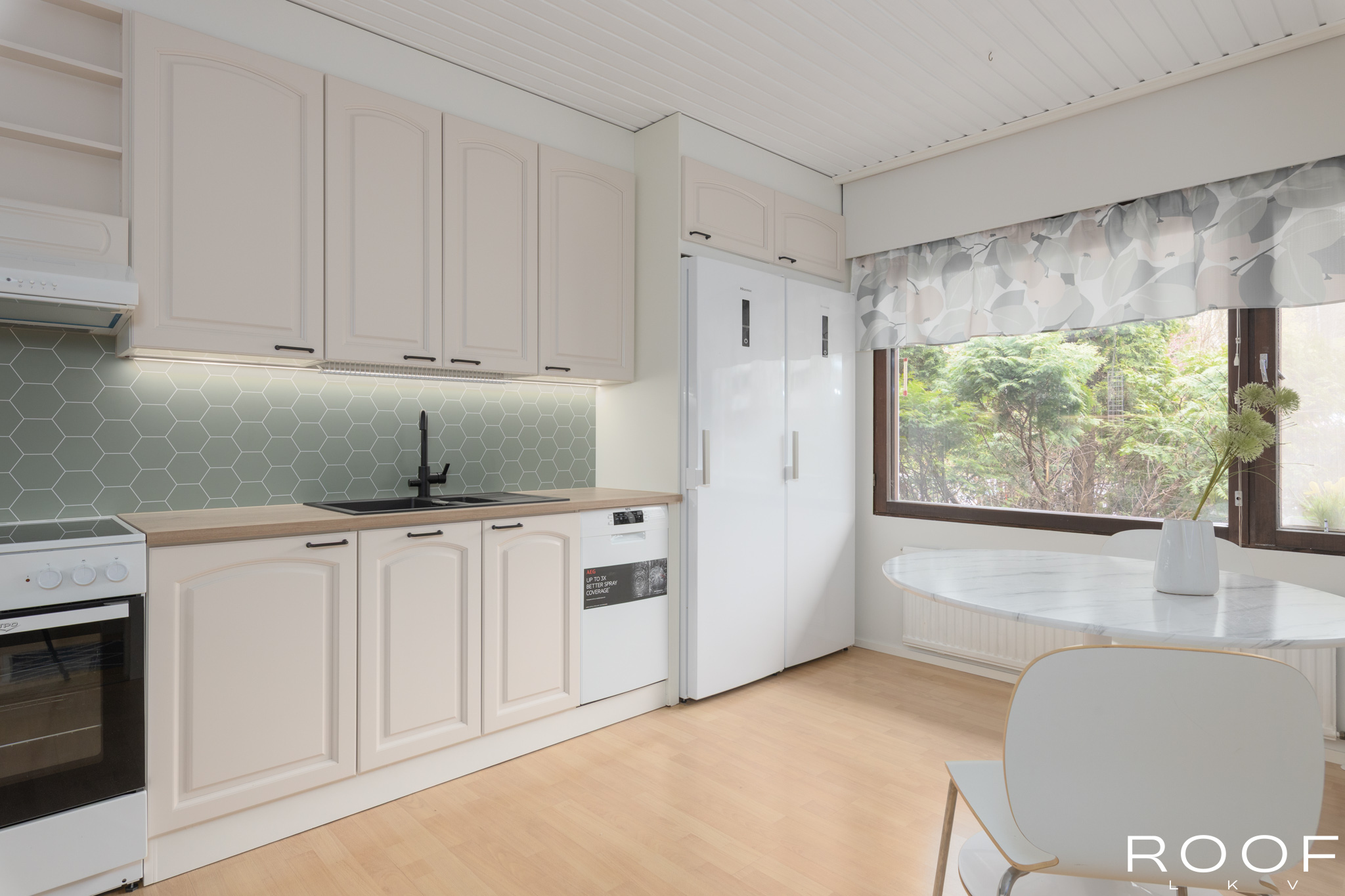 Kodista löytyy mm. keittiö uusilla kodinkoneilla (kevät 2025), ruokailutila ja takkahuone kattoikkunoilla, iso kylpyhuone, ikkunallinen sauna, isoin makuuhuone erillään toisista makuuhuoneista ja tilava olohuone, josta kulku suojaisalle takapihalle. Huoneistolle kuuluu lisäksi lämmin häkkivarasto ja ulkovarasto (kylmä) omalla takapihalla.