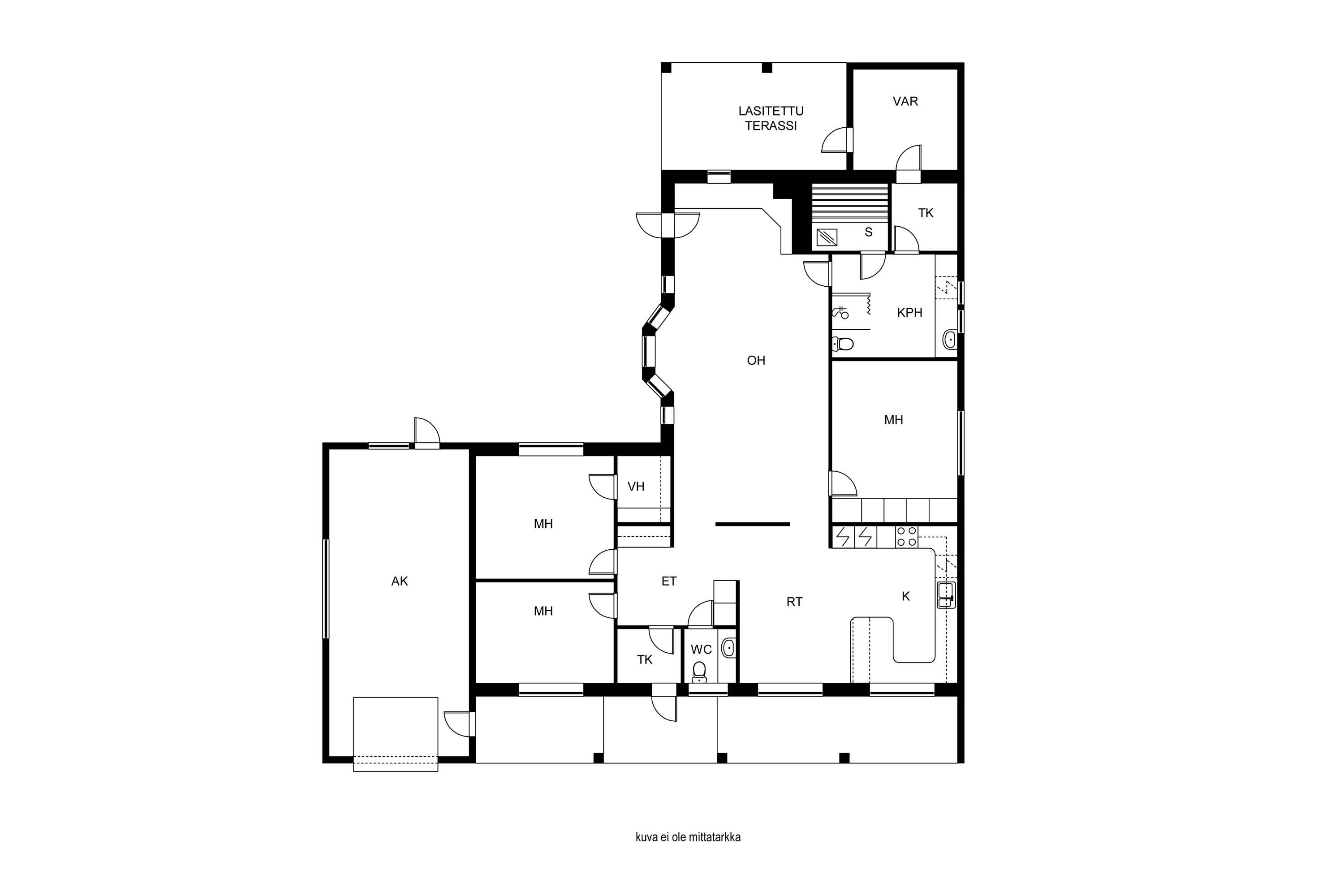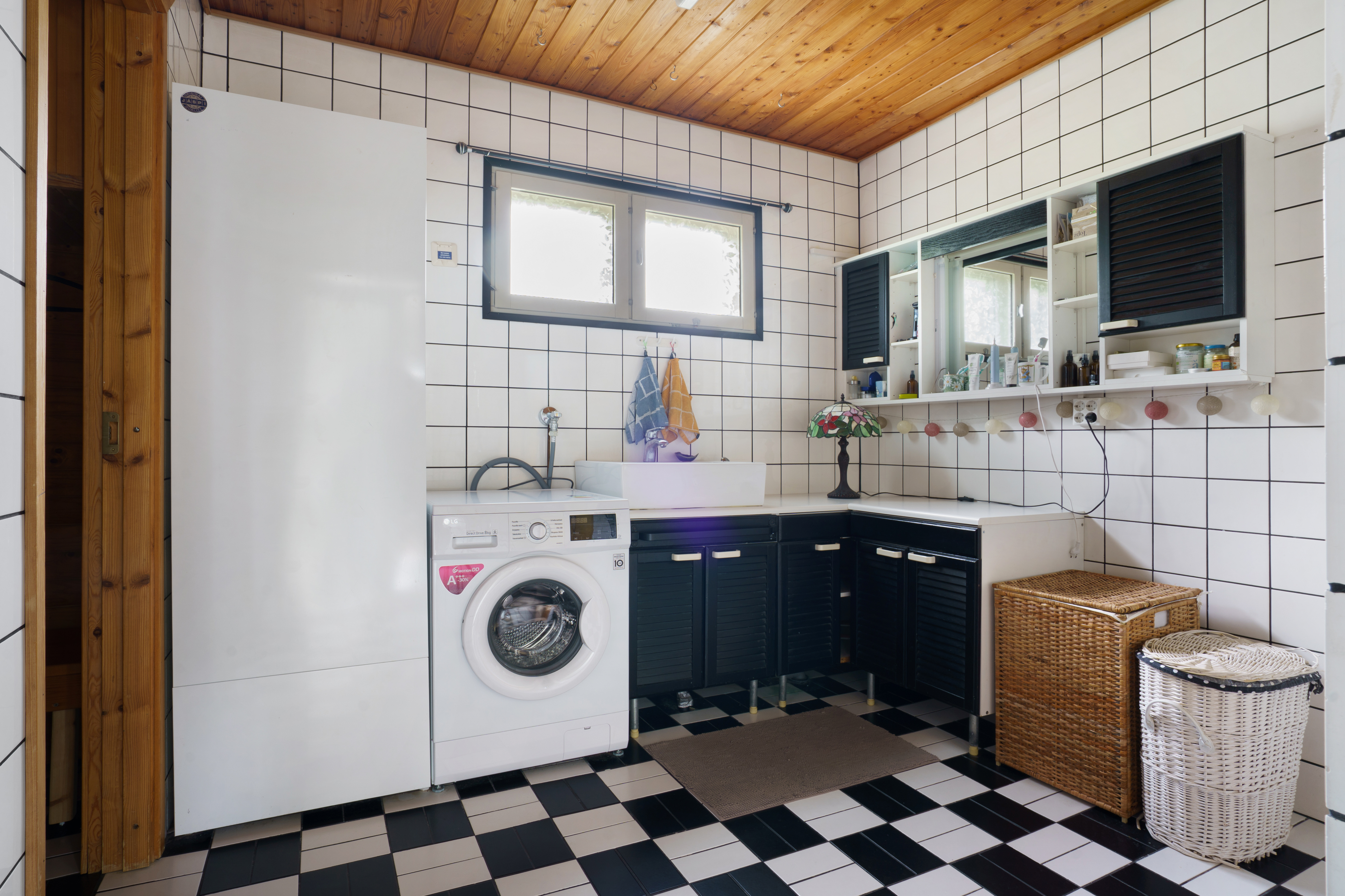 Tilava keittiö, jossa kaappi-, laatikko ja tasotilaa on reilusti. Keittö on varustettu nykyaikaisilla kodinkoneilla, kuten erillisellä jääkaapilla ja pakastimella sekä astianpesukoneella. Kylpyhuoneessa on mukavuutta lisäävä lattialämmitys ja sauna on päivitetty vuonna 2013. Lisäksi talosta löytyy erillinen wc ja kylpyhuoneesta käynti suoraan terassille.