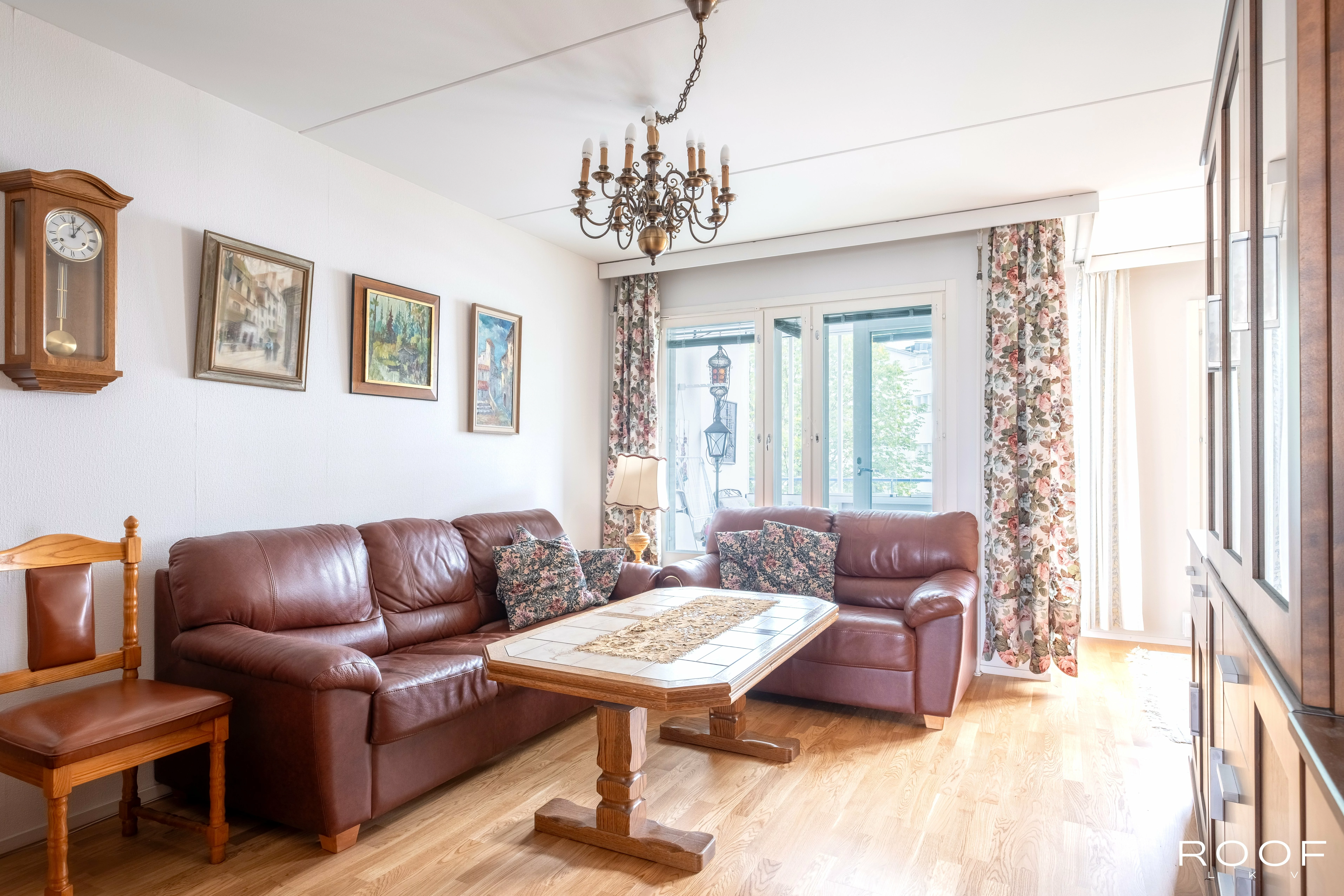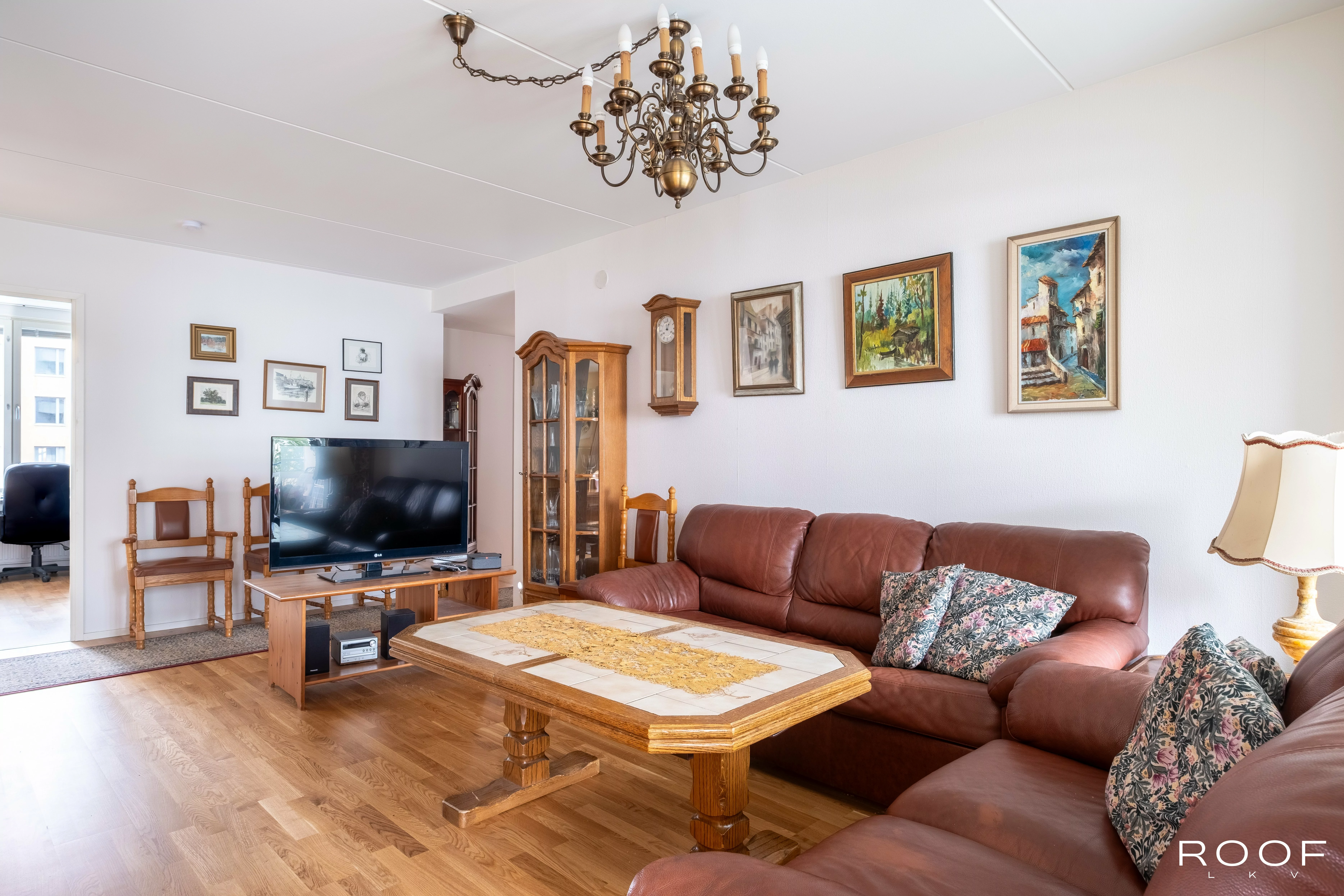 Eteisessä on hyvin kaappitilaa säilytykseen. Eteisestä pääsee erilliseen wc:hen, jossa tilaa pesukoneelle. Eteisestä tullaan olohuoneeseen, joka on tilava ja valoisa. Olohuoneesta on käynti sisäpihalle avautuvalle lasitetulle parvekkeelle. Keittiössä on paljon kaappi- ja laskutilaa sekä tarvittavat kodinkoneet. Kolme makuuhuonetta täyttää isommankin perheen tarpeet. Yhden m...