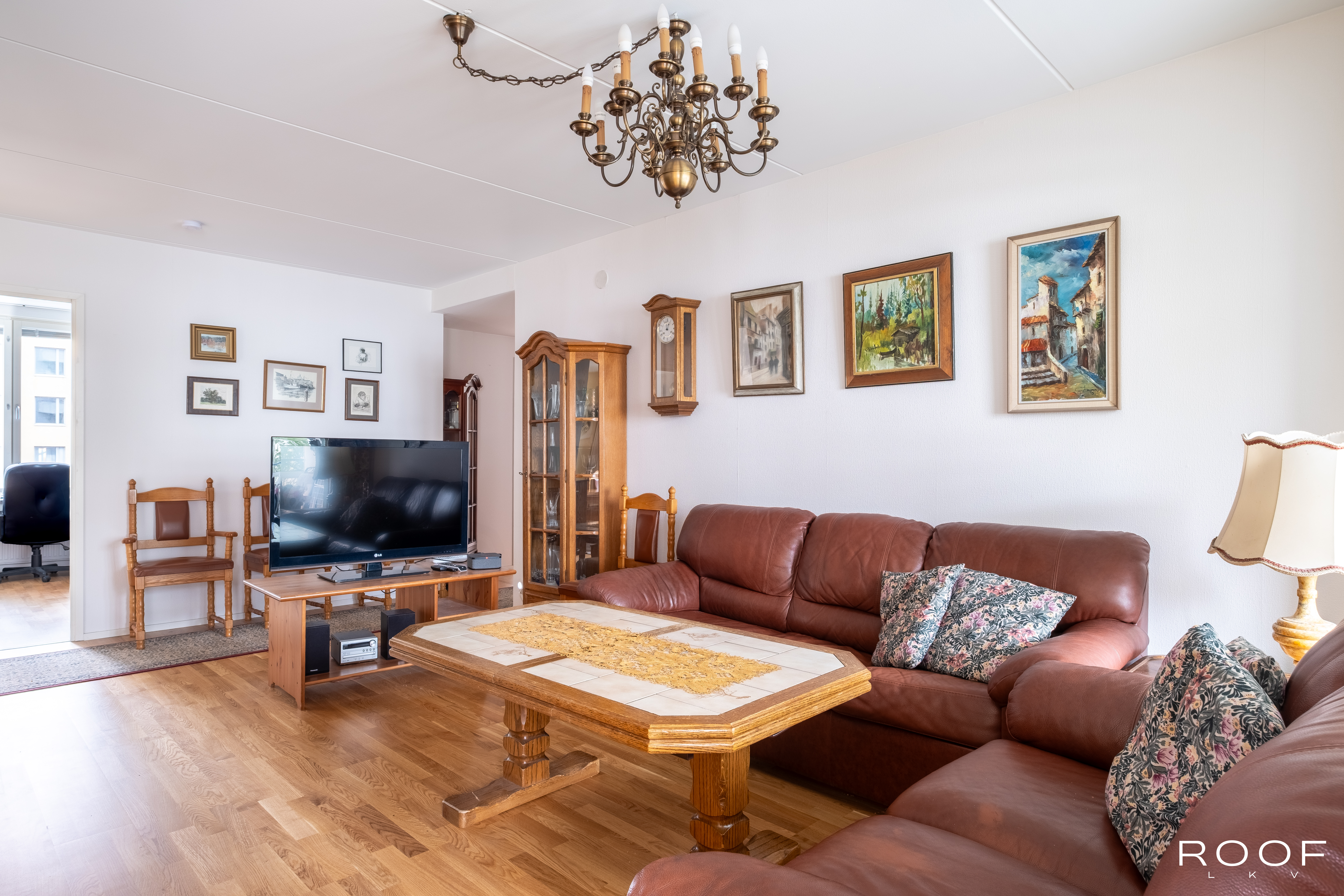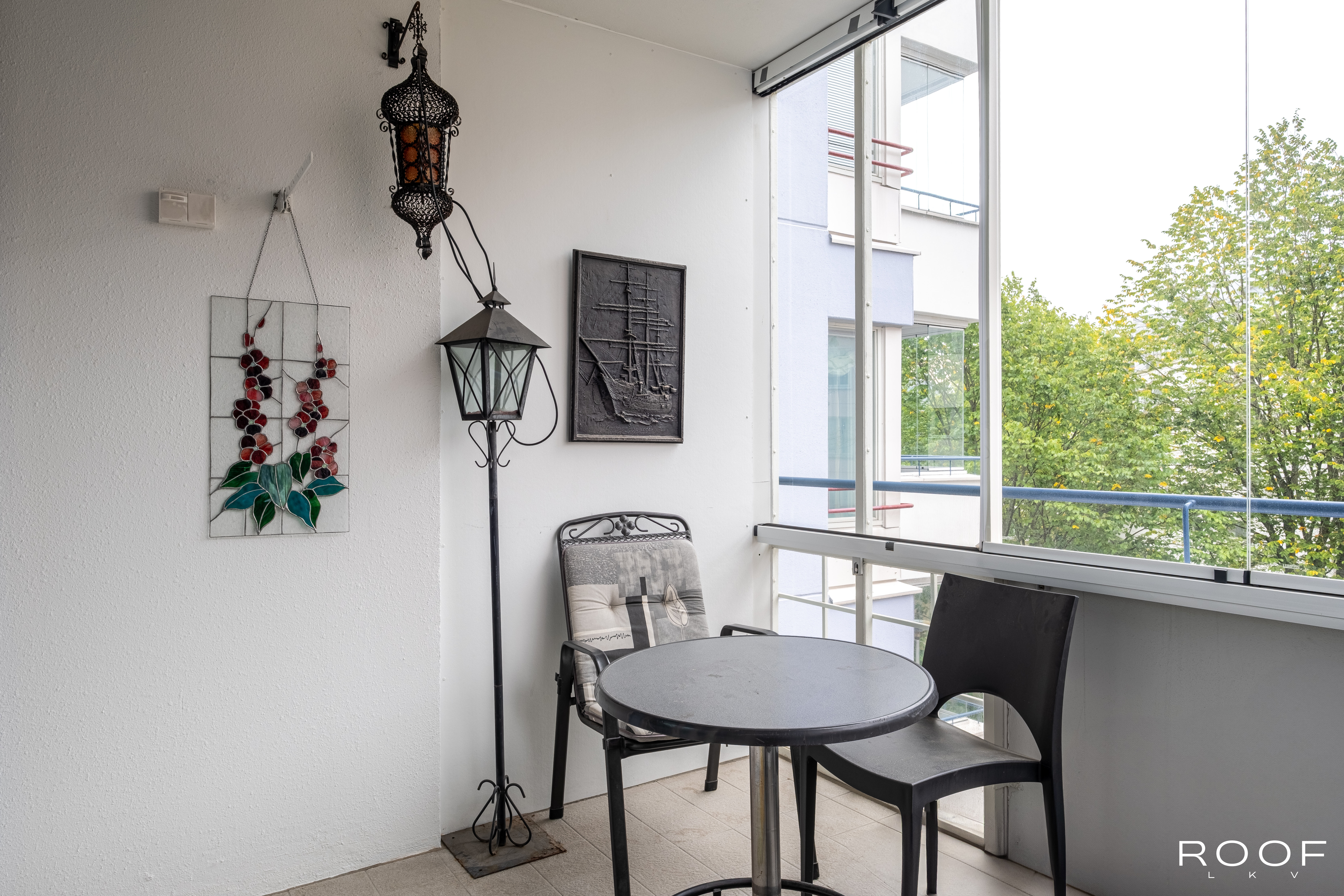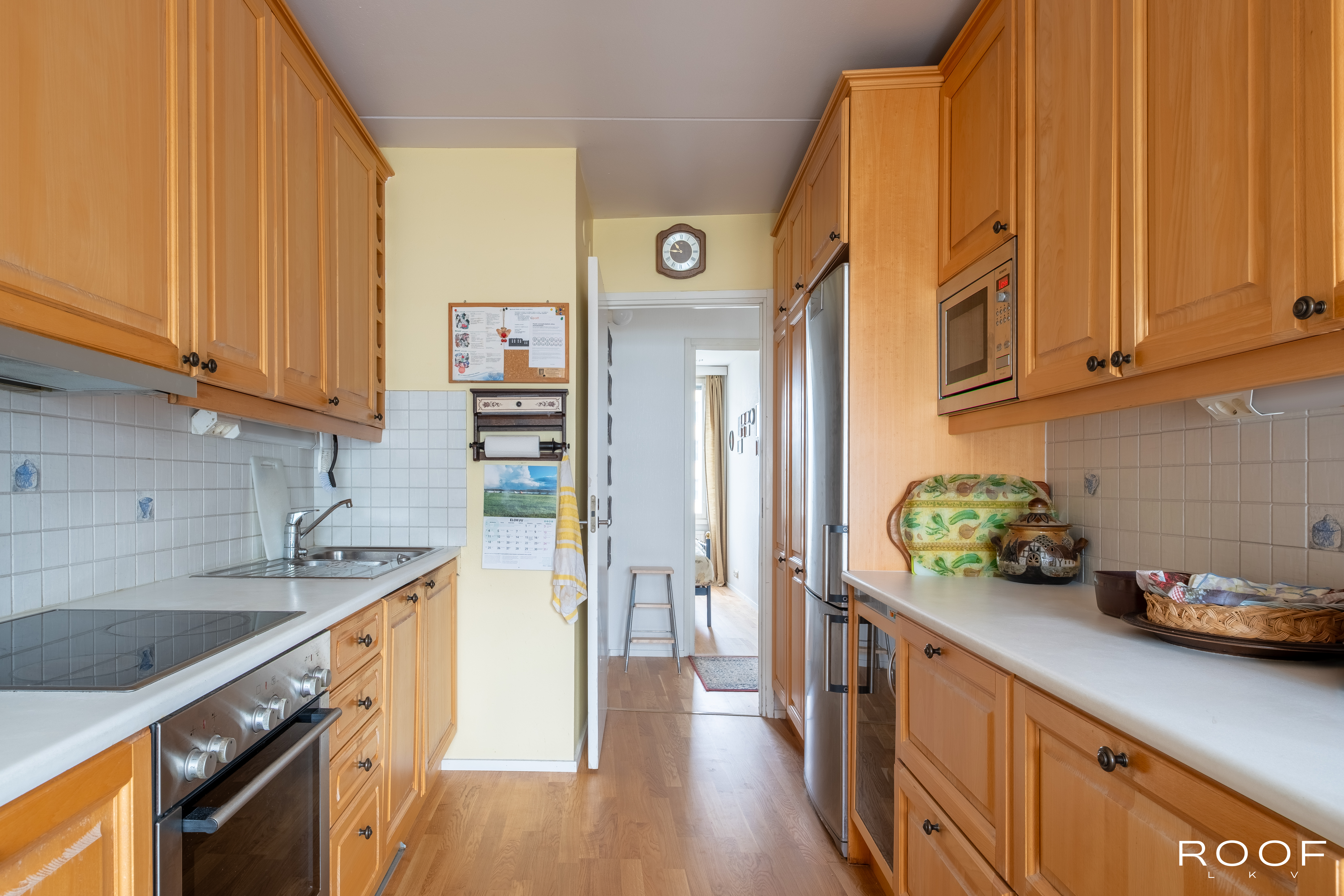 Eteisessä on hyvin kaappitilaa säilytykseen. Eteisestä pääsee erilliseen wc:hen, jossa tilaa pesukoneelle. Eteisestä tullaan olohuoneeseen, joka on tilava ja valoisa. Olohuoneesta on käynti sisäpihalle avautuvalle lasitetulle parvekkeelle. Keittiössä on paljon kaappi- ja laskutilaa sekä tarvittavat kodinkoneet. Kolme makuuhuonetta täyttää isommankin perheen tarpeet. Yhden makuuhuoneen yhteydessä on vaatehuone. Oma sauna Helsingin keskustassa ei ole itsestäänselvyys.