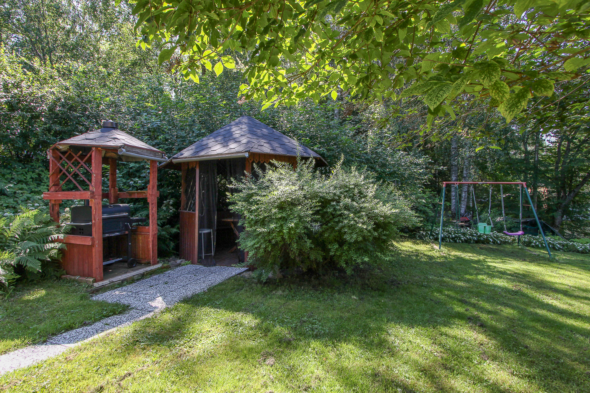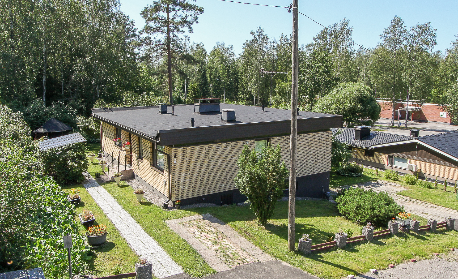 Tämä koti sijaitsee omalla, upealla 936 m²:n rinnetontilla, jossa omenapuita, marjapensaita, koriste- ja hyötykasveja, grillikatos, varasto sekä katos puille.