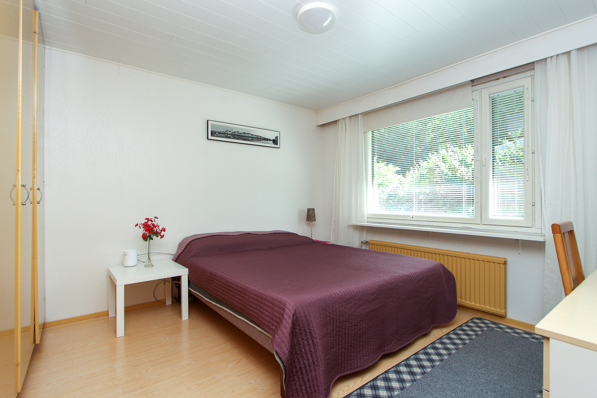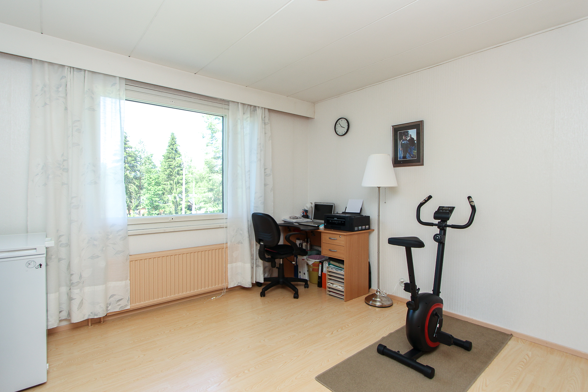 Asuinkerroksessa kolme tilavaa makuuhuonetta, olohuone, ruokailutila, keittiö ja wc. Olohuoneesta on käynti parvekkeelle.