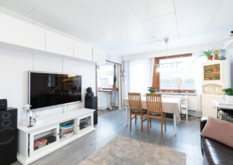 POJO Stor radhusgavelbostad på härligt läge. Från den stora och insynsskyddade terrassen öppnar sig vy över åker. Till simstranden och matbutiken ca 500 meter! Kyrkbyns skolor endast på ca 1 km avstånd. Bostaden har ytrenoverats längs med åren och även badrummet är förnyat år 2023! Bolaget har jordvärme samt Karis Telefons optofiber. Genast ledig bostad!