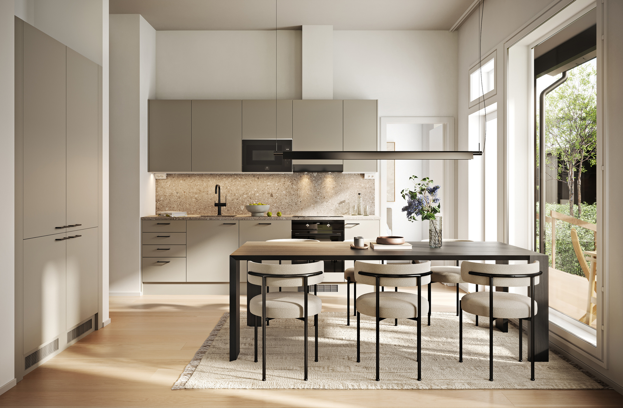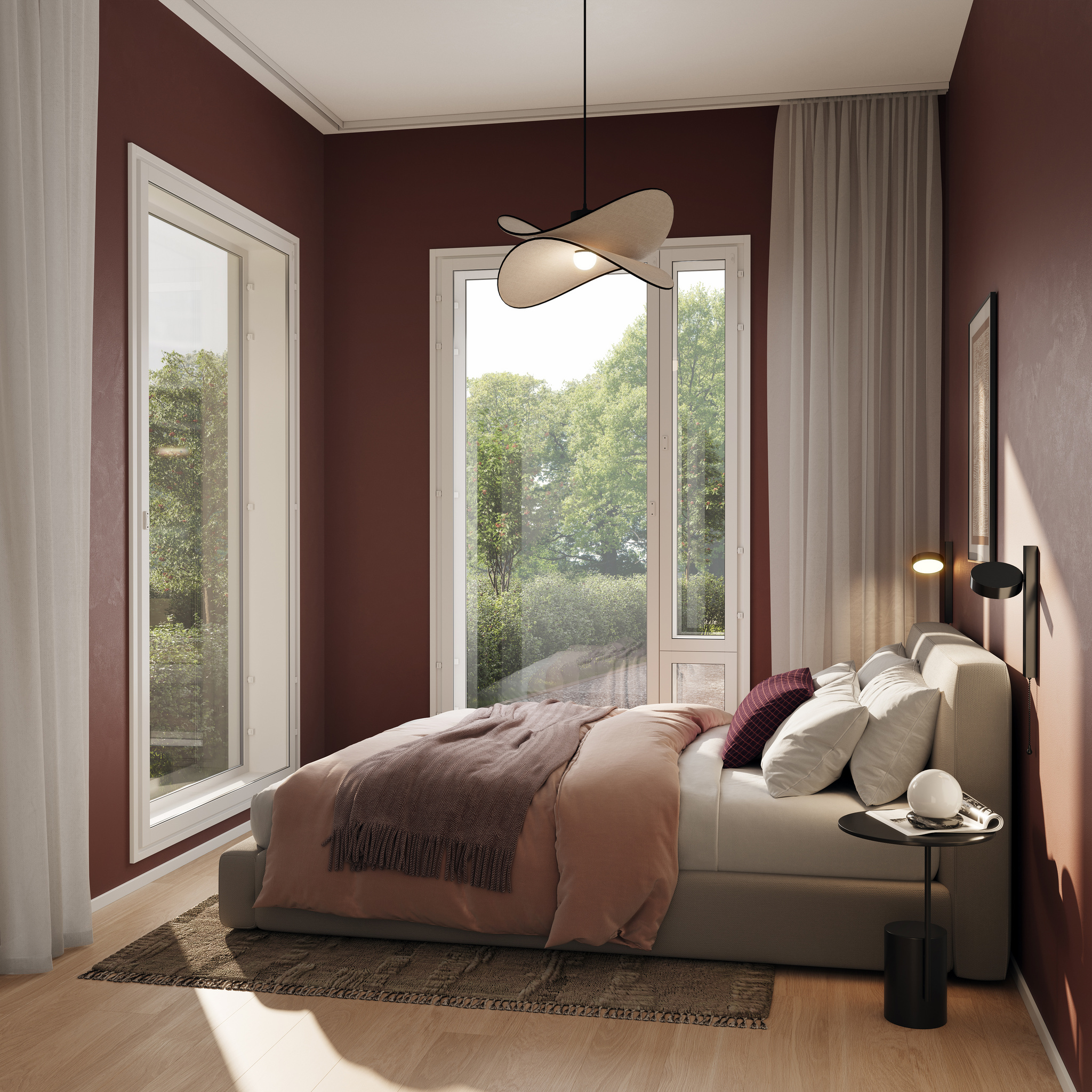 Asunnossa on hulppea 3,2 m huonekorkeus ja lattiasta kattoon ulottuvat ikkunat, jotka tekevät kodista todella valoisanaksi makuuhuonetta, avara olohuone-keittiötila sekä oma sauna, jossa rentoutua päivän päätteeksi. Keittiö on hyvin varusteltu, ja kylpyhuoneessa on modernin tyylikäs. Asunnoissa vesikiertoinen lattialämmitys, joka lisää asumismukavuutta.
