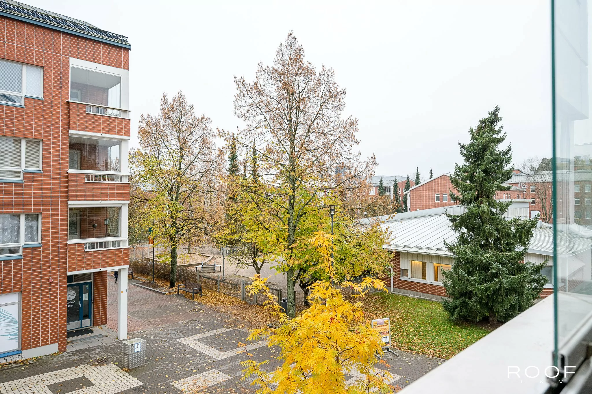 Helppoa asumista myös autottomalle, asunnon vieressä kävelykatu, joten liikenteen hälyä voi välttää.