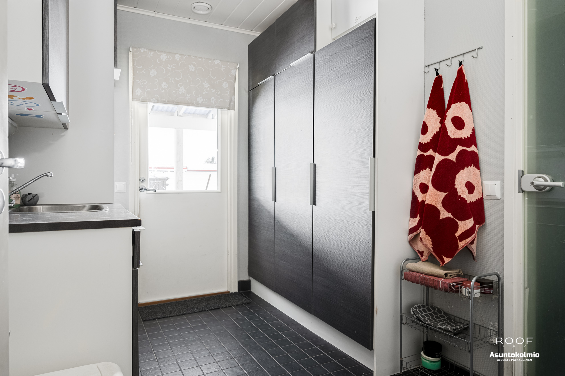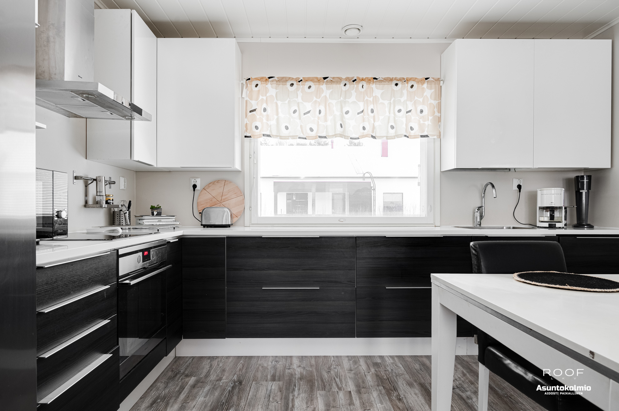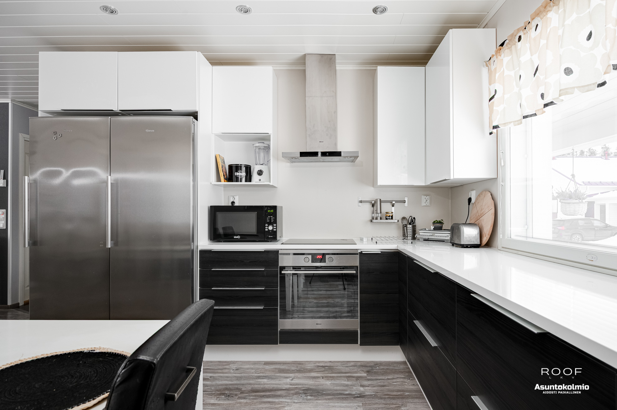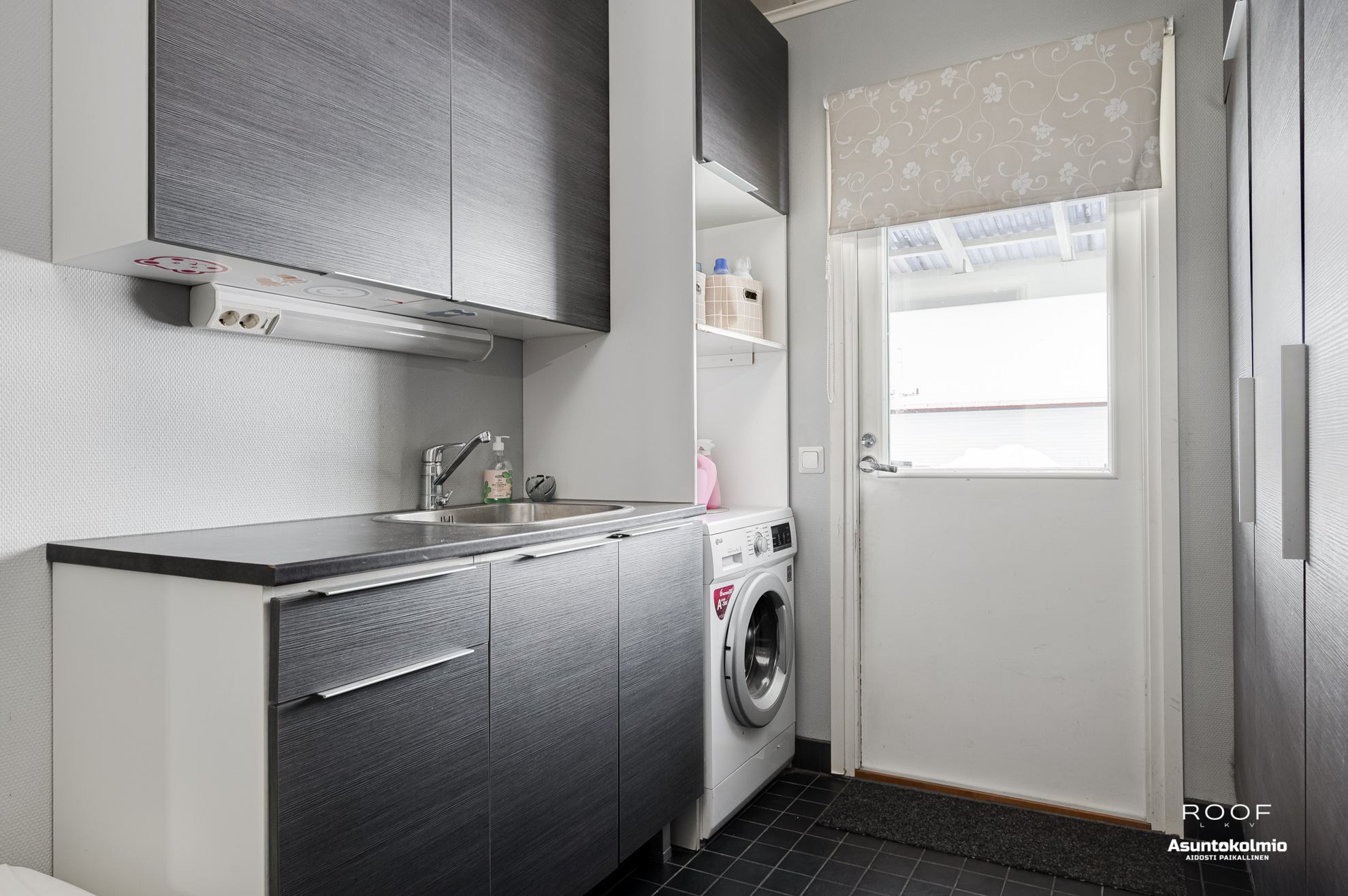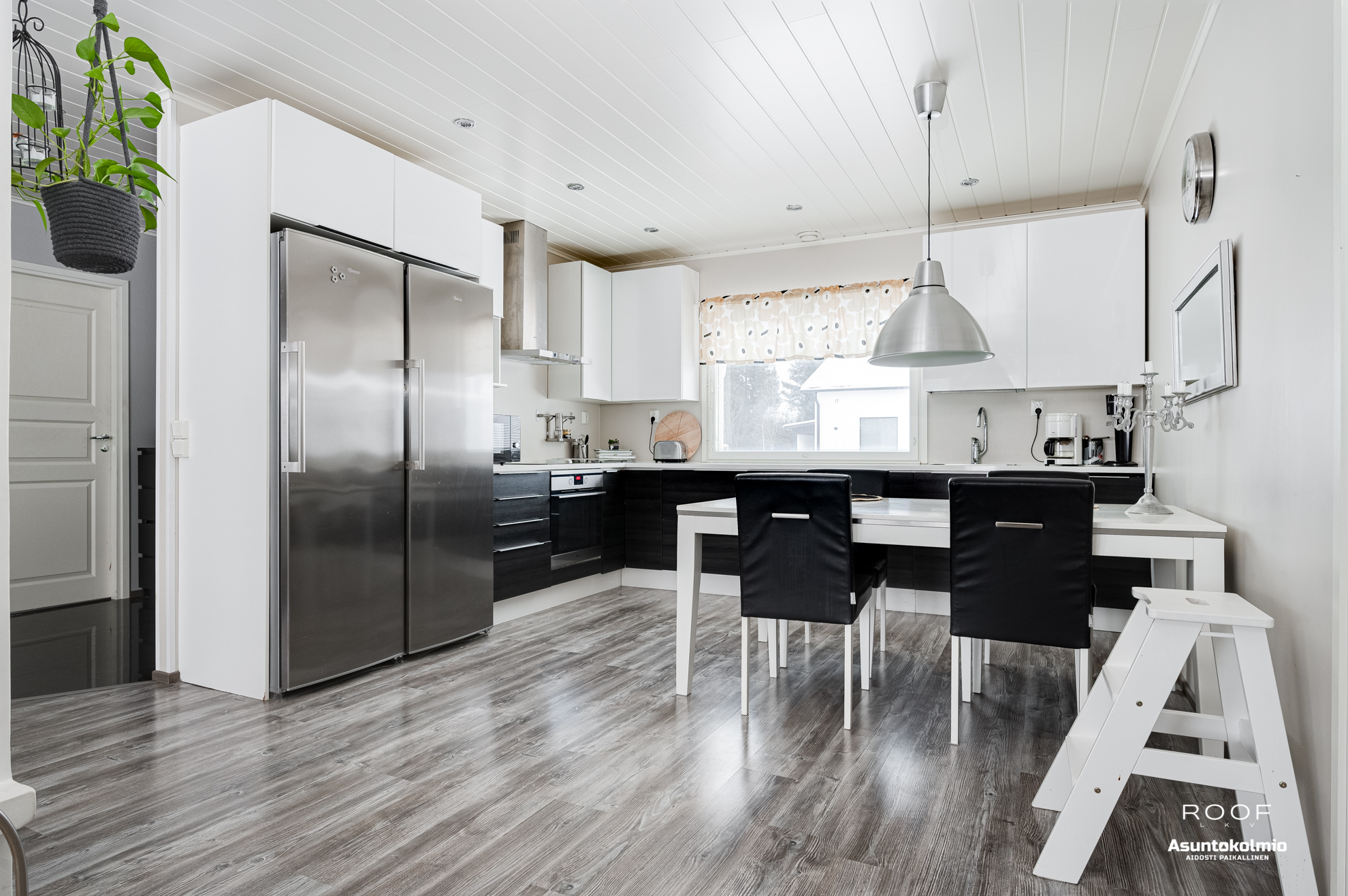 Kodin sydämessä valoisa olohuone, jossa suuret ikkunat tuovat luonnonvalon kodin keskiöön ja tarjoaa näkymät kodin laajalle takapihalle. Olohuoneen varaava takka puolestaan luovuttaa lämpöä ja tunnelmaa talven kylmiin iltoihin. Keittiö sisältää nykyaikaiset kodinkoneet, riittävästi kaappitilaa j...