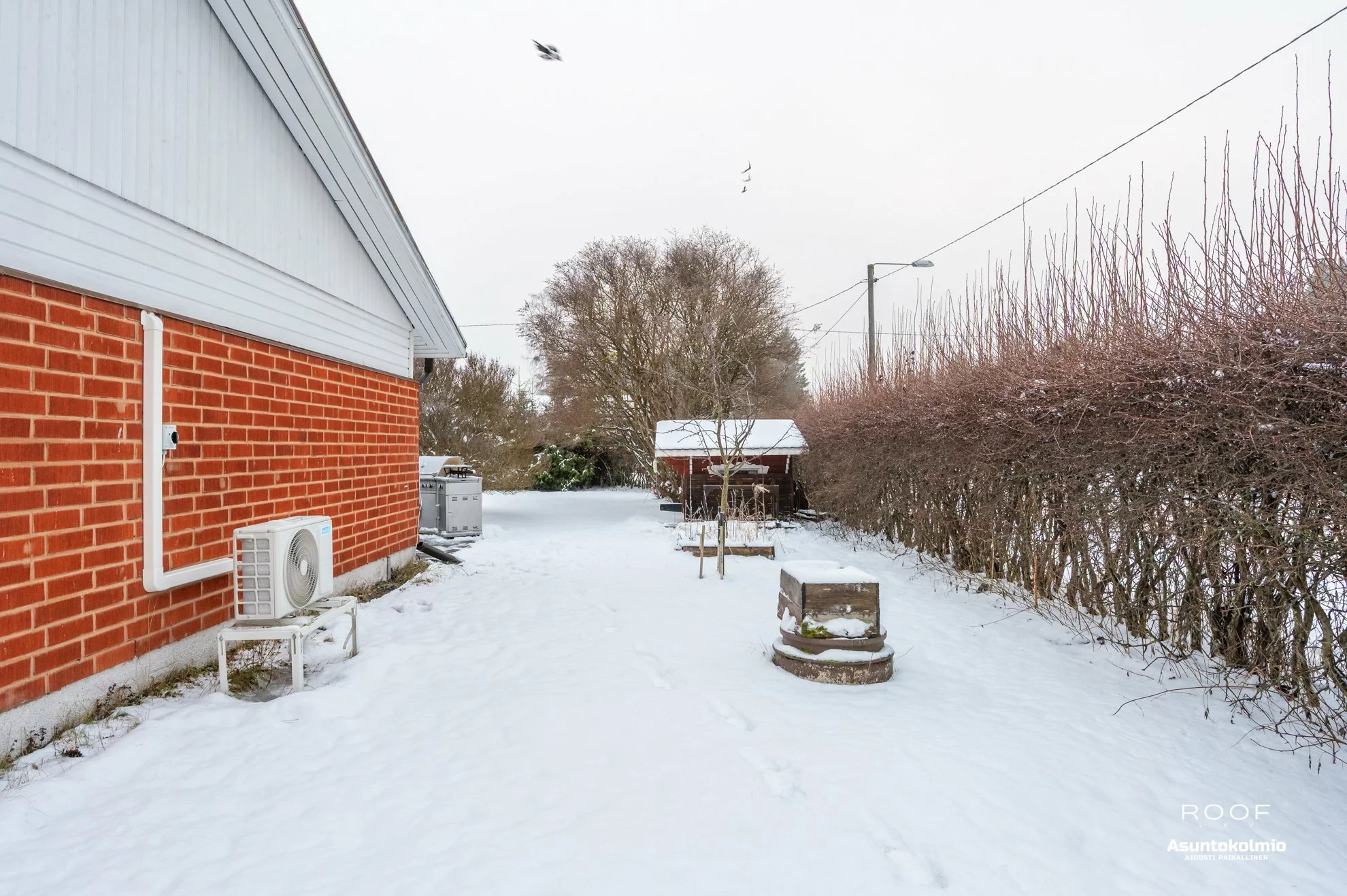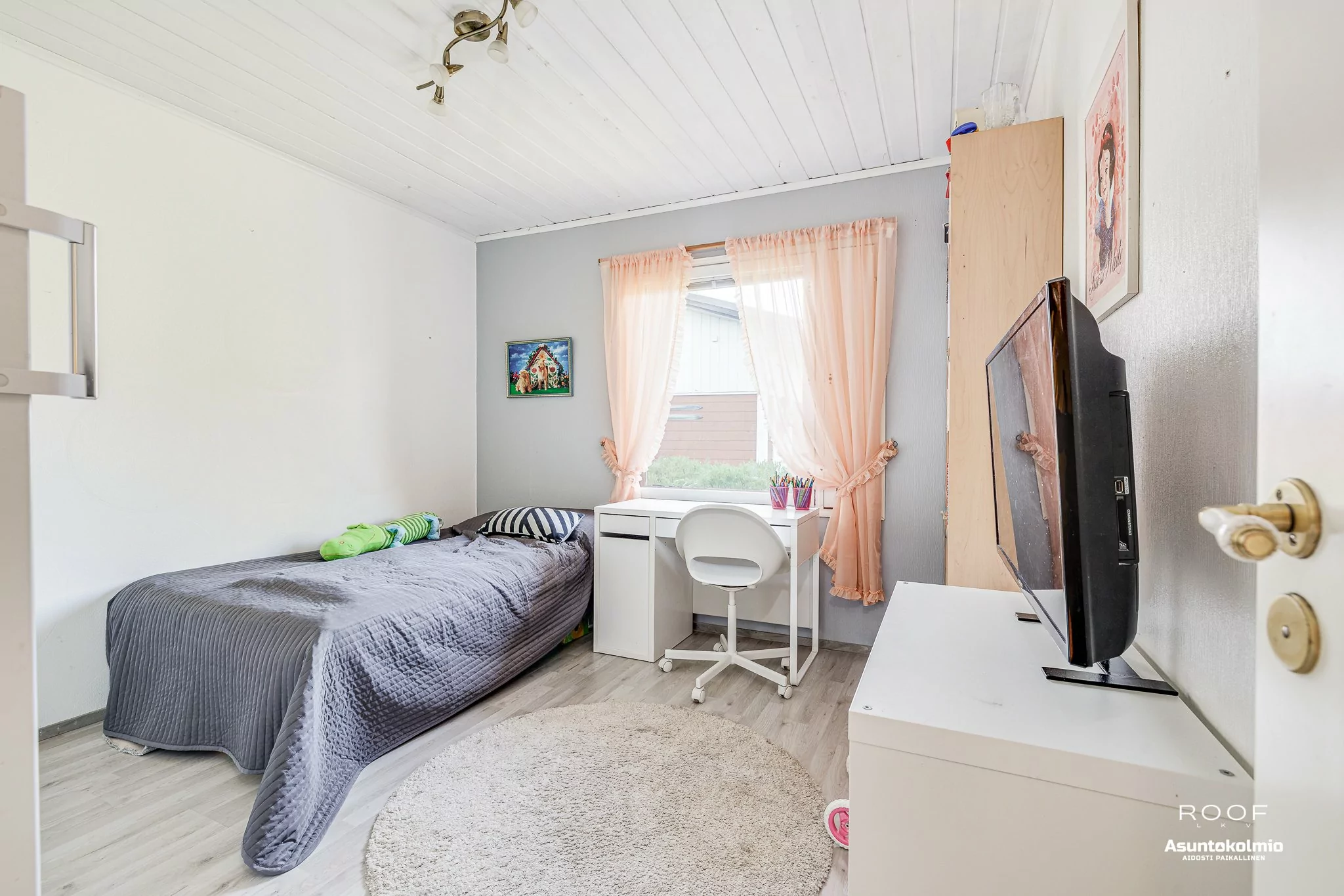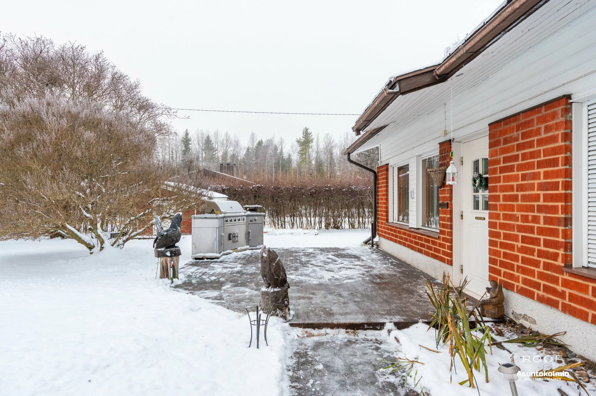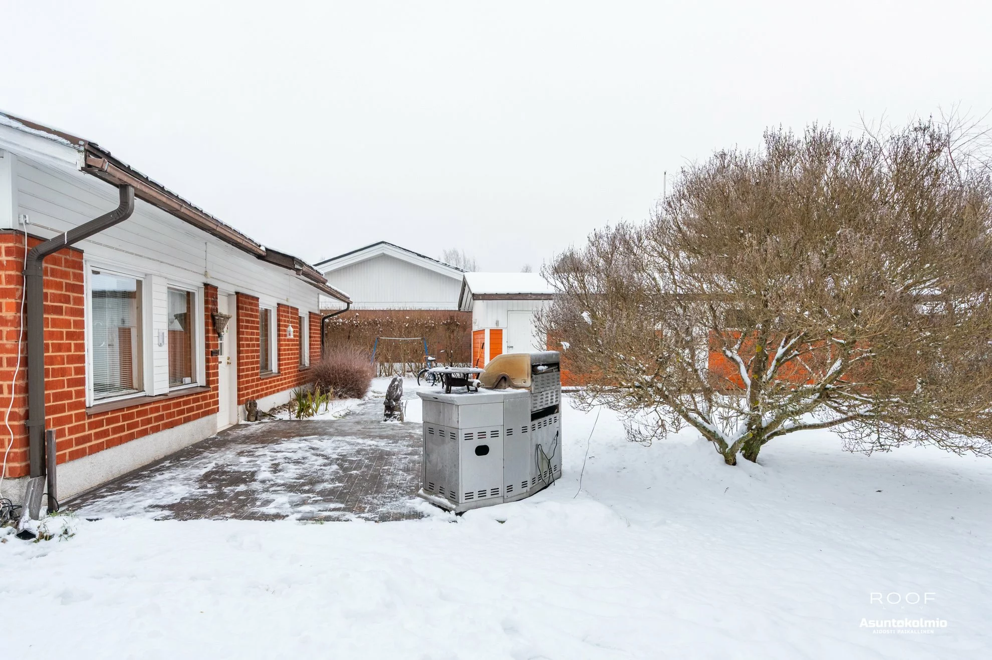 Sisällä lämpöä ja tunnelmaa luo varaava takka, ja sähkö sekä ilmalämpöpumppu huolehtivat talon lämmityksestä. Keittiö on päivitetty vuonna 2023 uusilla kodinkoneilla, ja sen laminaattilattia sekä tapetoidut seinät tuovat modernia ilmettä. Kolme makuuhuonetta tarjoavat tilaa perheelle ...