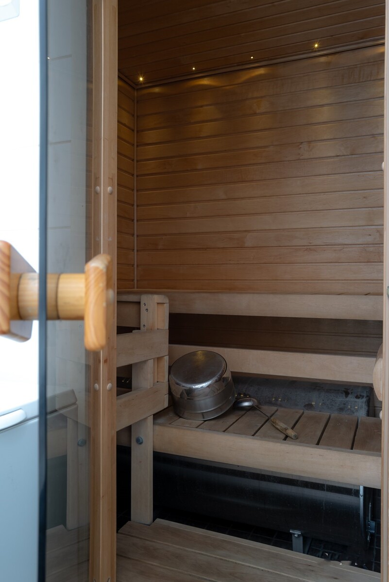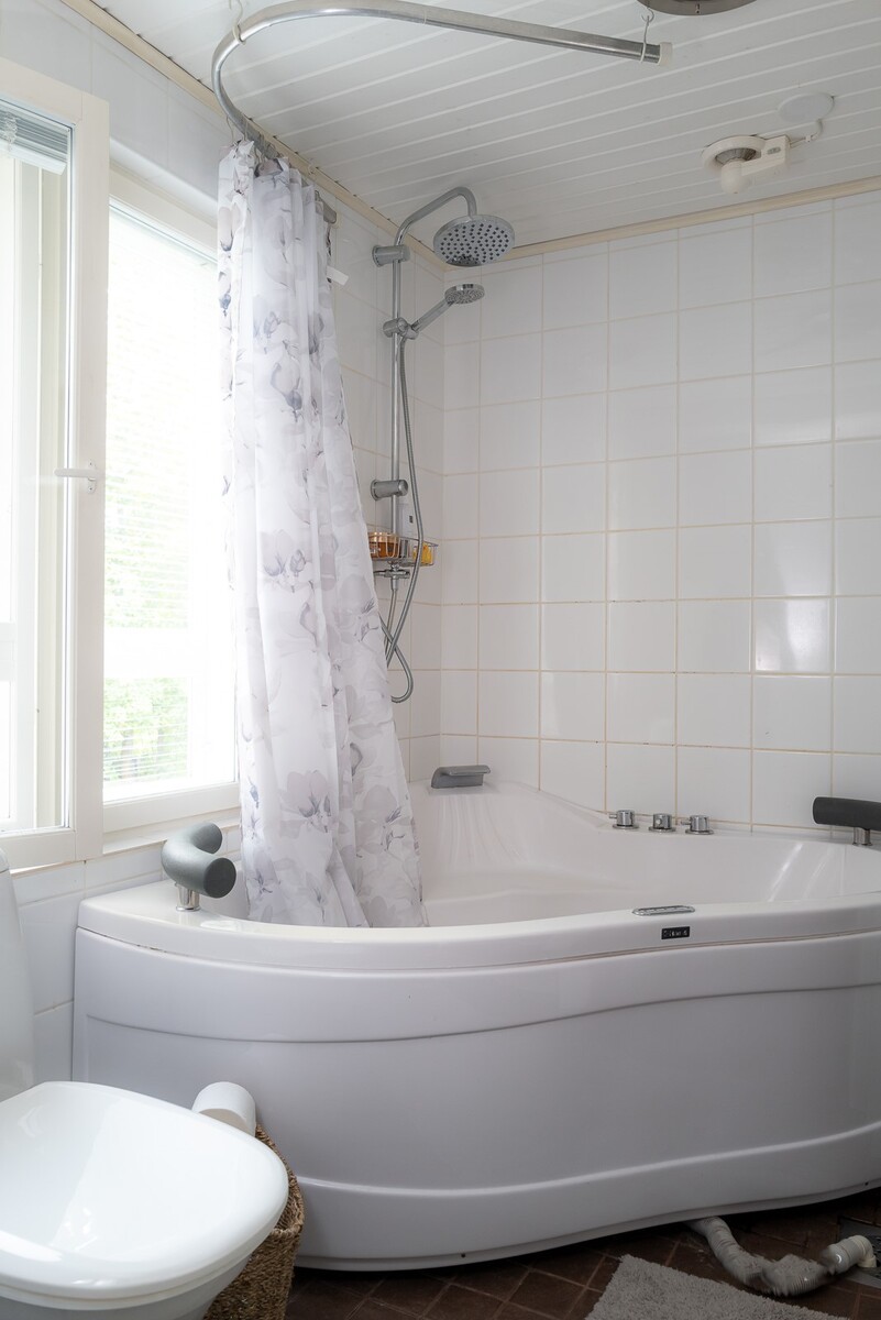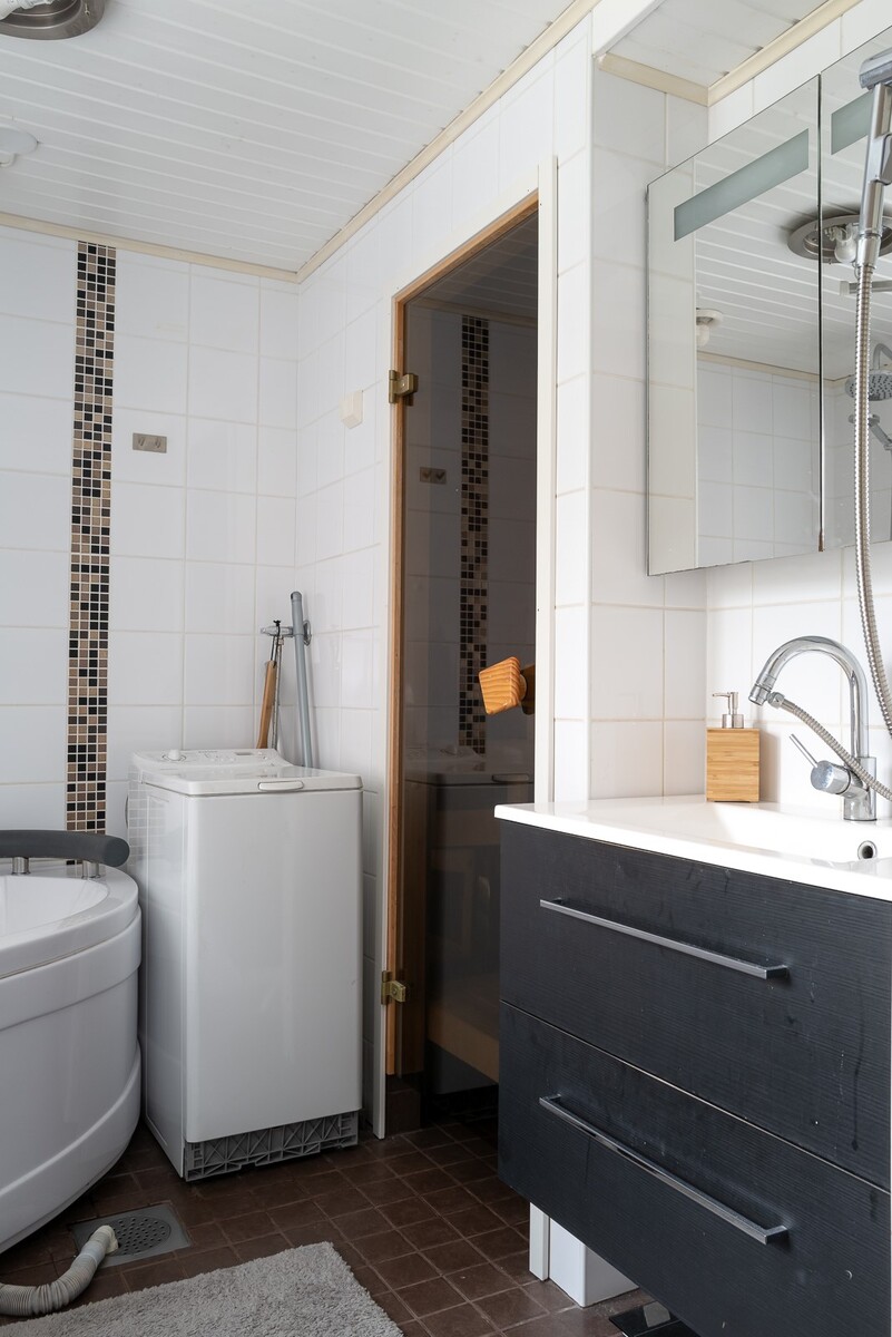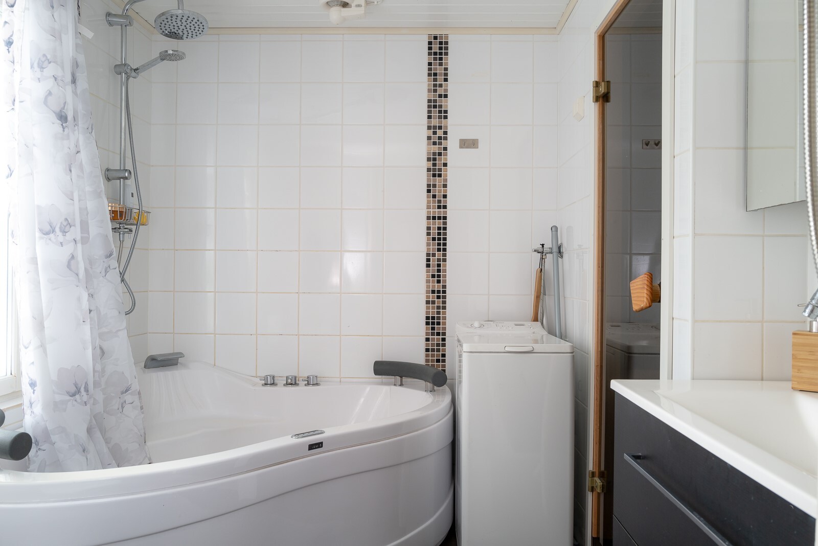 Kylpyhuoneessa pääset nauttimaan rentoutumishetkistä porealtaassa, joka tekee arjesta astetta ylellisempää.