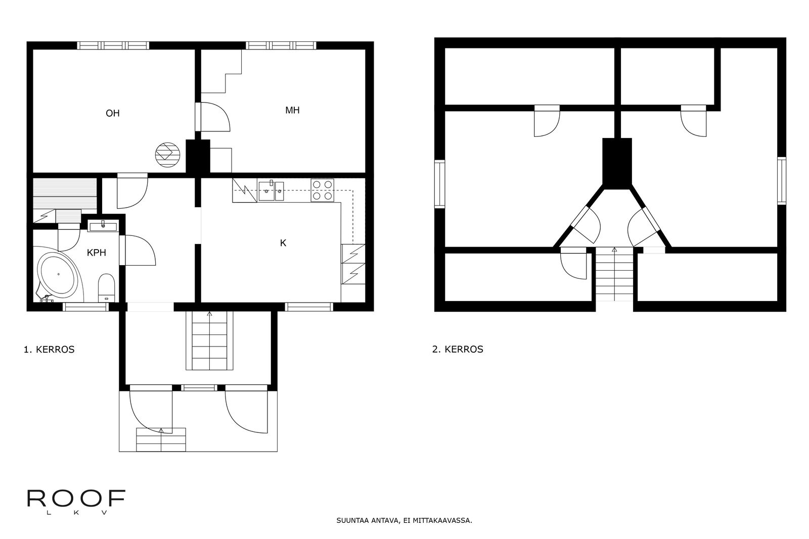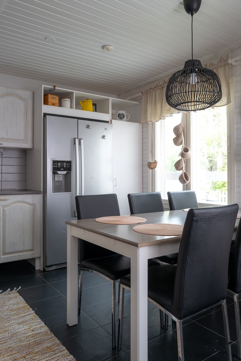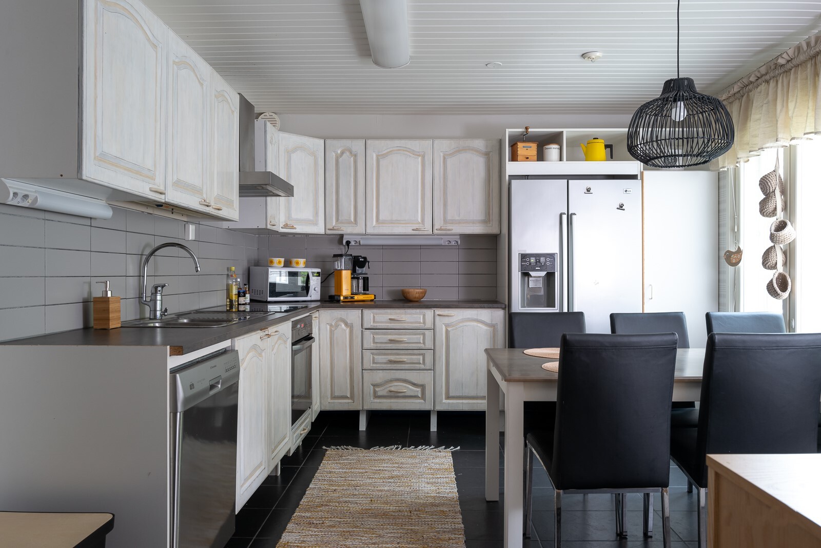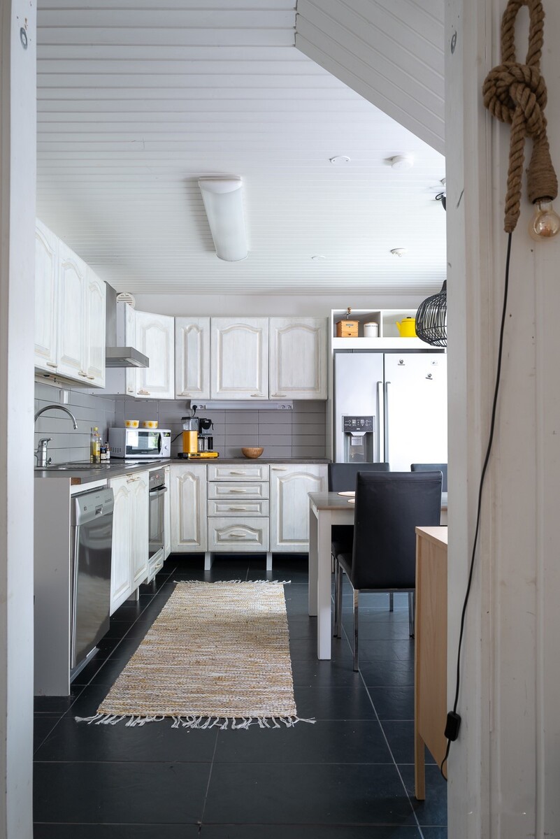 Talossa on avara keittiö, jossa mukavasti tilaa leipomiselle ja ruuanlaitolle. Makuuhuoneita on kolme, yksi alakerrassa ja kaksi yläkerrassa.