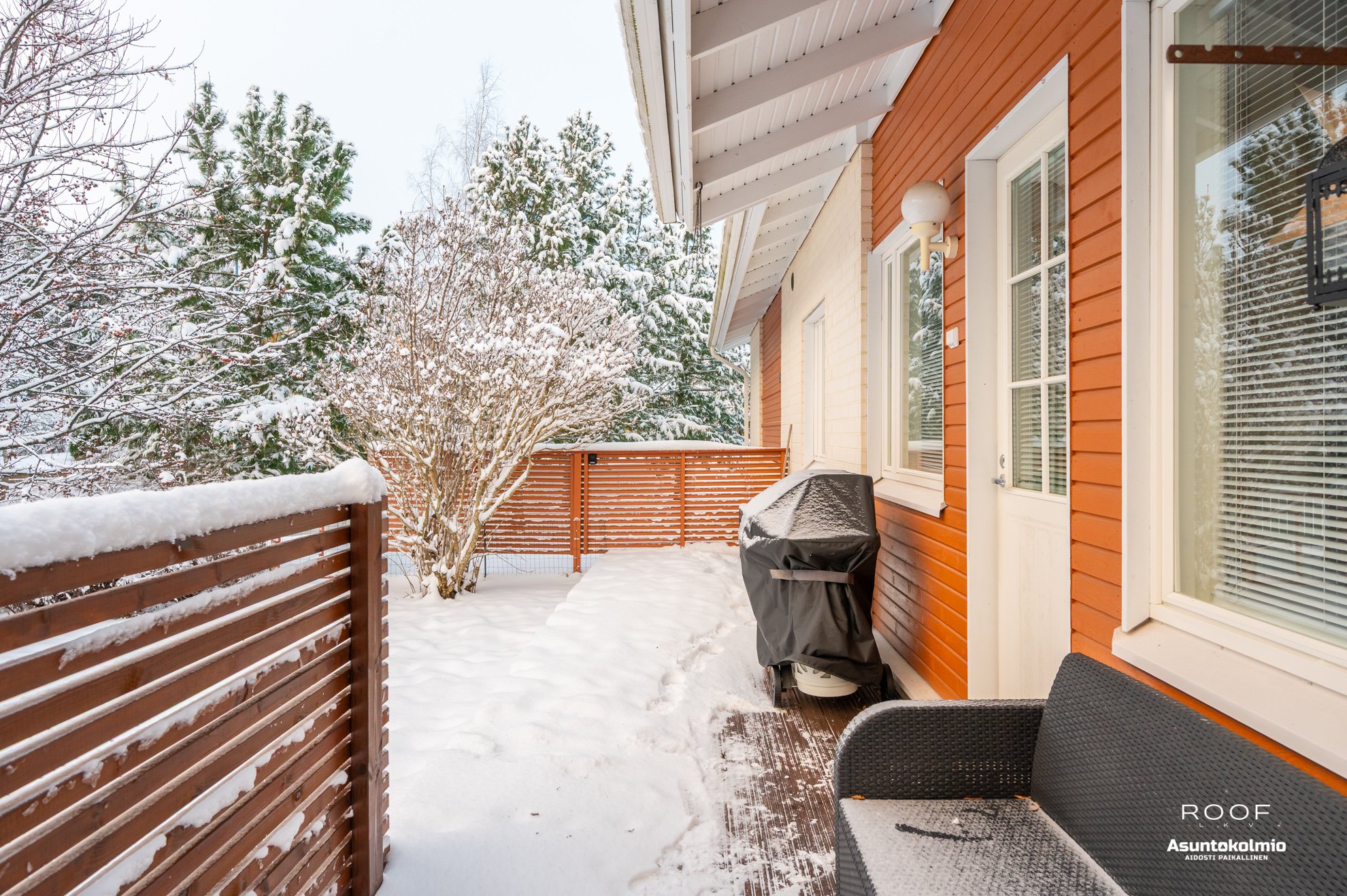 Vuonna 2006 rakennetusta talosta kolmen makuuhuoneen yksitasoinen päätyhuoneisto! Tällä yhtiöllä on oma tontti ja lämmityksestä huolehtii kaukolämpö; hoitovastike onkin edulliset 4,15 €/m². Asunnon mukana tulee autokatospaikka, johon asennat halutessasi sähköautolle latausaseman.