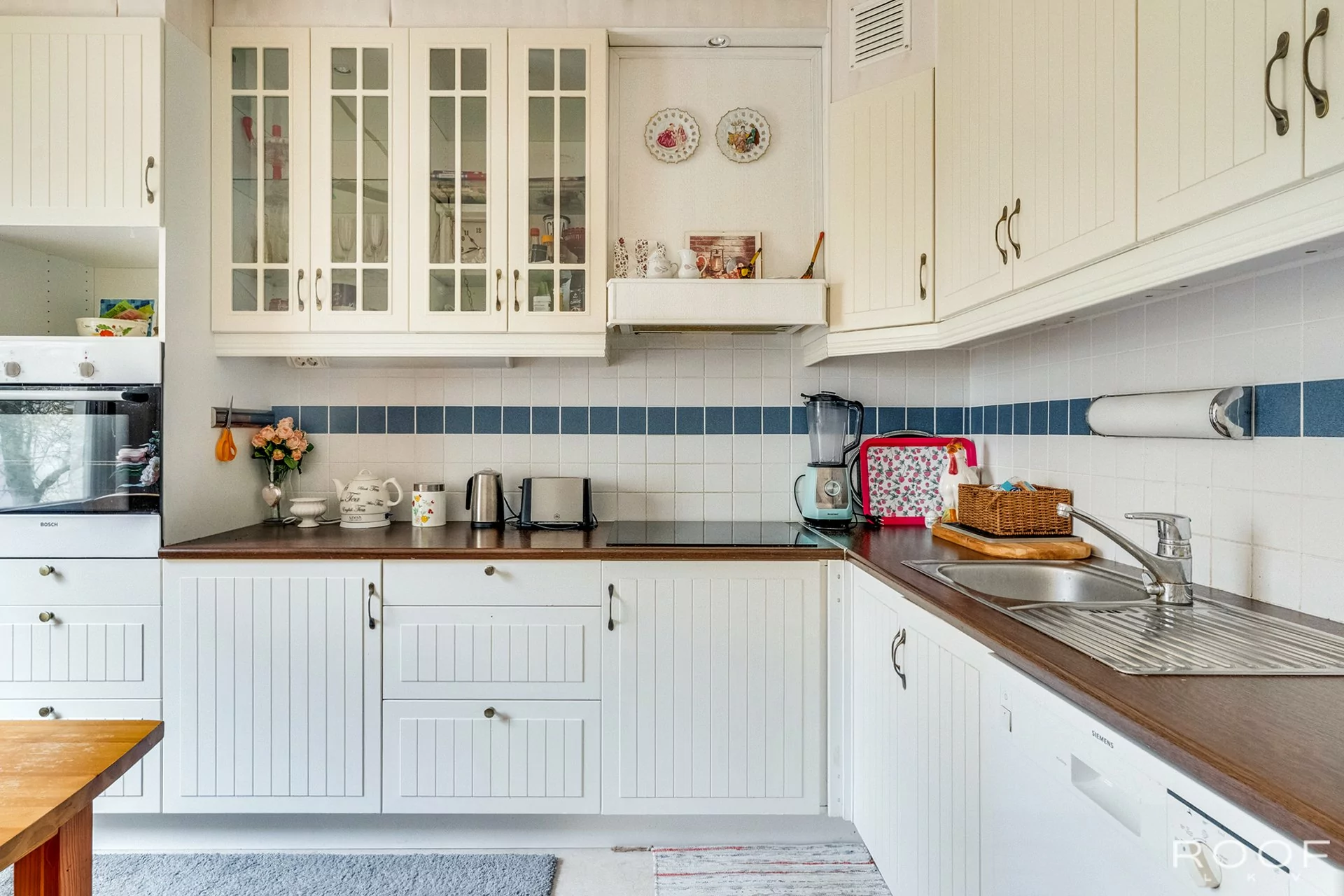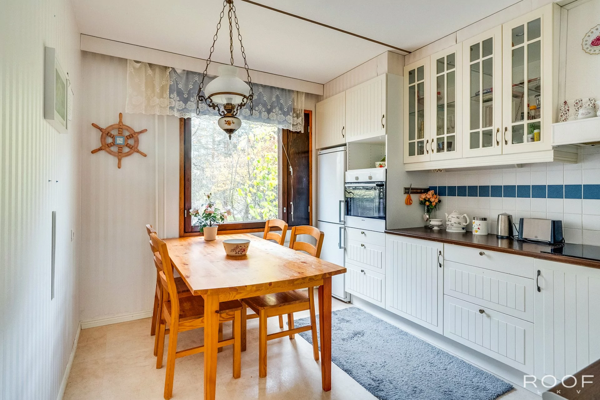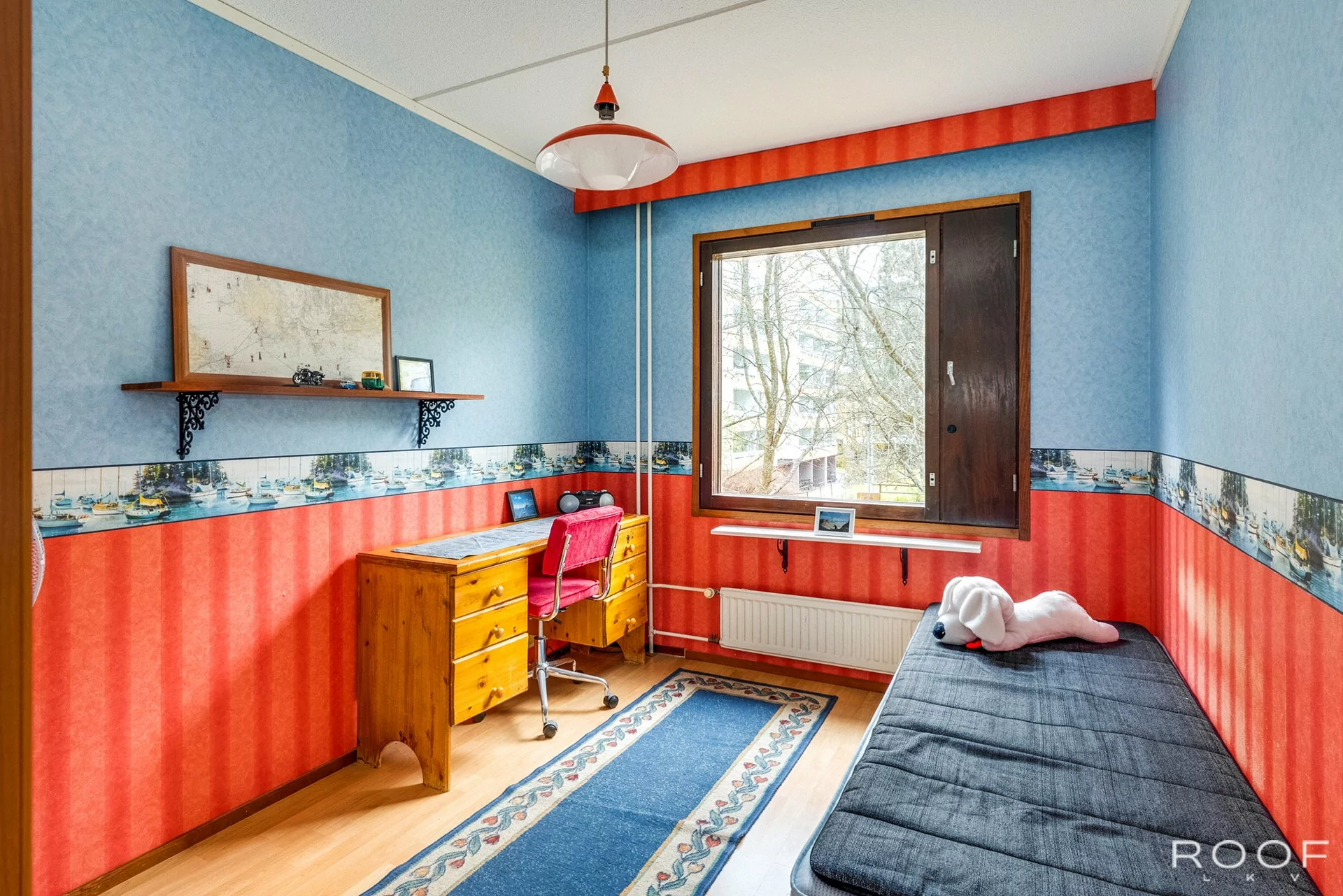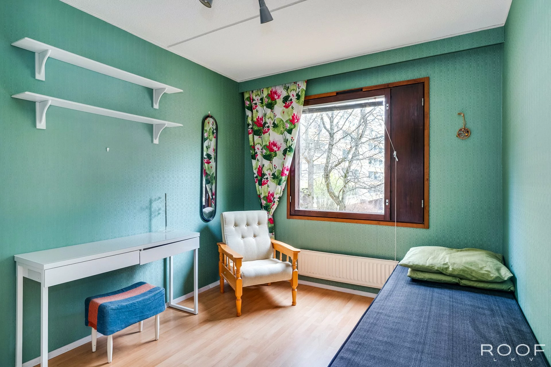 Tässä neljän huoneen koti, joka tarjoaa tilaa ja toimivuutta arkeen. Asunto sijaitsee ensimmäisessä asuinkerroksessa, mutta ei maantasalla, vaan selkeästi sen yläpuolella, mikä lisää asumisrauhaa ja yksityisyyttä. Olohuoneen lisäksi asunnosta löytyy kolme makuuhuonetta sekä vaatehuone, joka kaapistojen lisäksi tuo mukavasti lisätilaa tavaroiden säilytykseen. Erilliseen keittiöön mahtuu hyvin isompikin ruokapöytä. Lasitettu parveke toimii viihtyisänä lisätilana olohuoneen jatkeena. Kylpyhuoneen lisäksi asunnossa on erillinen WC.
