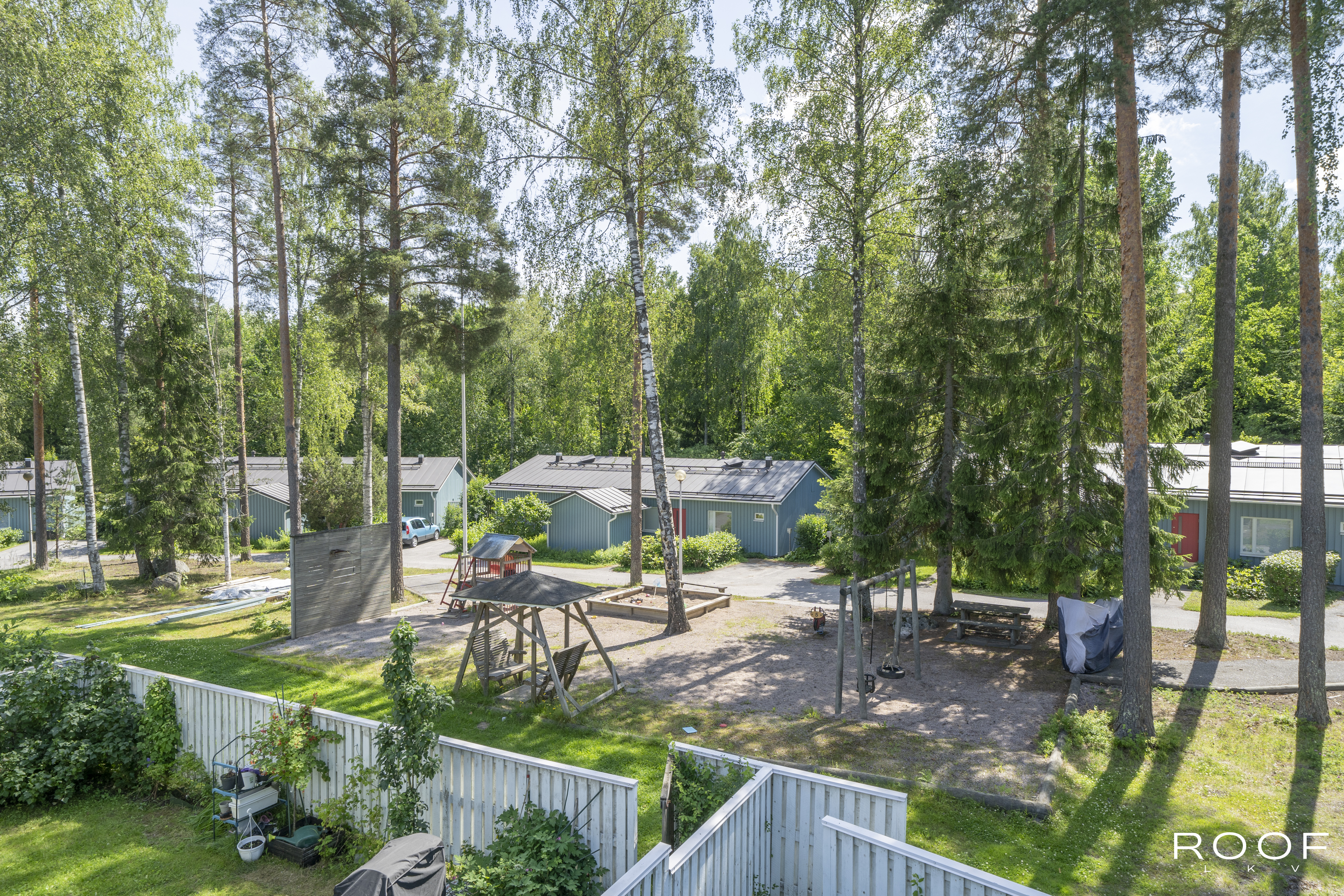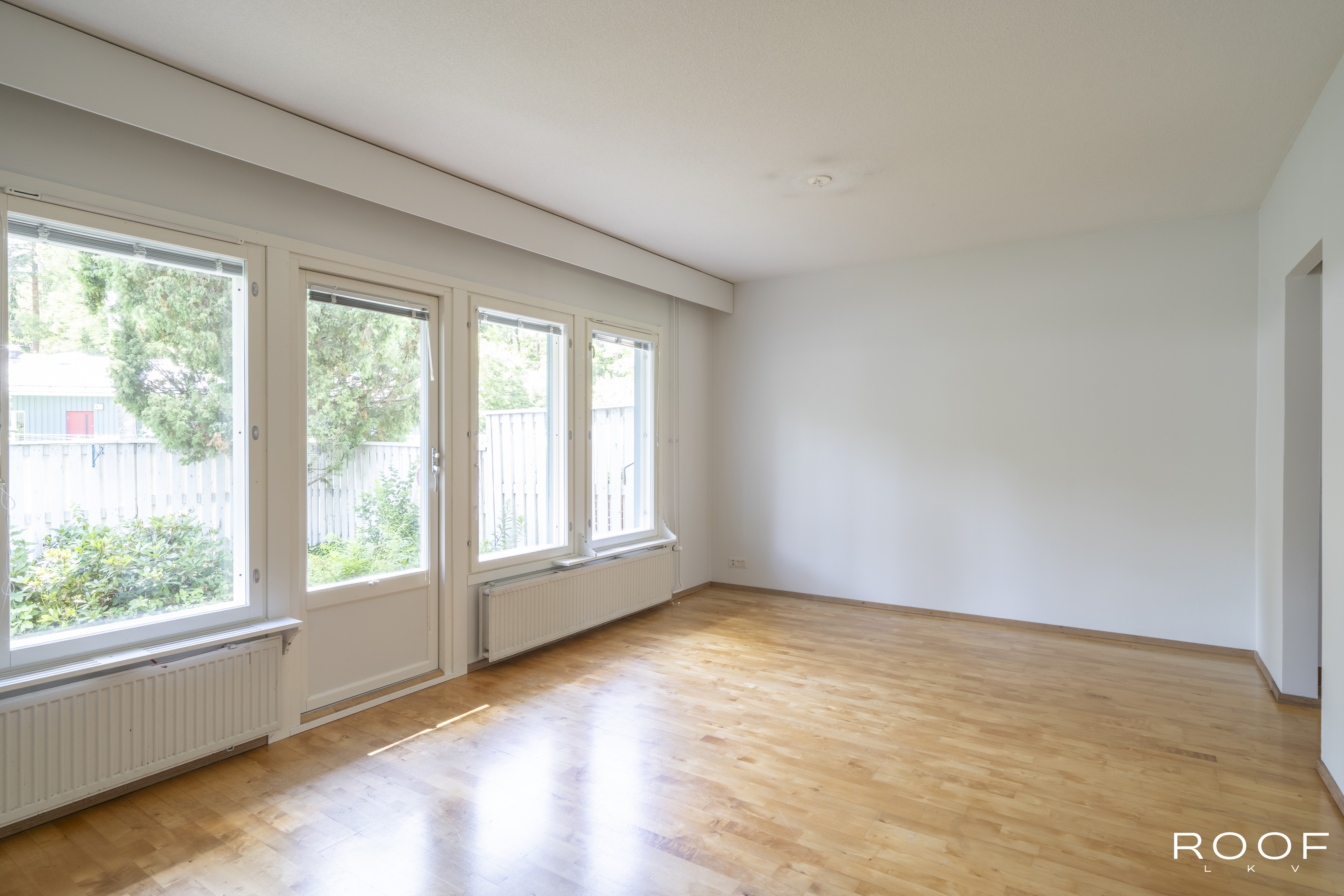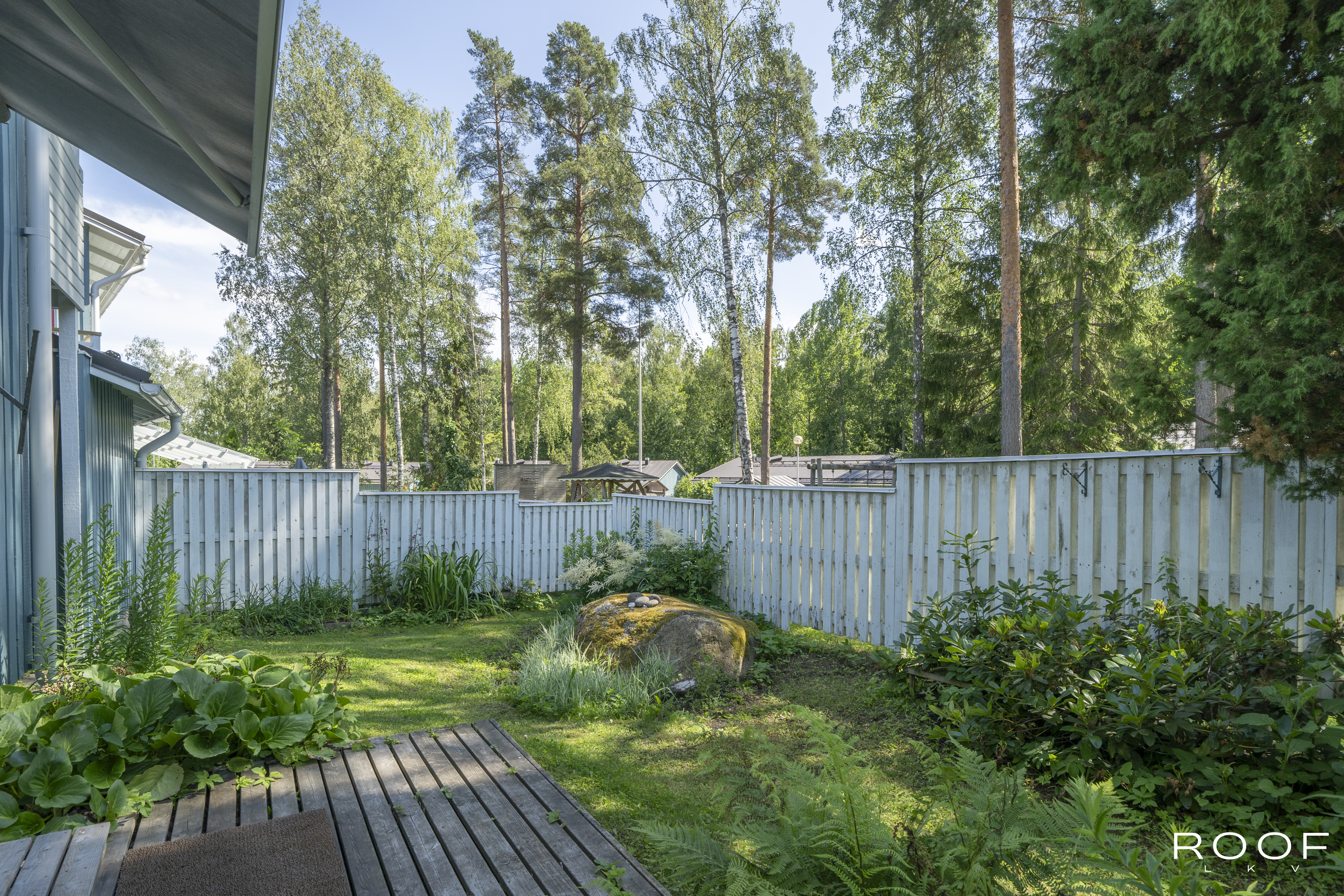 Yläkerrassa tilavat makuuhuoneet ja arjen toiminnot sijoittuvat alakertaan. Keittiö on oma kokonaisuutensa monipuolisine kotimaisine kaapistoineen ja uusittuine kodinkoneineen. Kaunis ja tilava eteinen, josta upeat puusepän tekemät lasiovet olohuoneeseen. Olohuoneesta on laaja näkymä suojaiselle ja aidatulle omalle takapihalle. WC molemmissa kerroksissa, sauna ja kylpyhuone yläkerrassa. Tilava vaatehuone. Kaksikerroksisuus antaa omaa rauhaa ja tilaa. Tilavat huoneet tekevät asumisesta miellyttävää kaikille perheenjäsenille. Taloyhtiössä on juuri valmistunut katto- ja ulkomaalausremontti, jonka yhteydessä kaksikerroksisten talojen päätylaudoitukset uusittiin. Taloyhtiö on rakennettu laadukkaasti perinteisellä tavalla, ei elementeistä kasaamalla. Yhtiöjärjestyksen mukaan huoneisto 4 h + k + s. Tämä koti tarjoaa tilaa ja toimivuutta perheille sekä luonnonläheistä asumista rauhallisella, perheiden suosimalla Hakuninmaan asuinalueella.